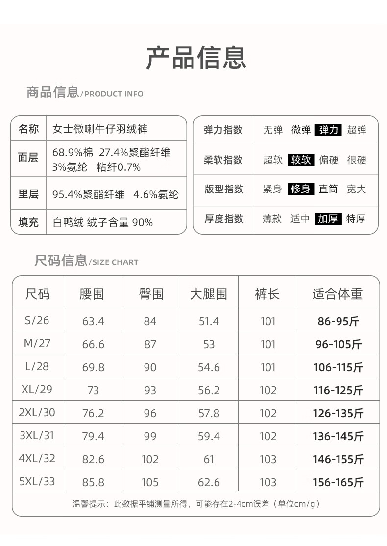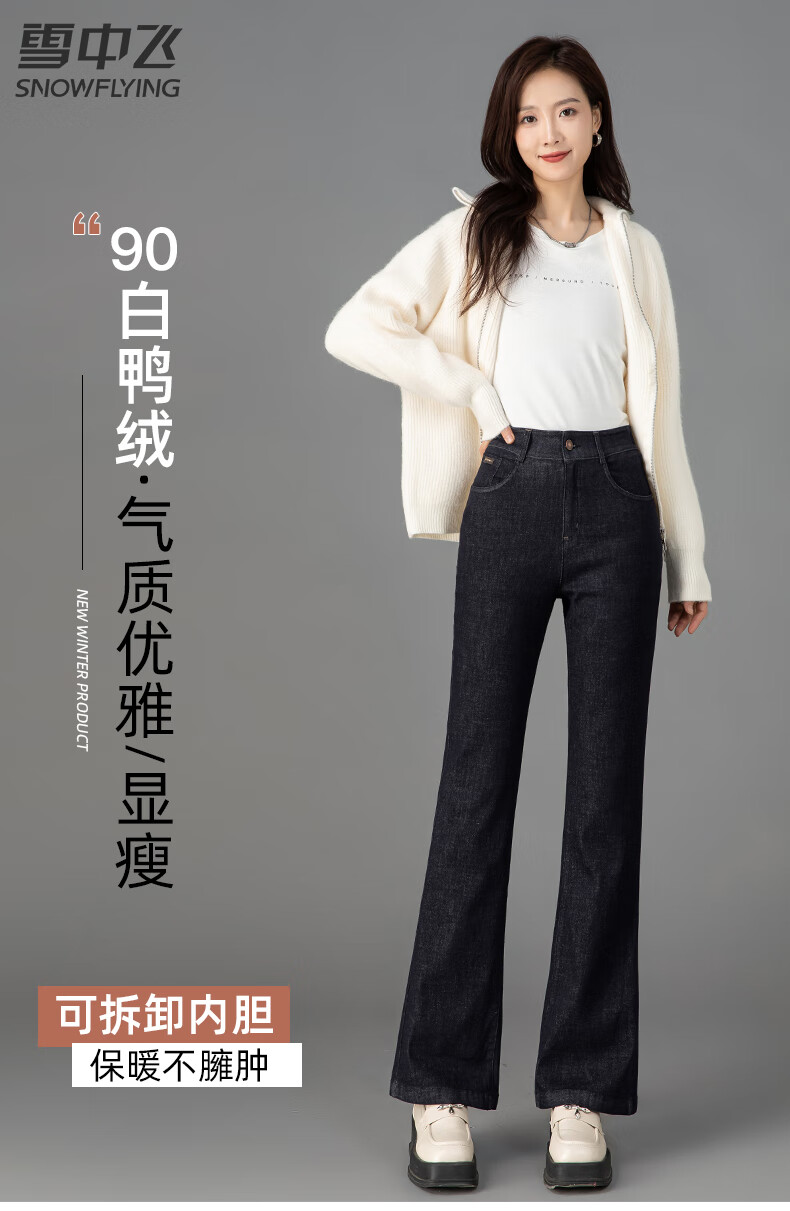 Flying denim down pants for women in the snow, winter new style removable inner cotton trousers, elastic slim fit warm pants, gray blue - elegant temperament - pure 90 white duck down M 96-105Jin Jin is equal to 0.5 kg