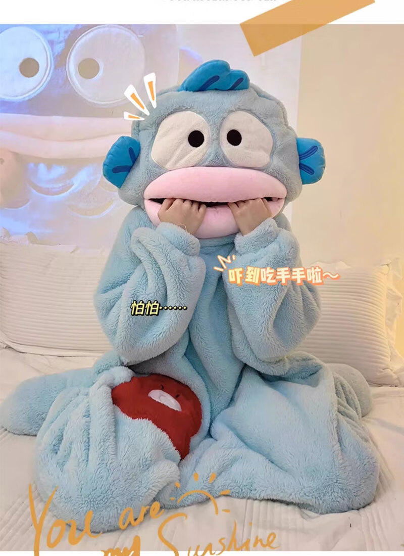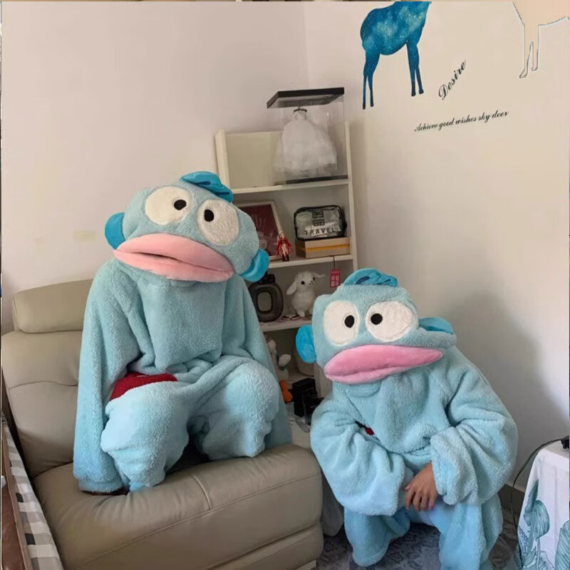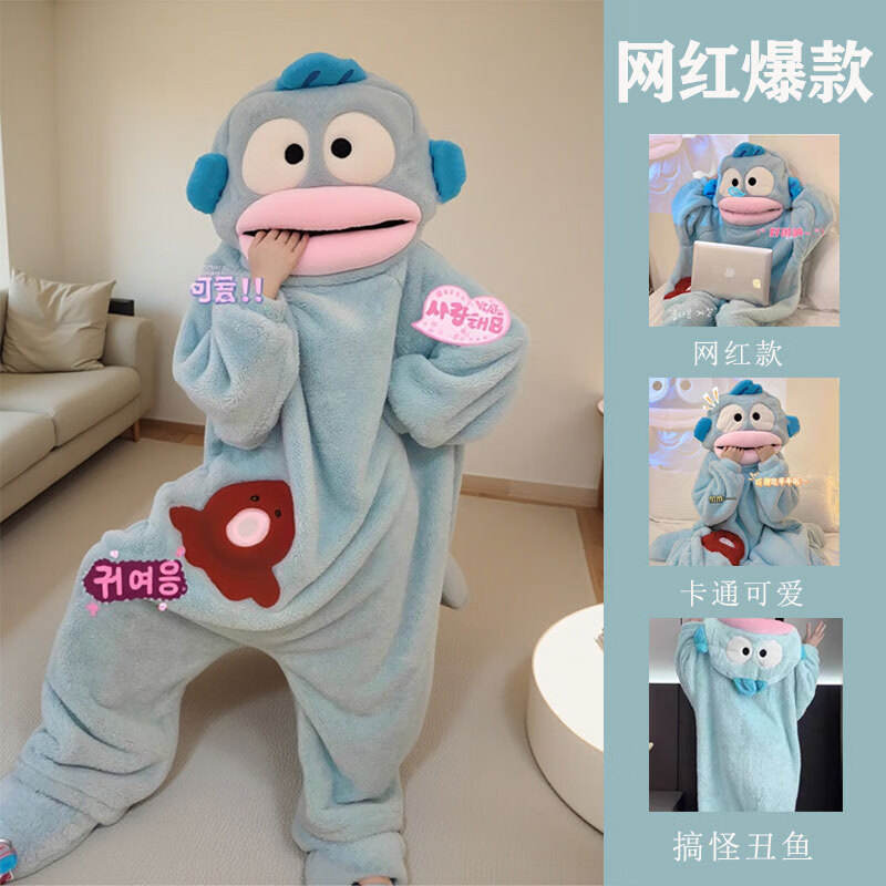 Zhike Clownfish Doll One-piece Pajamas Large Size Warm Autumn and Winter Cartoon Big Mouth Fish Plush Doll Couple Gift Ugly Fish Pink Jumpsuit (No Shoes) M (Height 153-159cm) 105Jin Jin is equal to within 0.5 kg