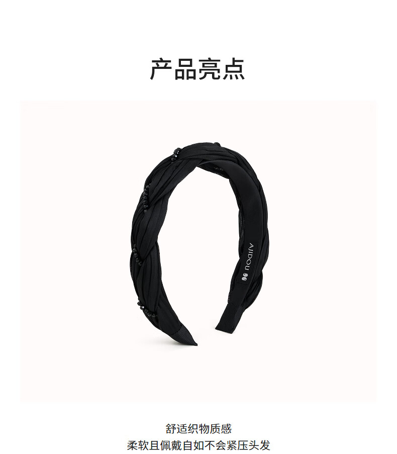 AJIDOU Ajidou hair accessories women's black fashion headband fabric hair accessories high skull headband black 1 piece