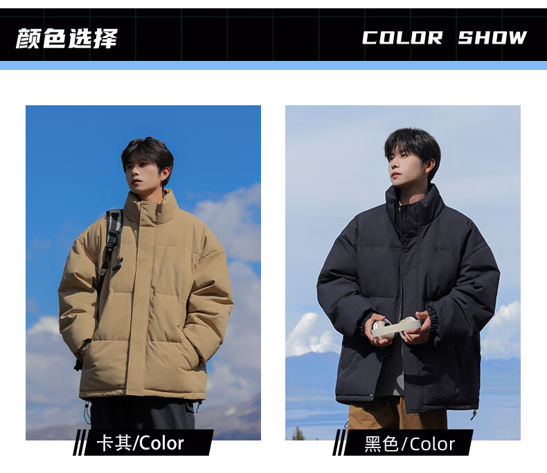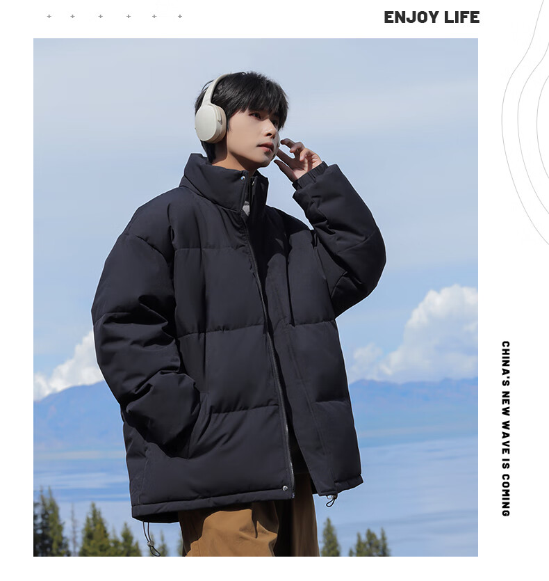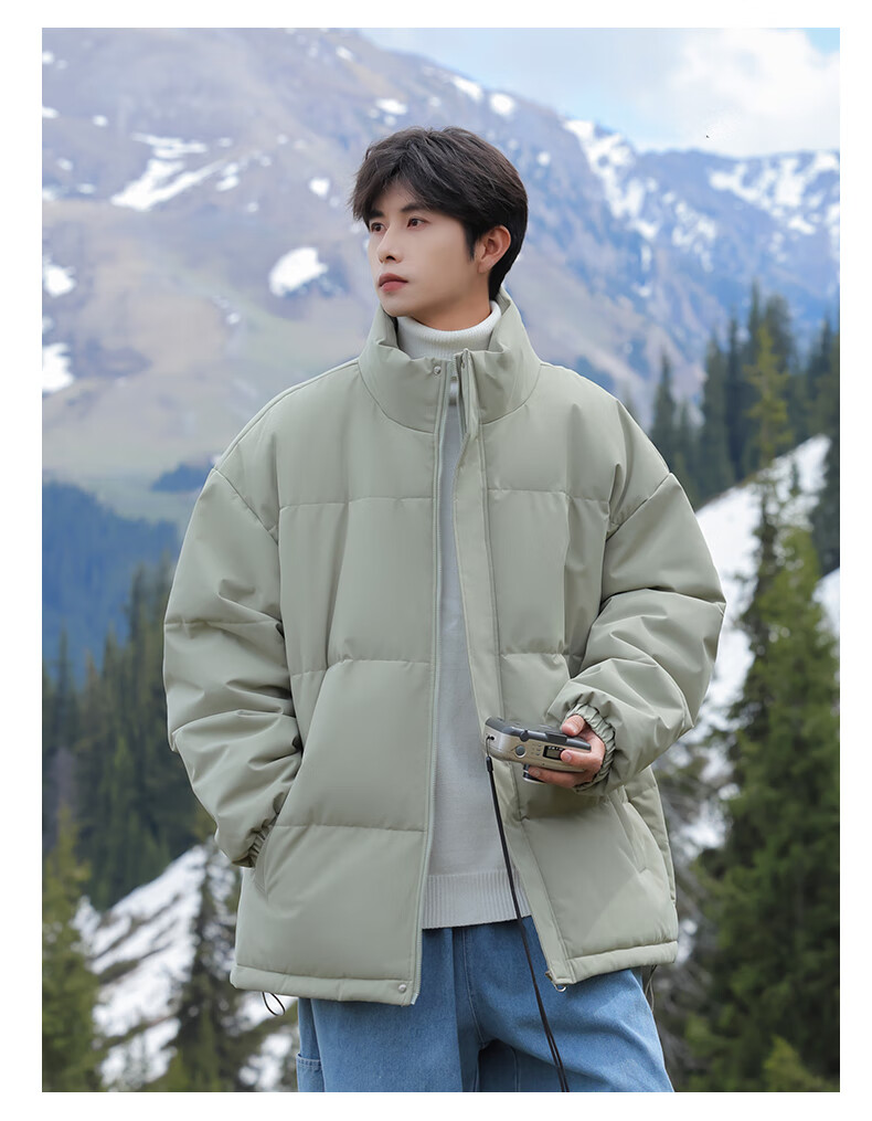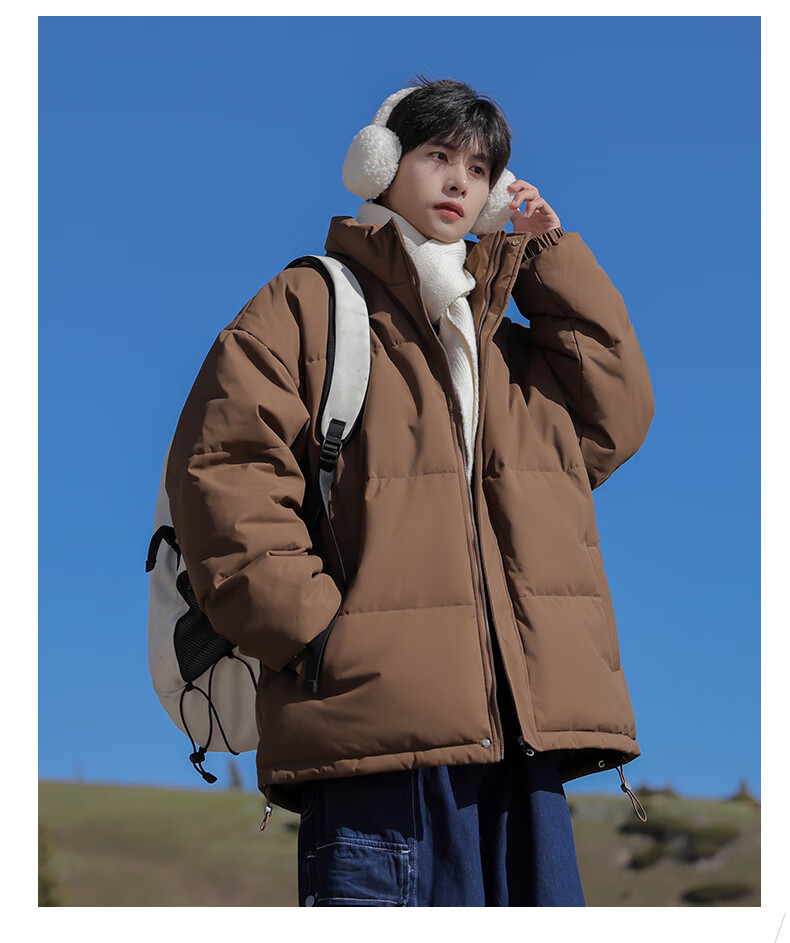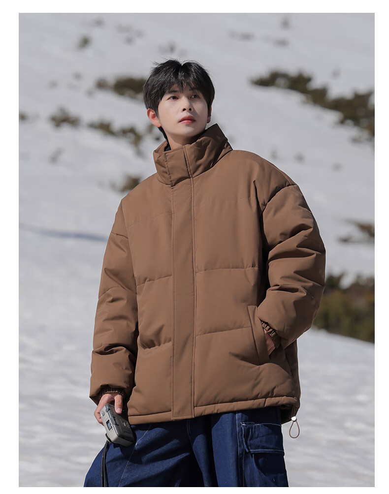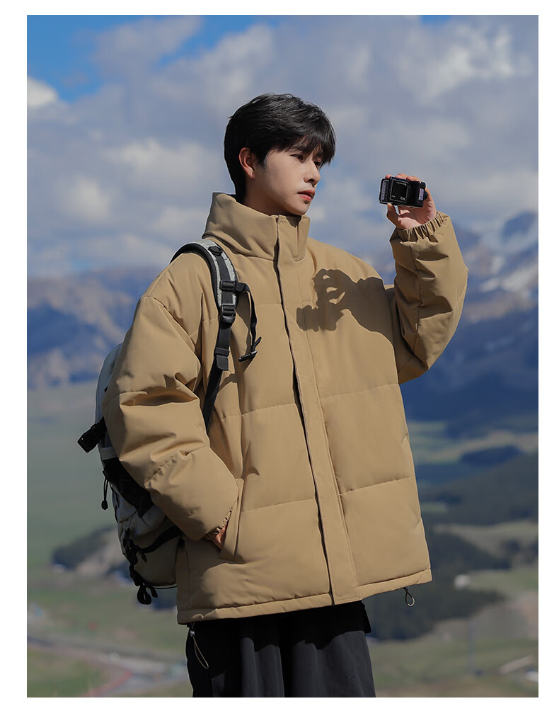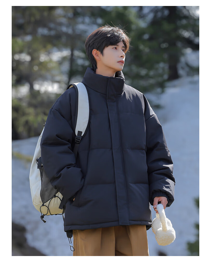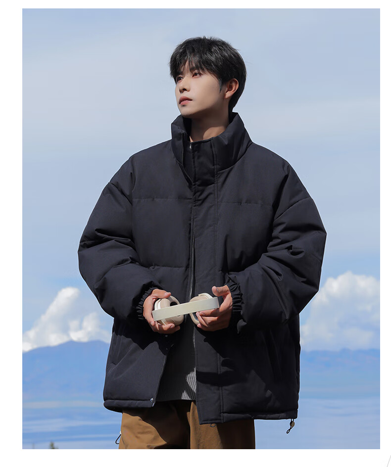 EASTERN CAMEL American solid color stand collar down jacket men's spring 2026 new thickened warm jacket cotton-padded jacket men's 99999 black thickened and warm, winter cold protection XL