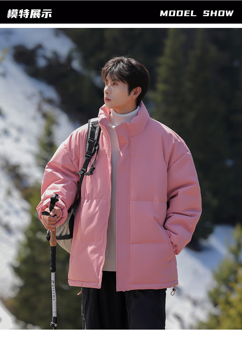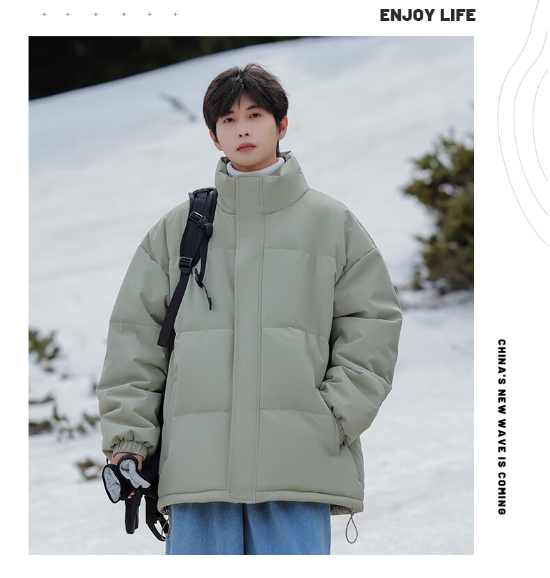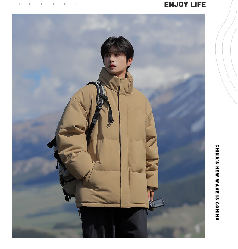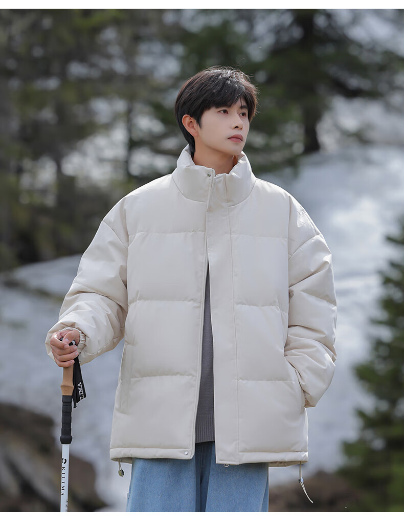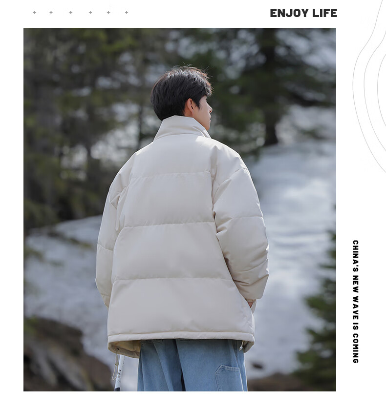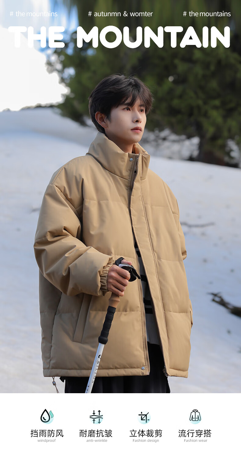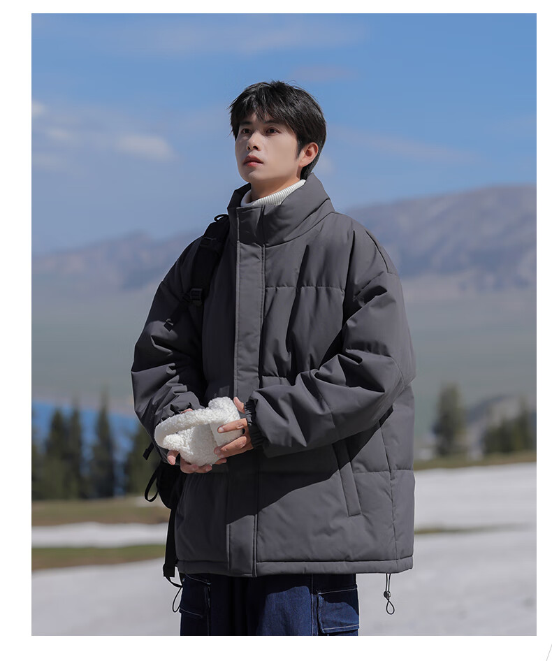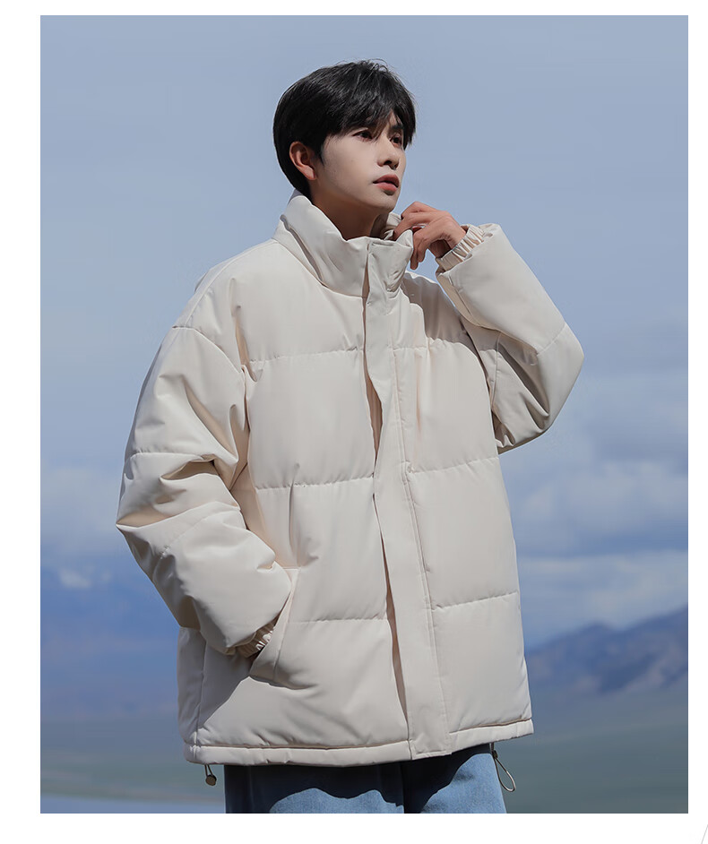 EASTERN CAMEL American solid color stand collar down jacket men's spring 2026 new thickened warm jacket cotton-padded jacket men's 99999 black thickened and warm, winter cold protection XL