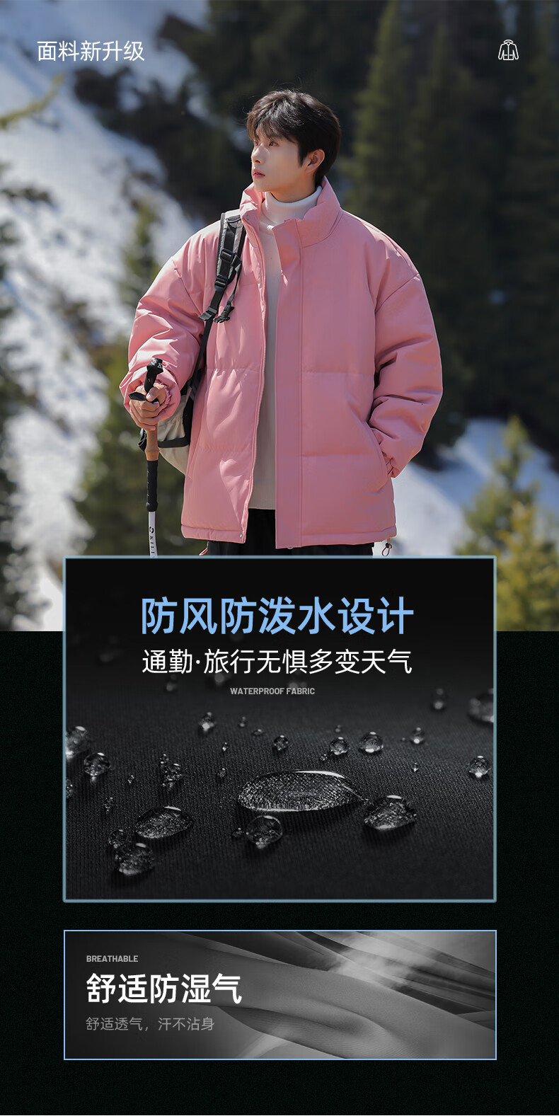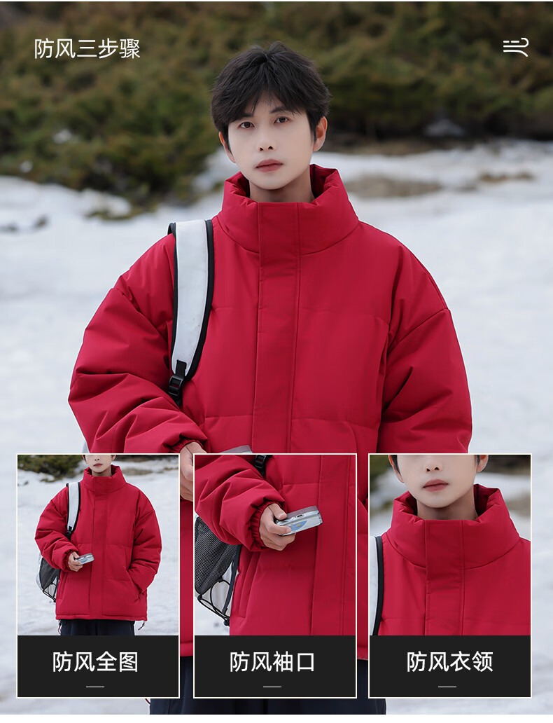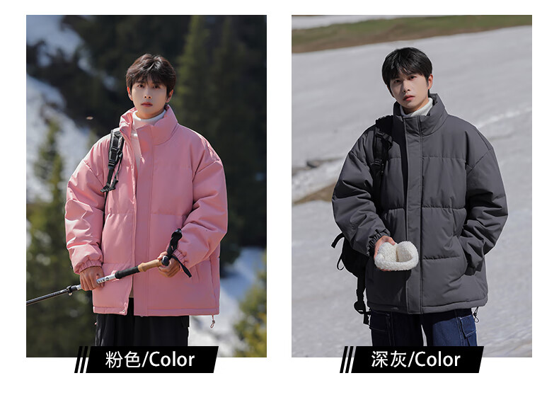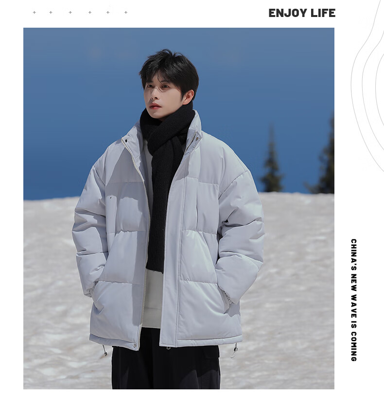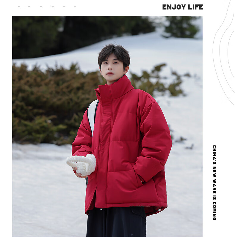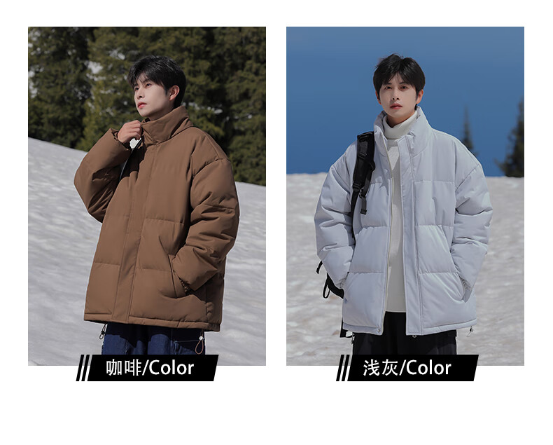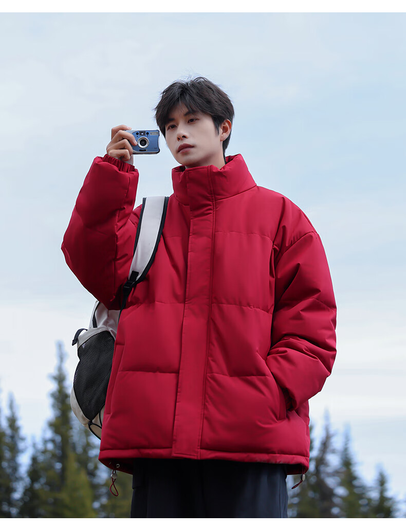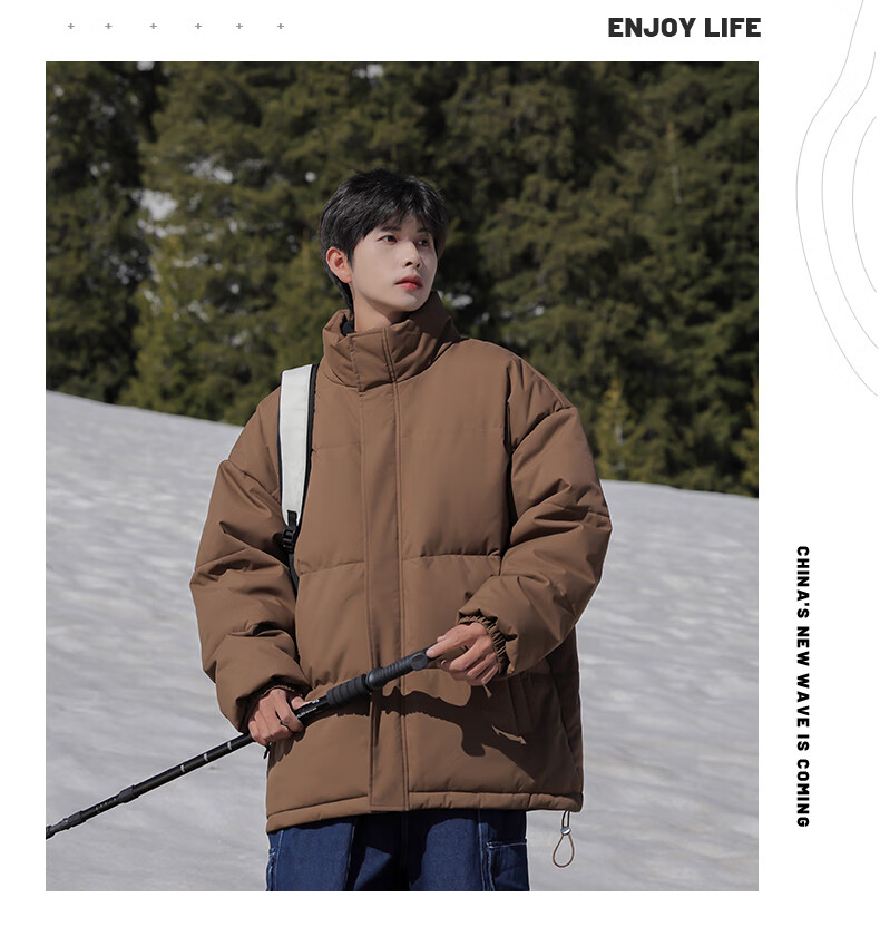 EASTERN CAMEL American solid color stand collar down jacket men's spring 2026 new thickened warm jacket cotton-padded jacket men's 99999 black thickened and warm, winter cold protection XL
