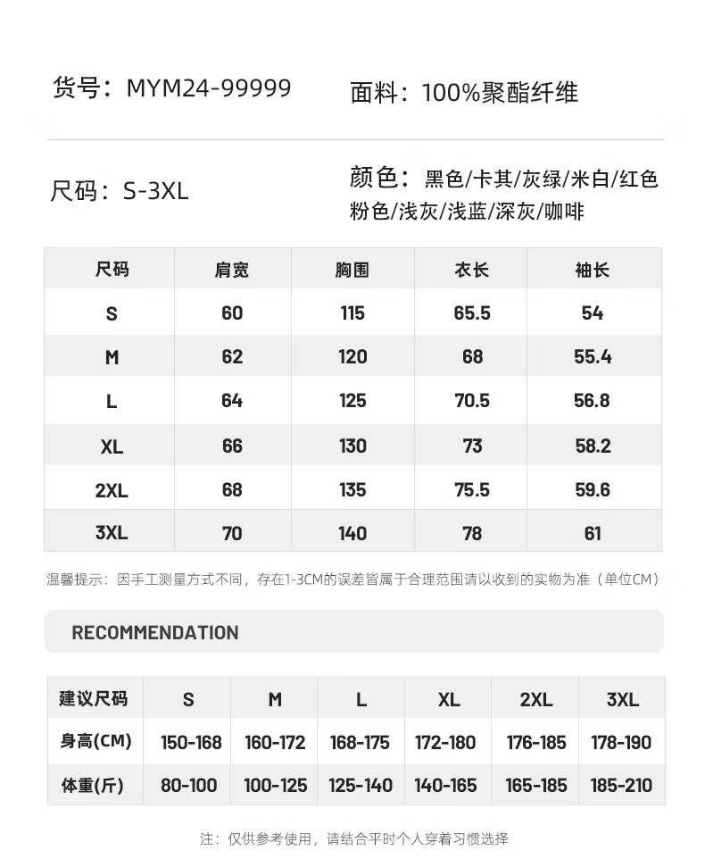 China (cm) 160-165/84-86 165-170 / 88-90 167-172 / 92-96 168-173 / 98-102 170-176 / 106-110