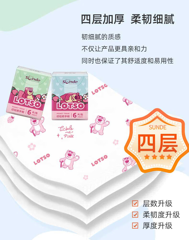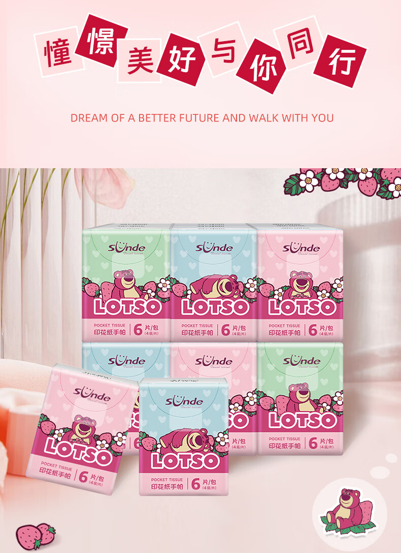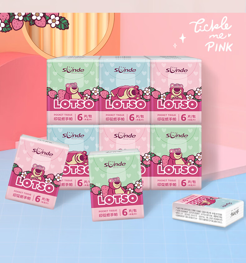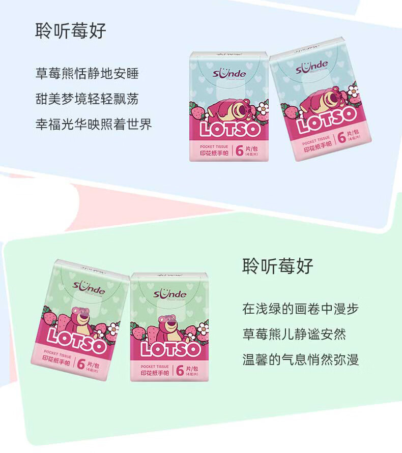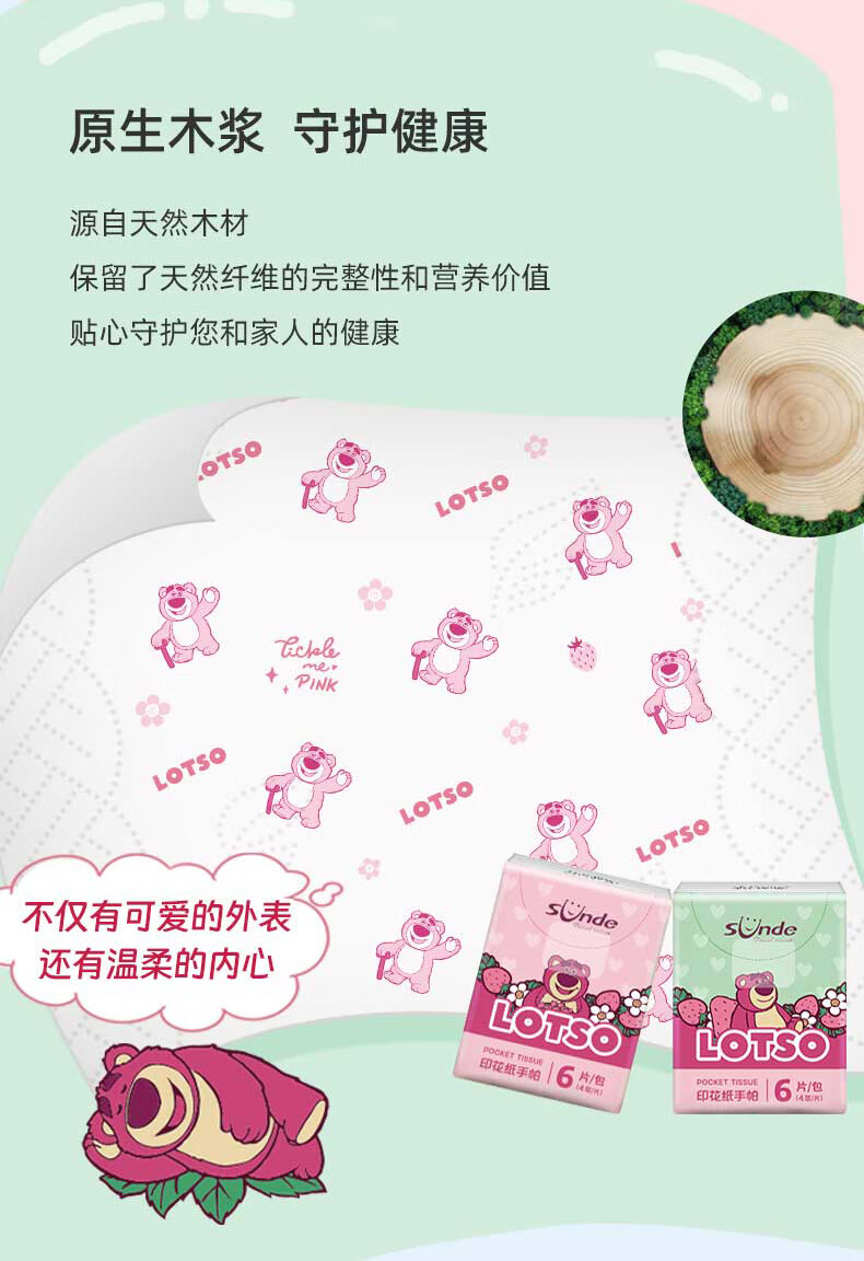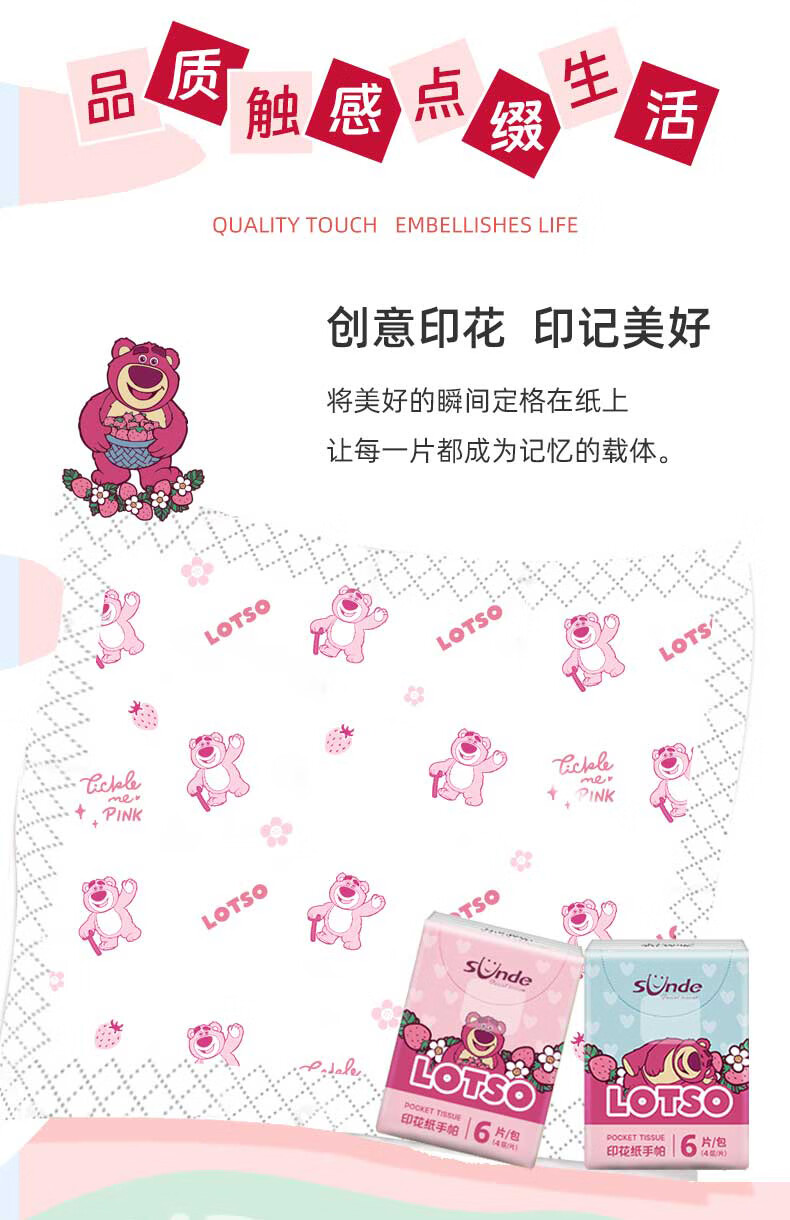 Disney (Diseny) Strawberry Bear Handkerchief Paper Cartoon Pattern Printed 4-Layer Thickened Paper Tissue Small Pack Tissue Paper Strawberry Bear Listens to Berry Good 4-Layer 6 Pieces*18 Pack