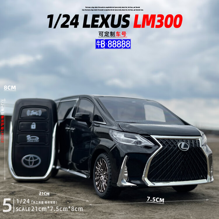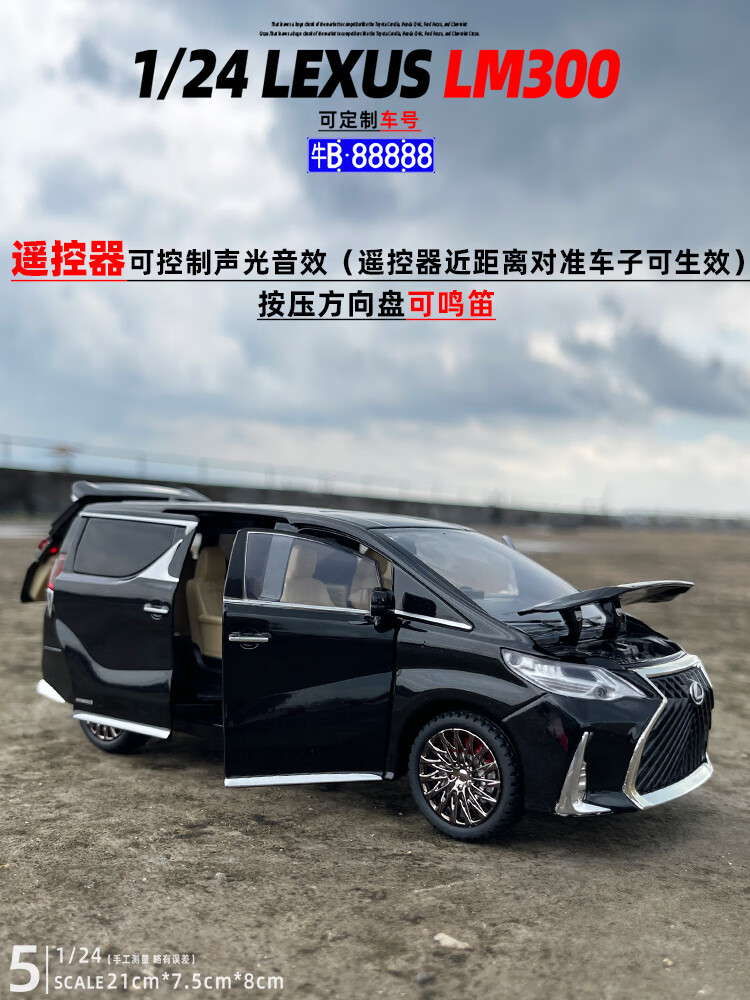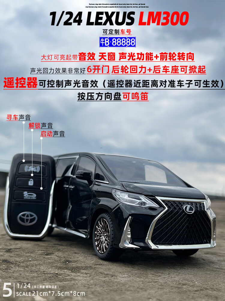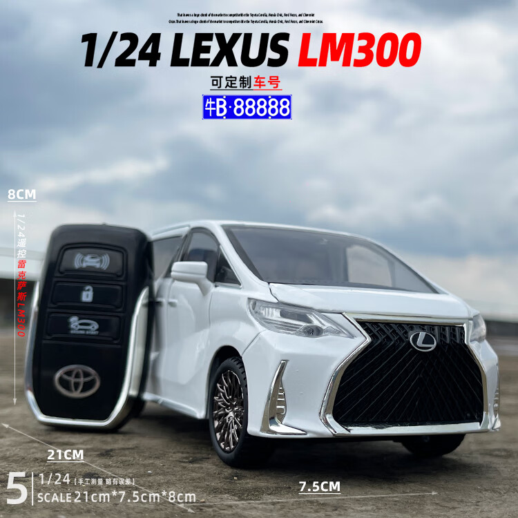 Aoyanlai 1/24 remote control Toyota Lexus LM300 alloy car model sound and light pull back children's toy gift liquid white + Japan_order remark number off-road vehicle