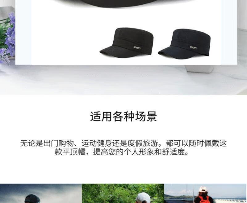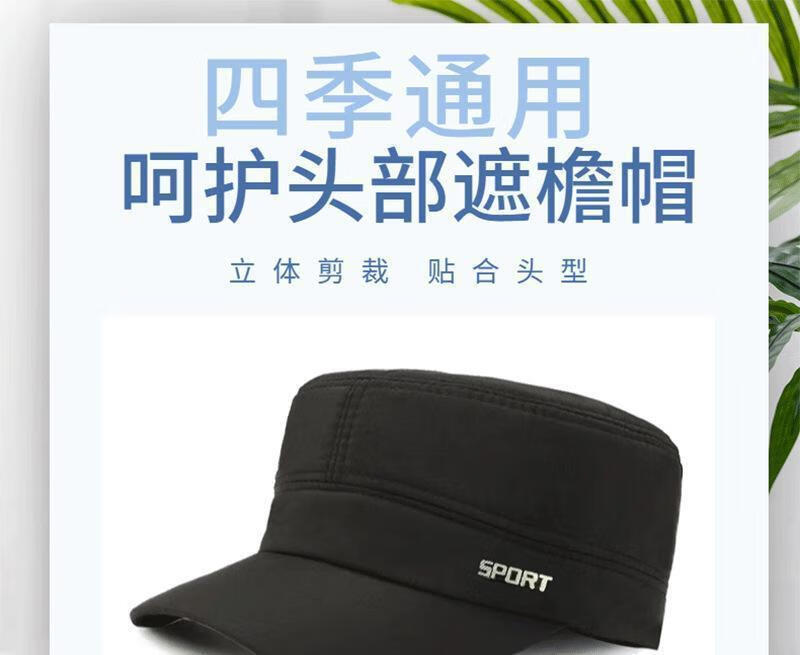Four Seasons New Fashionable Silk Quick-drying Flat Top Sunscreen Hat Men's Outdoor Men's Hat Black One Size Adjustable Head Circumference