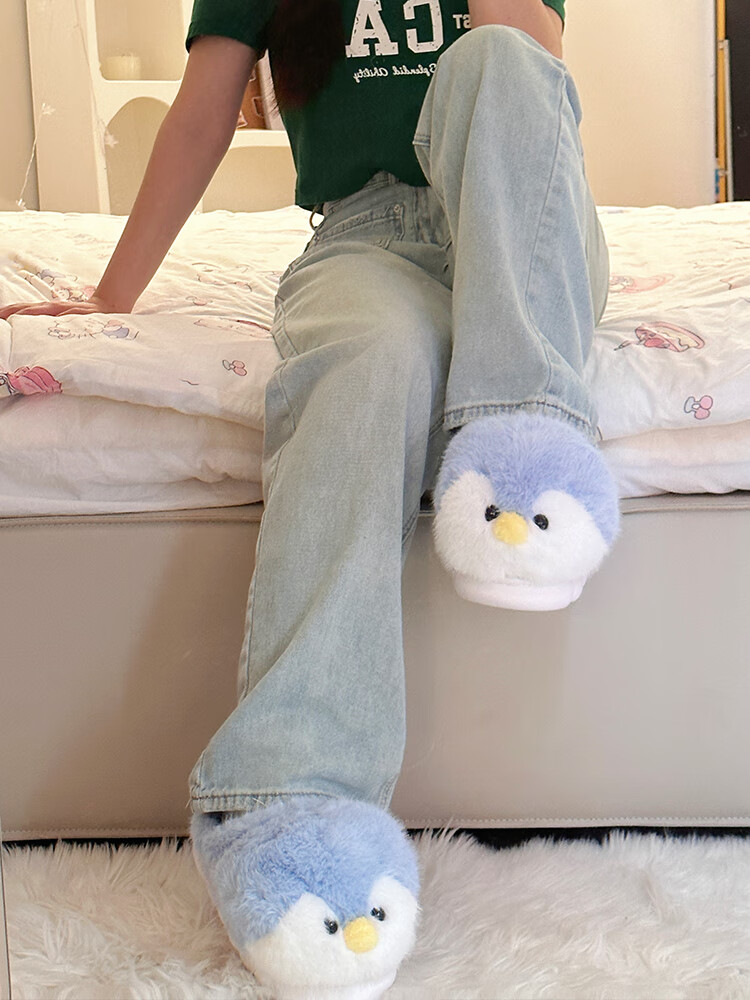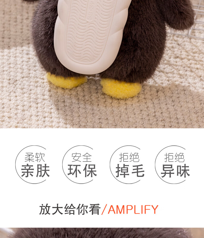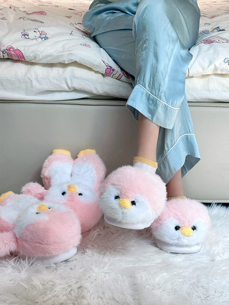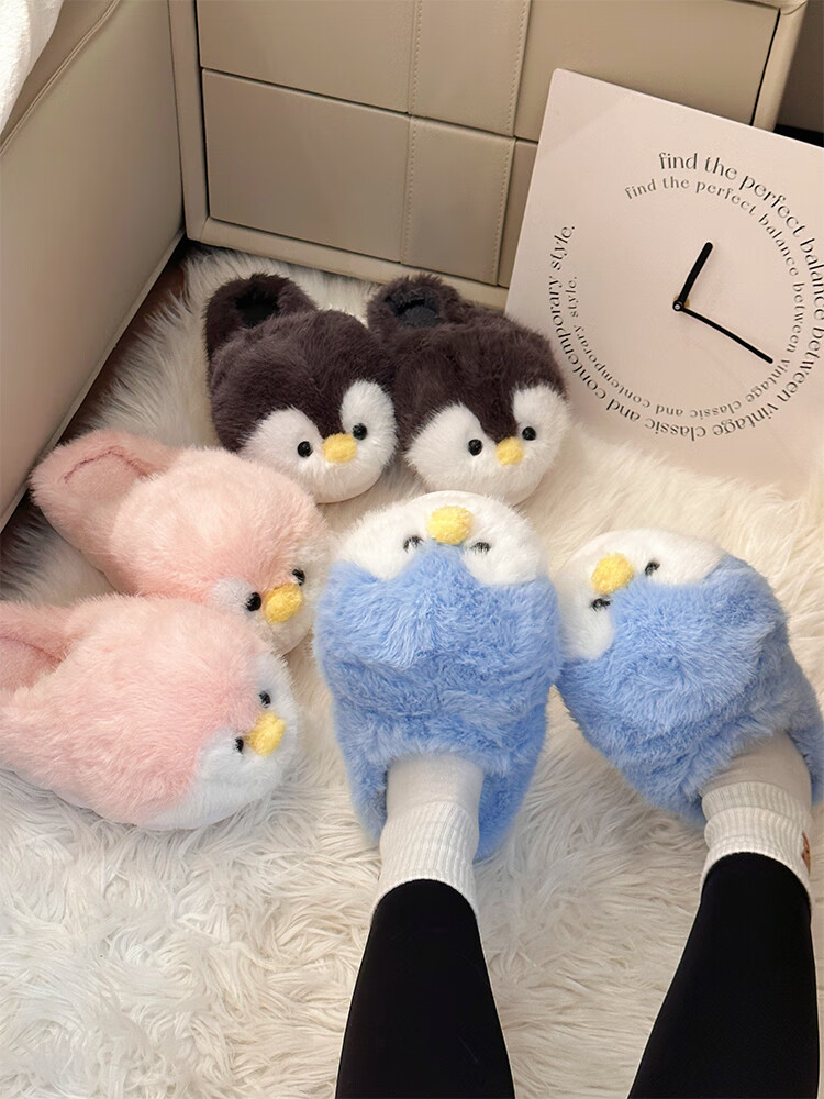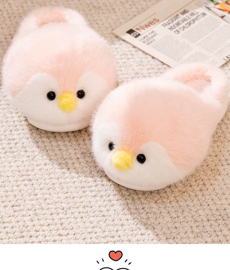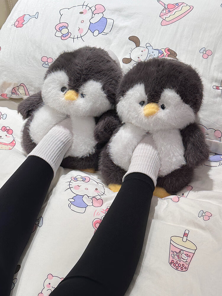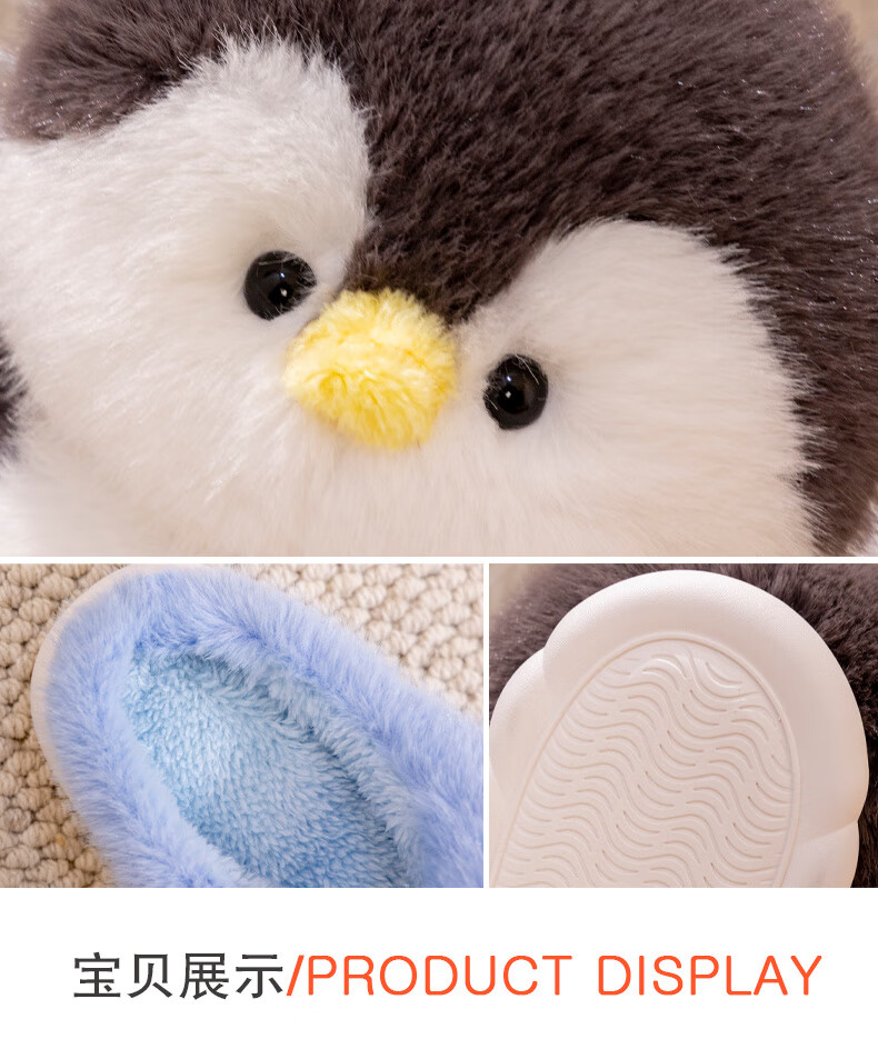 G.duck new little penguin slippers girls home cotton slippers cute children parent-child shoes winter warm shoes all-inclusive non-slip black penguin nest shoes 34-35 sizes