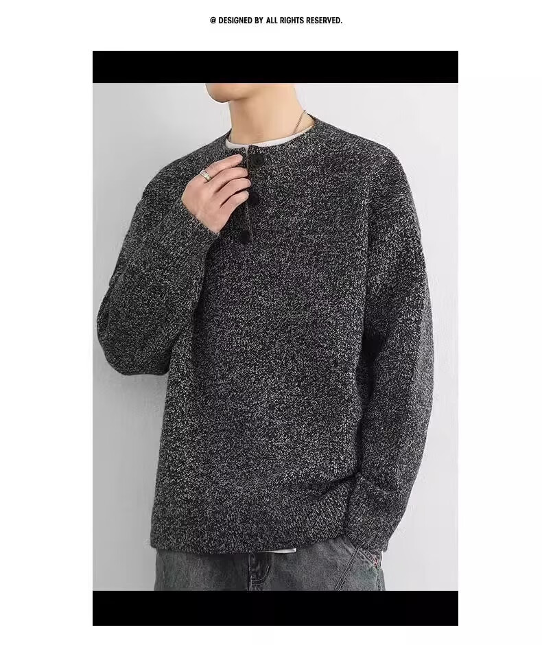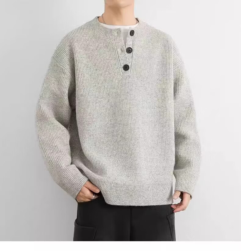 Playboy (PLAYBOY) autumn and winter top Korean simple Henry collar sweater men's trendy brand INS pullover bottoming sweater light gray M