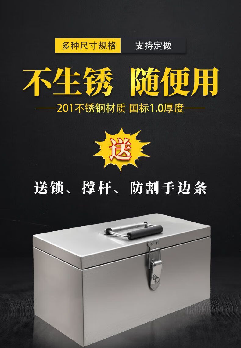 FANCYCHIC201 stainless steel storage tool storage box plus size waterproof universal thickened dustproof rectangular driver trailer length 40 width 30 height 30 extra thick stainless steel + support rod
