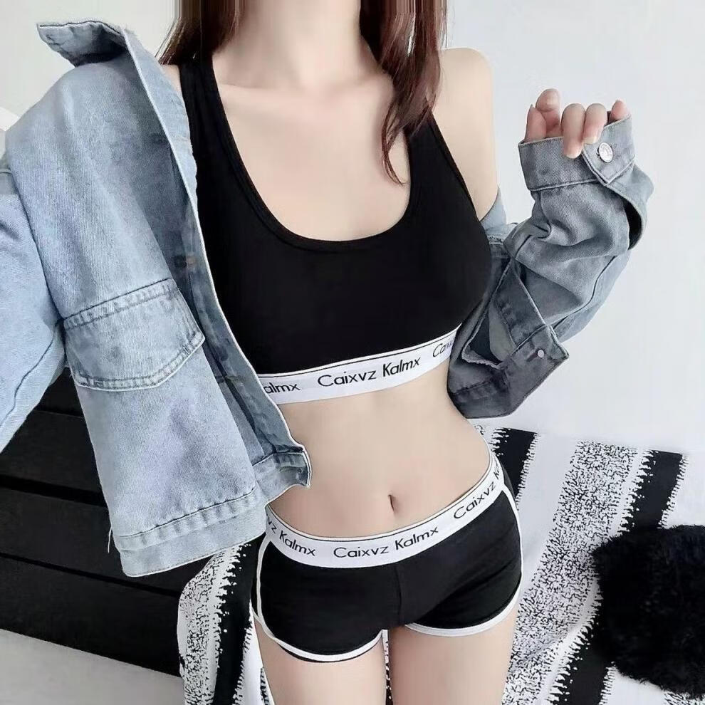 CK&Caixvz Kalmx Girls Sports Bra Running Shockproof Push Up Casual Dancing Wireless Bra Set Single Clothes Black XL Recommended 110-130Jin Jin is equal to 0.5kg