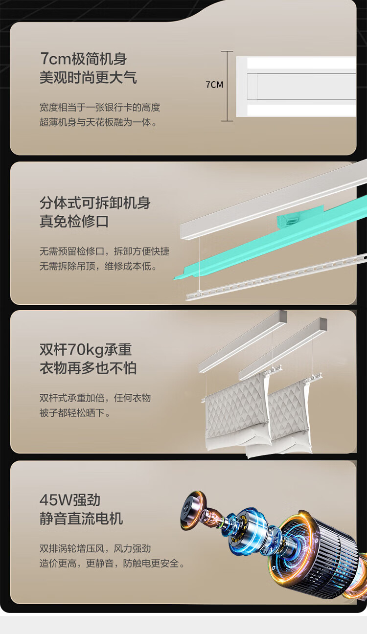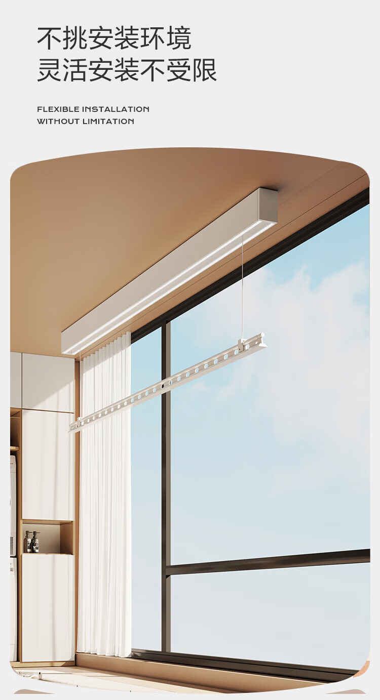 Yinshi exposed single-pole extremely narrow electric invisible clothes drying rack curtain box ceiling gap sunroom can be installed without lights 5cm (remote control) extremely narrow 2.0 meters (can be used to dry the quilt)