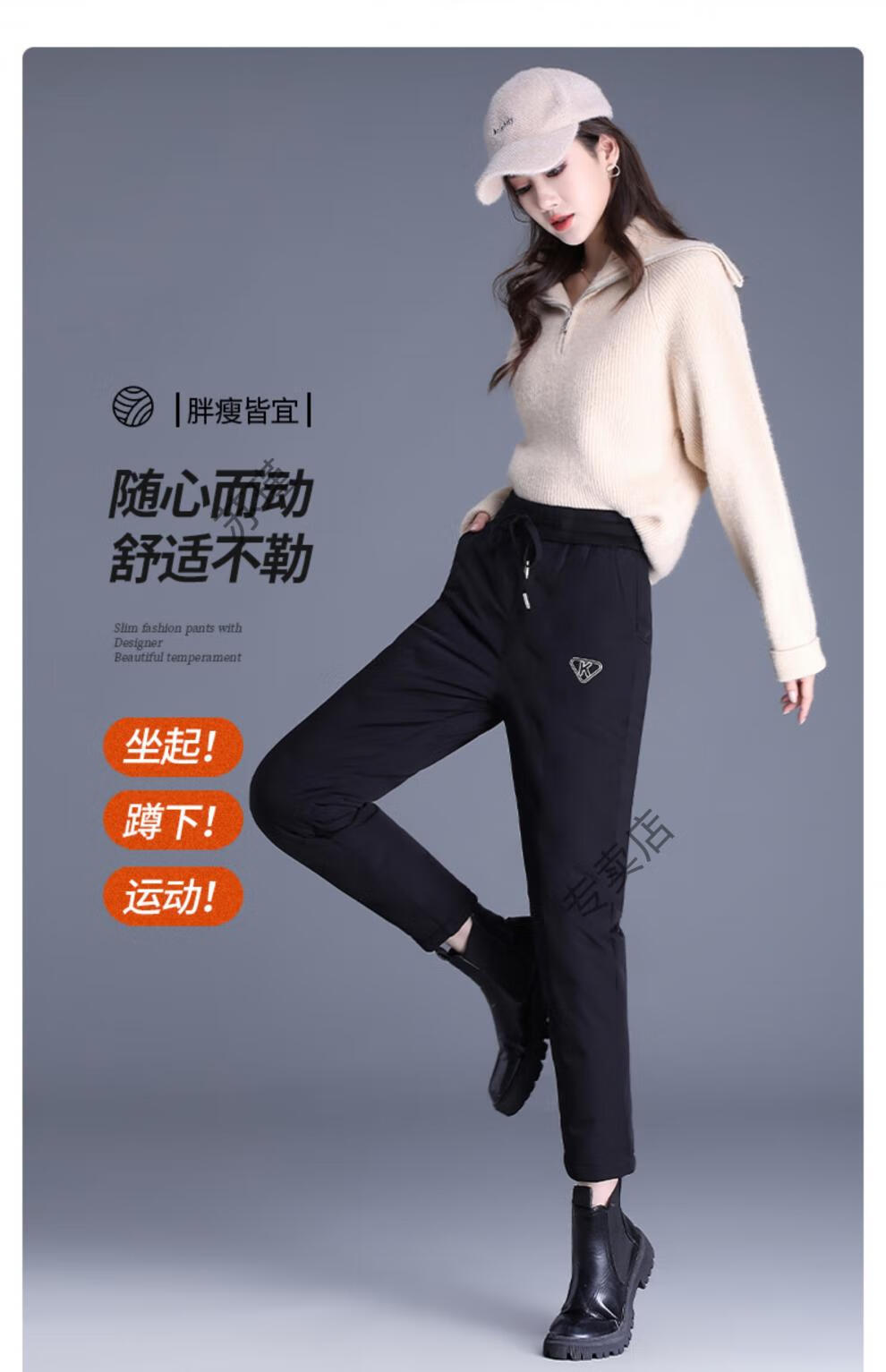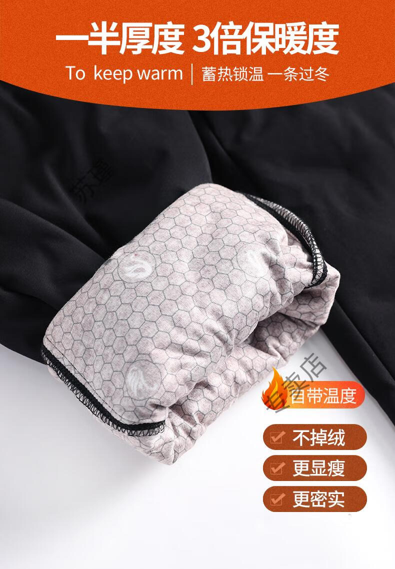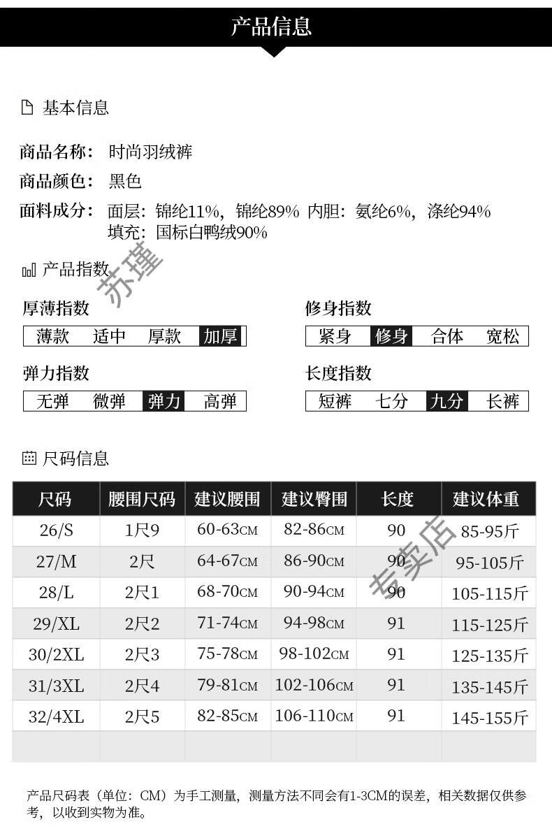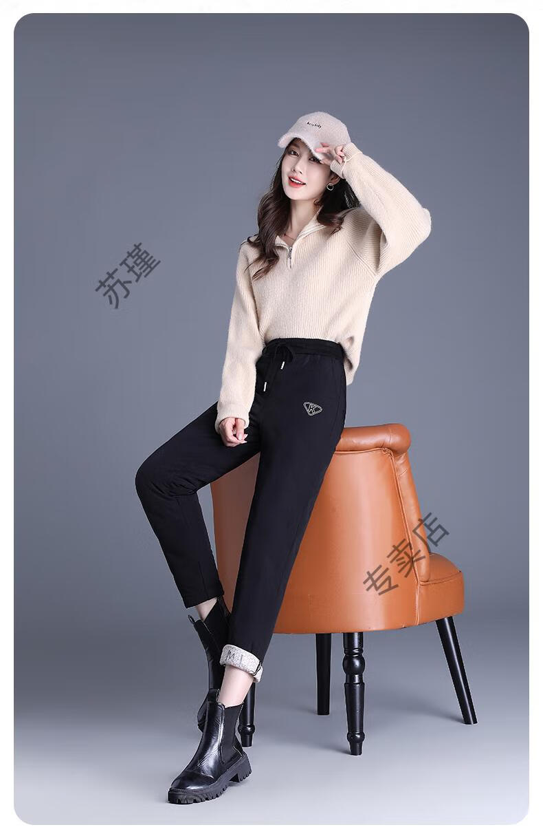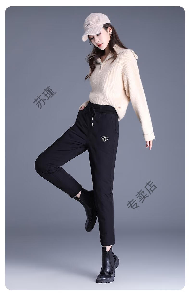 ROMON outer down pants for women in winter, small nine-point straight elastic waist mother's pants, warm plus velvet and thickened clothes, black S recommended 85-95Jin Jin equals 0.5 kg