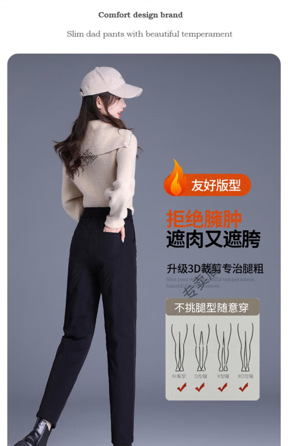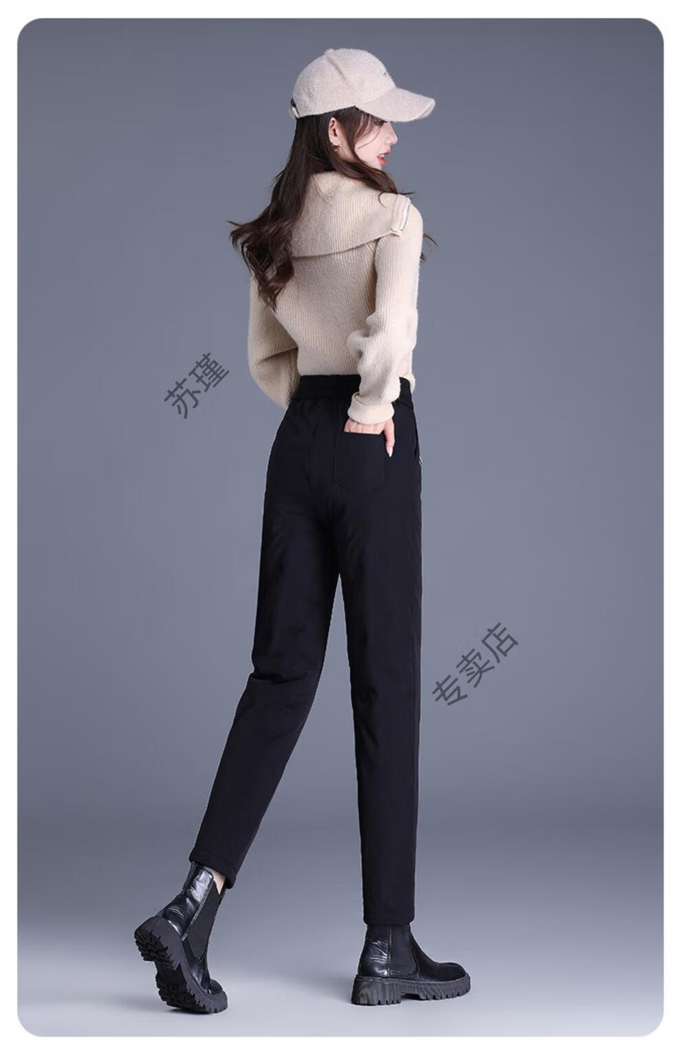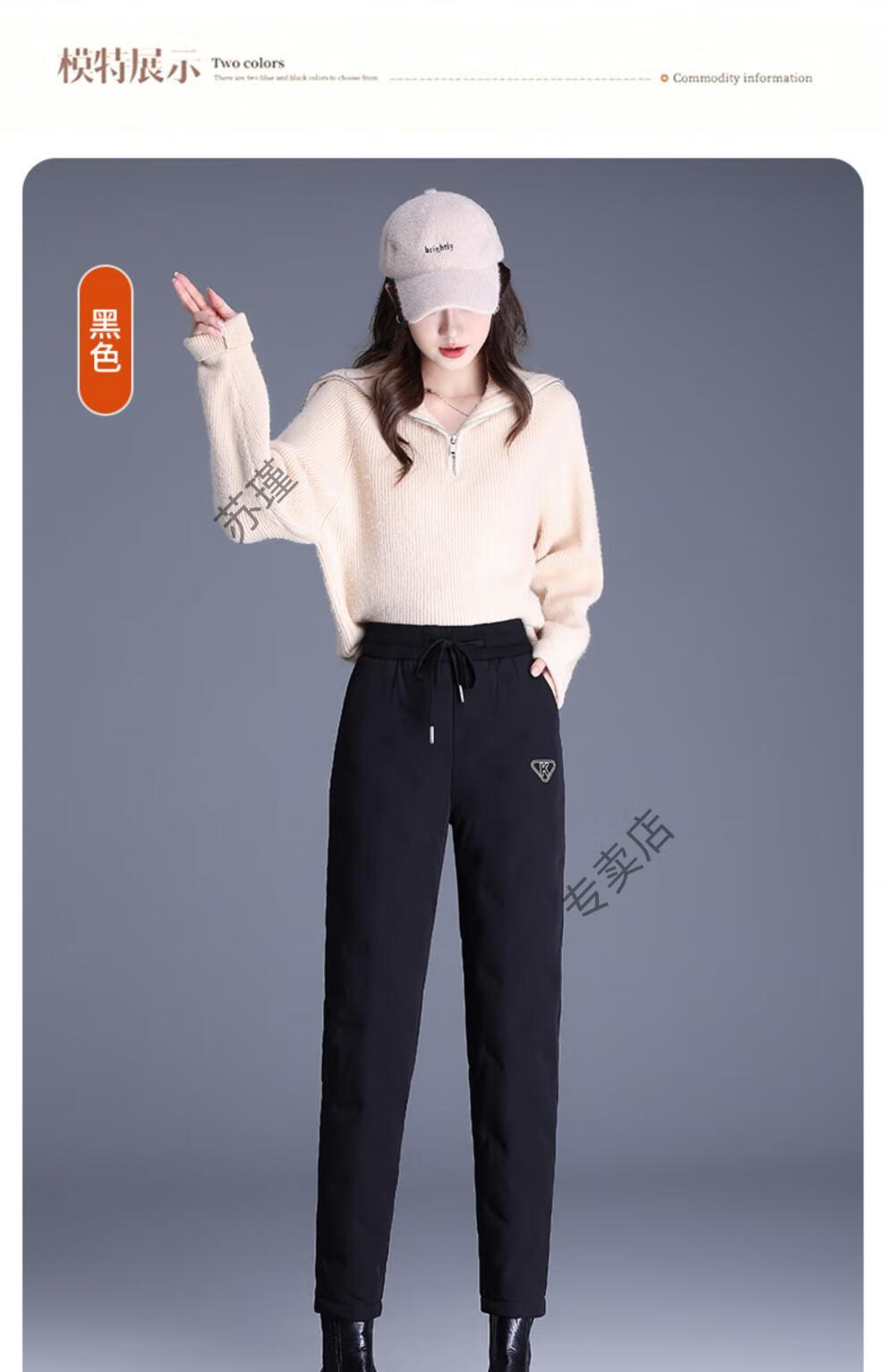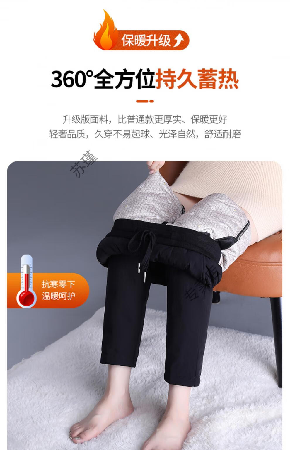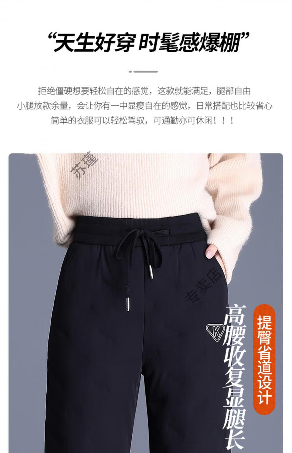 ROMON outer down pants for women in winter, small nine-point straight elastic waist mother's pants, warm plus velvet and thickened clothes, black S recommended 85-95Jin Jin equals 0.5 kg
