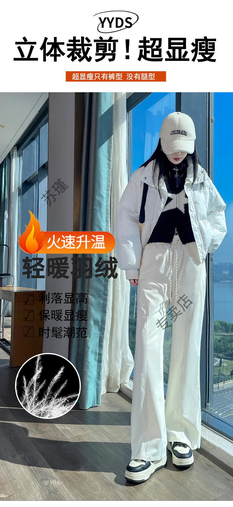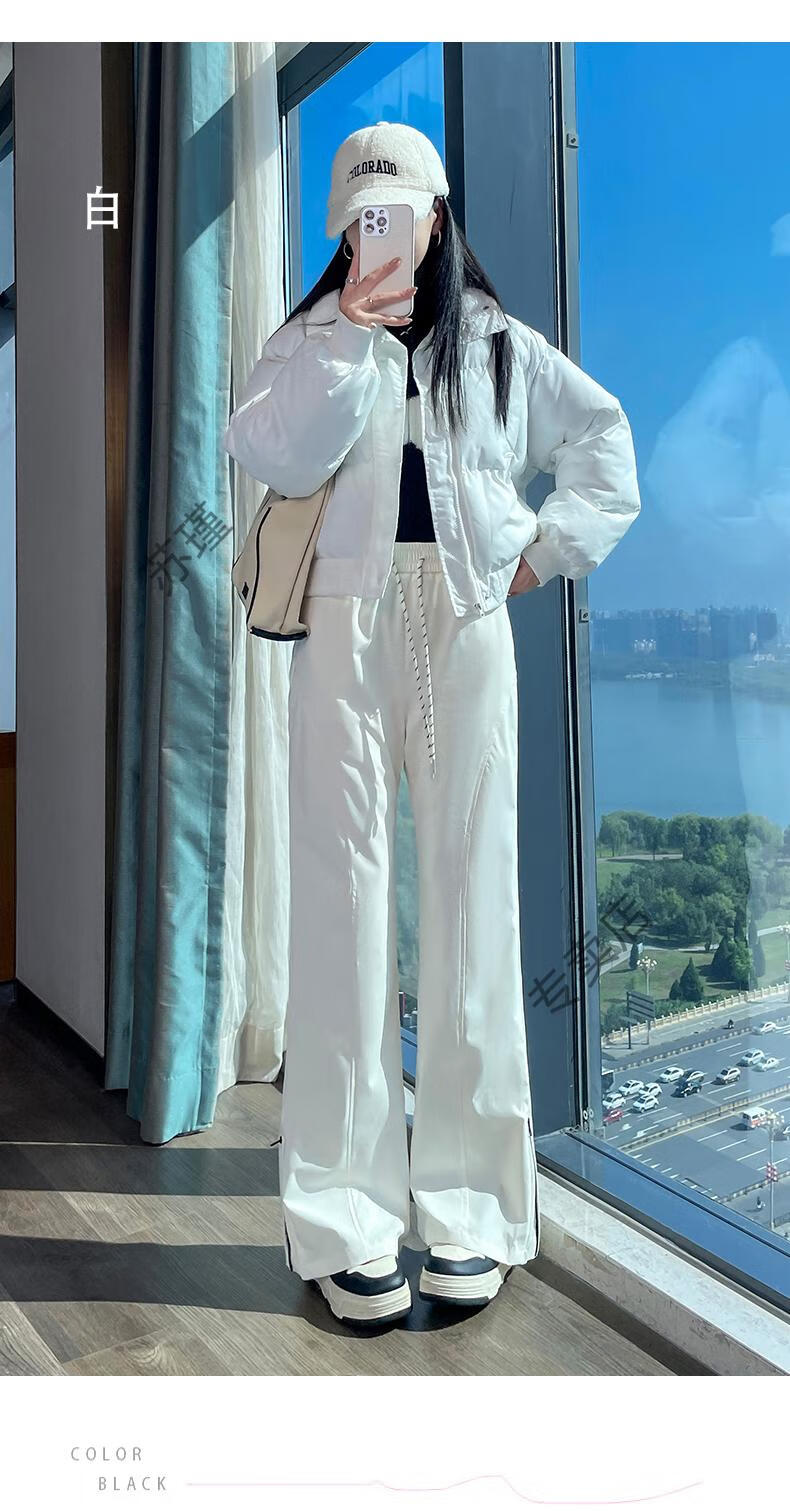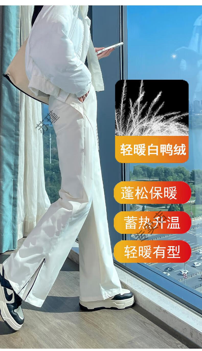 ROMON micro-flared down pants for women's winter outer wear, new warm Northeastern warm and thickened cold-proof fashionable bell-bottomed pants, white S