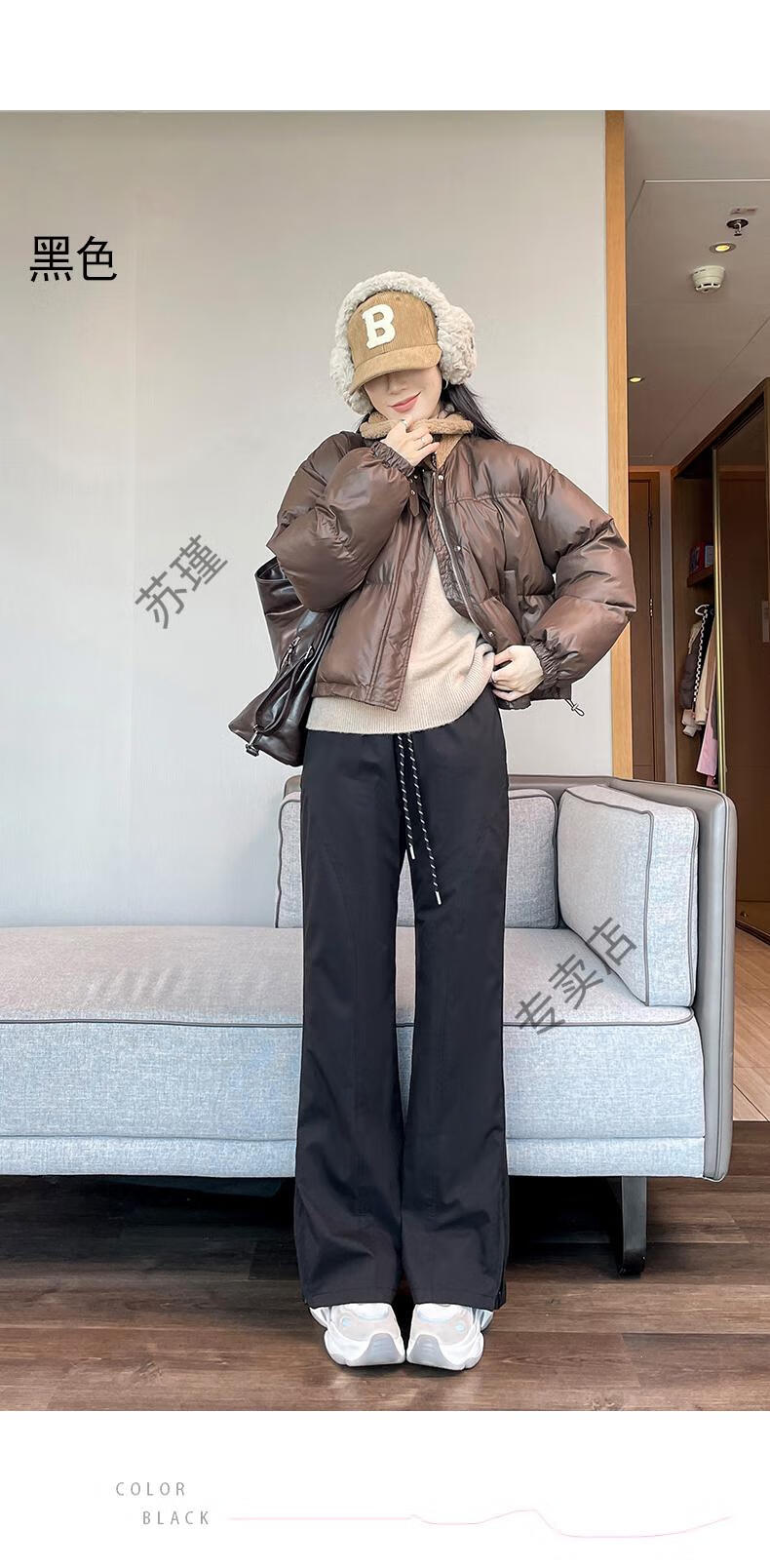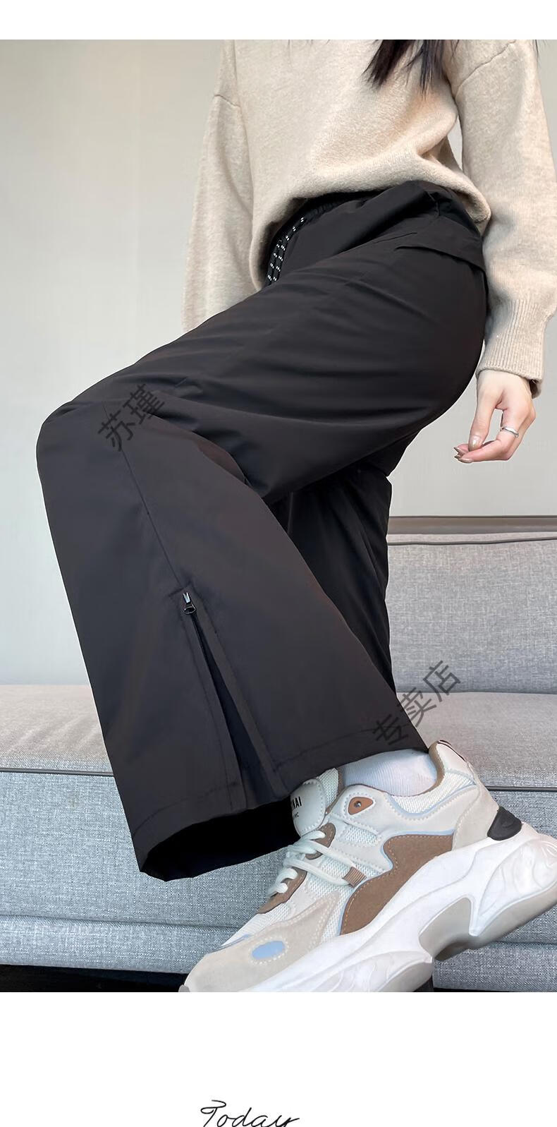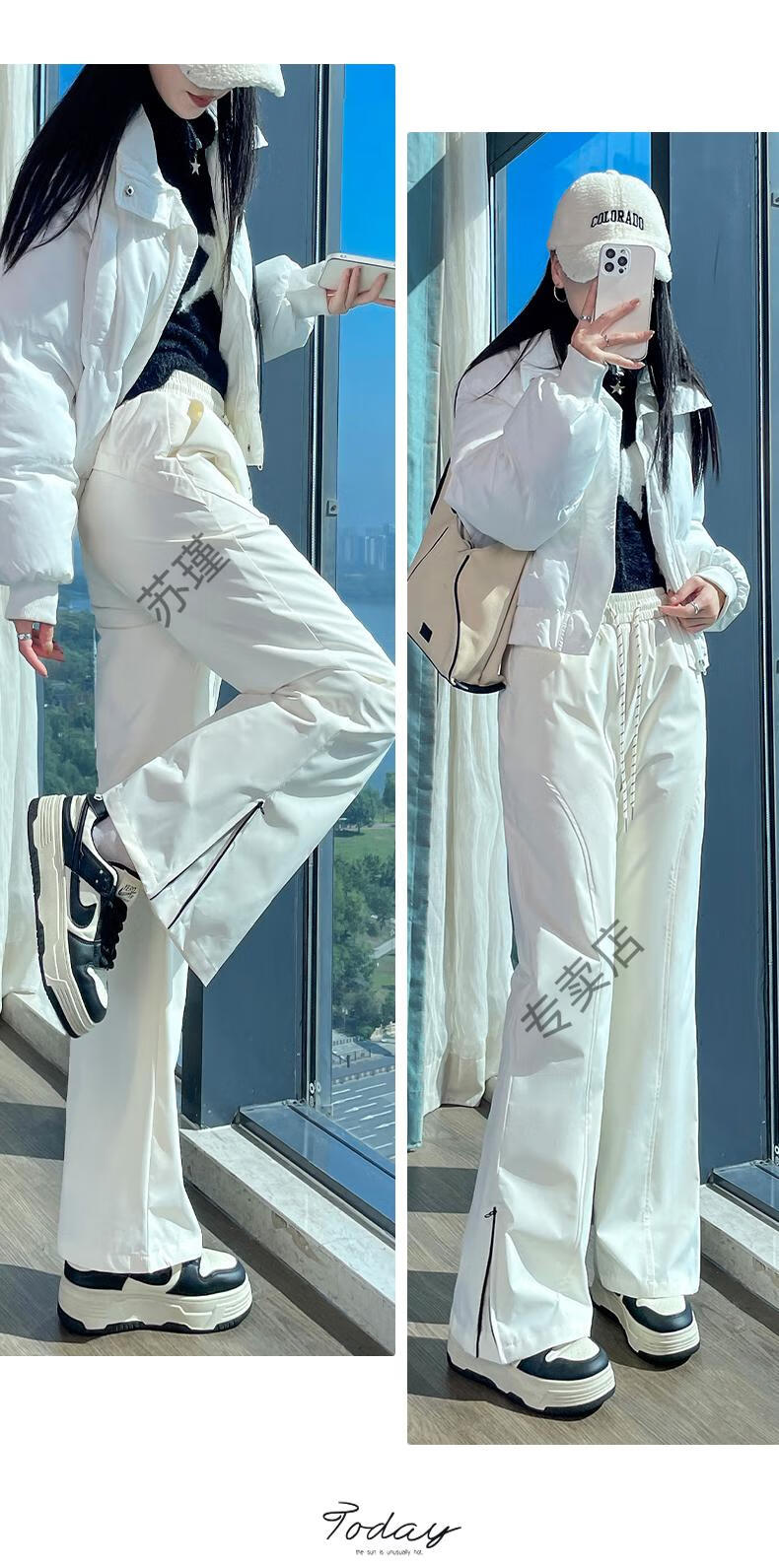ROMON micro-flared down pants for women's winter outer wear, new warm Northeastern warm and thickened cold-proof fashionable bell-bottomed pants, white S