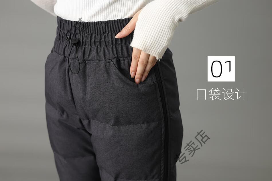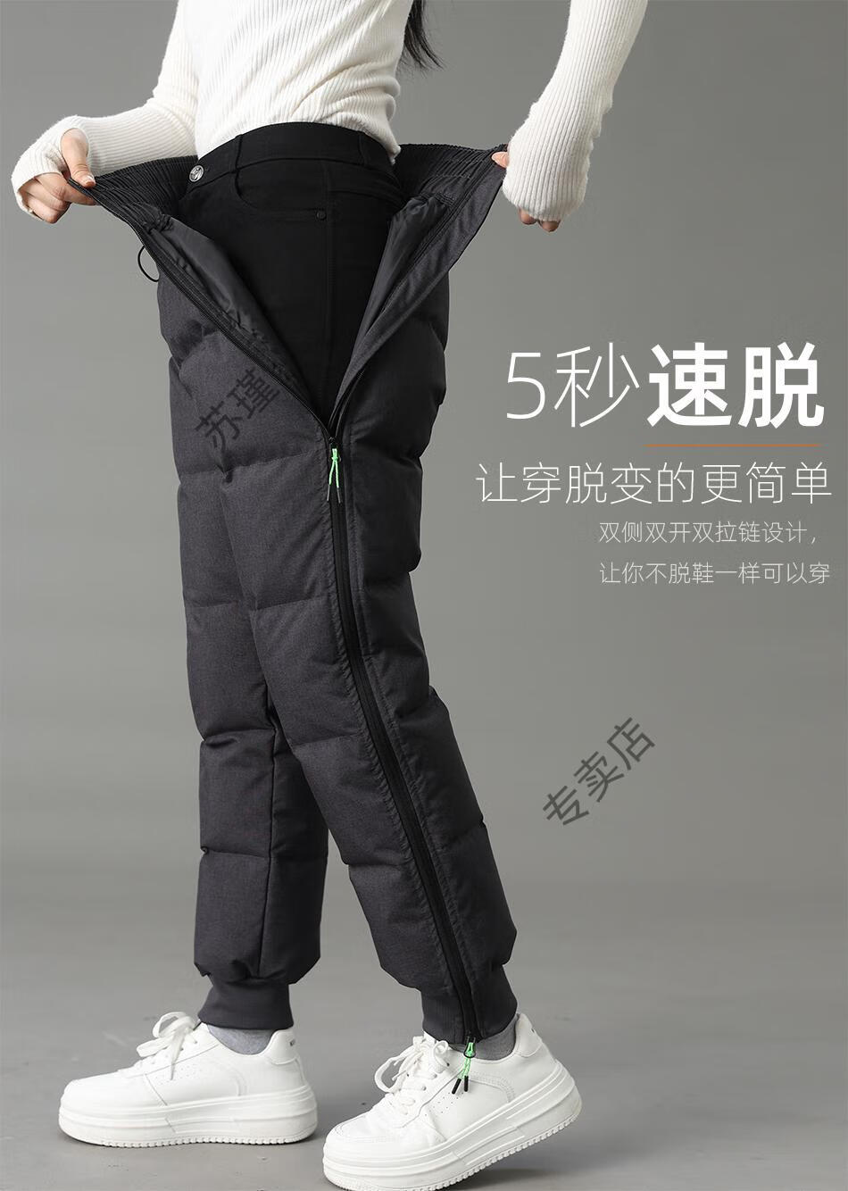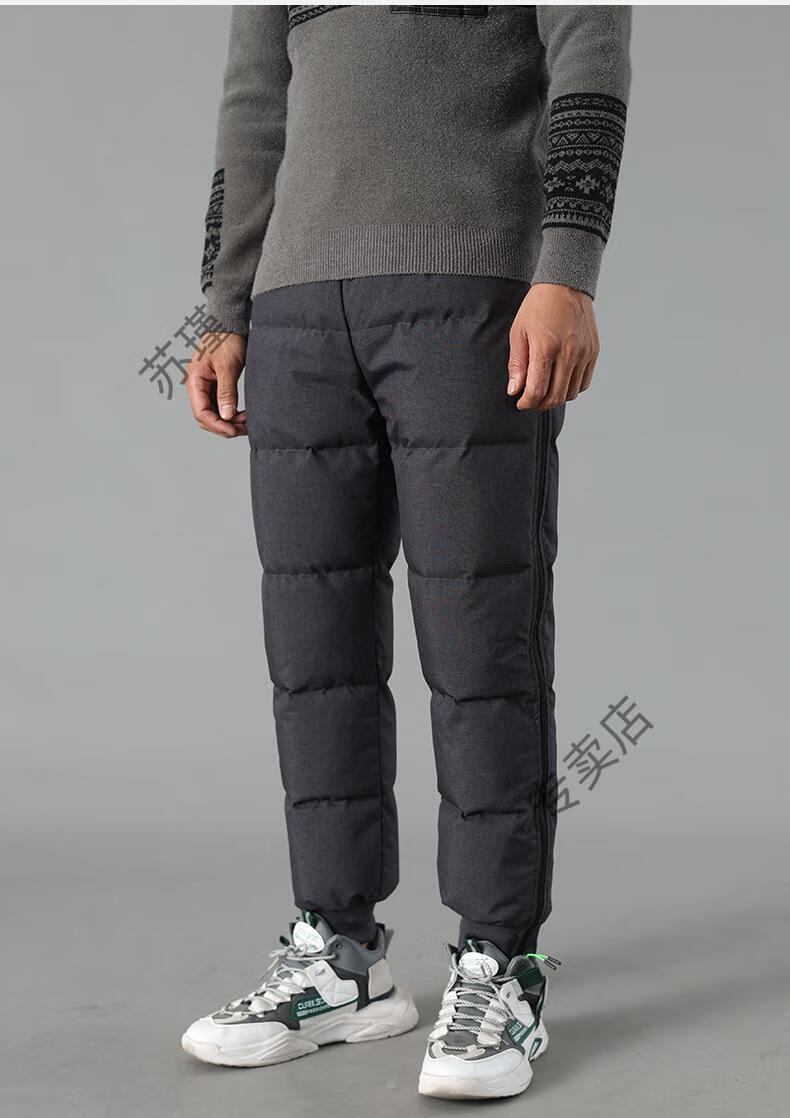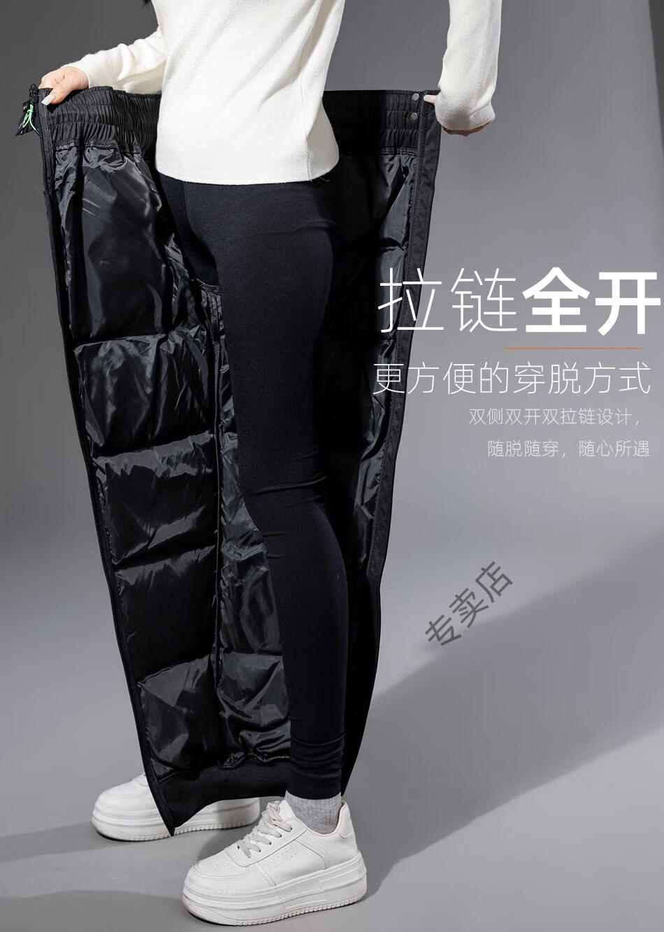 ROMON down pants for men and women, high-waisted cold storage cycling pants, windproof and quick-off, winter outdoor knee-pads, thickened northeastern men's style - two-color black S