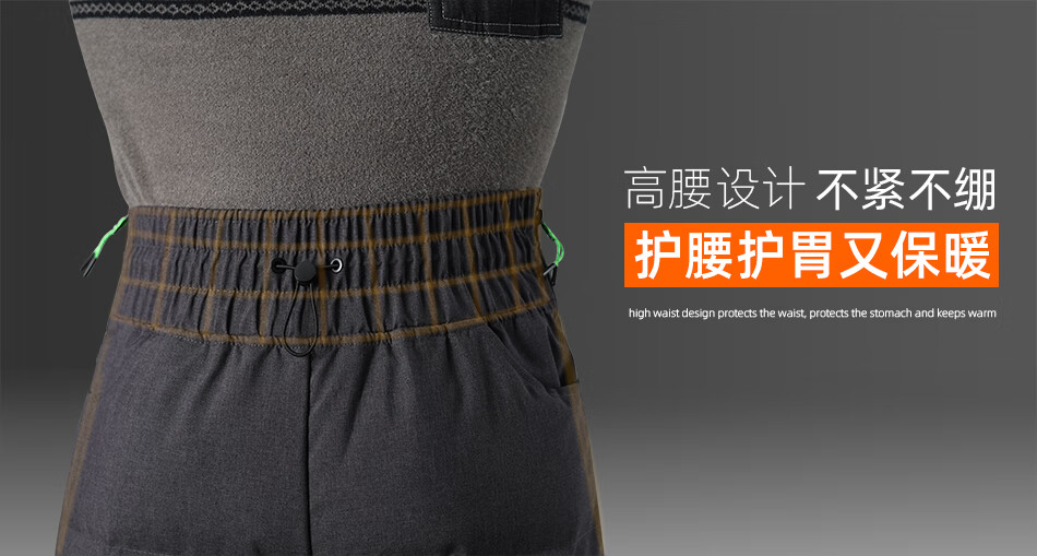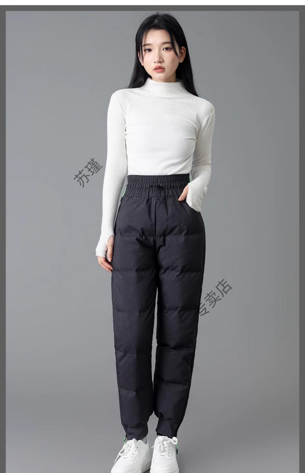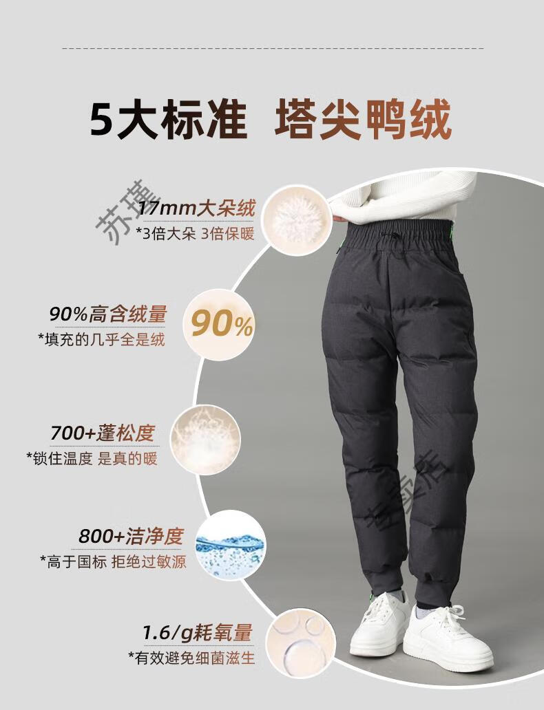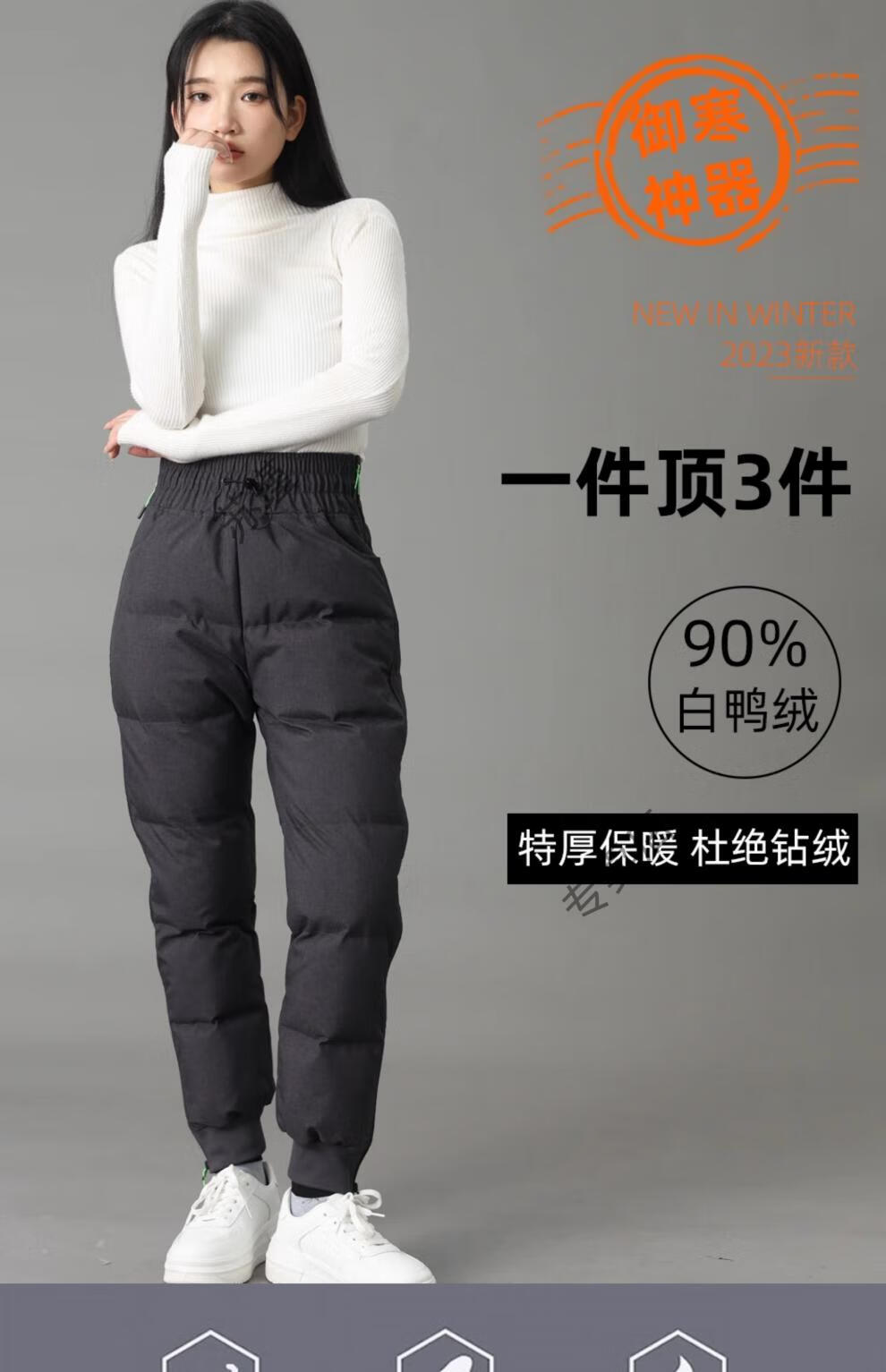 ROMON down pants for men and women, high-waisted cold storage cycling pants, windproof and quick-off, winter outdoor knee-pads, thickened northeastern men's style - two-color black S