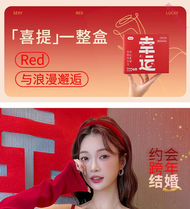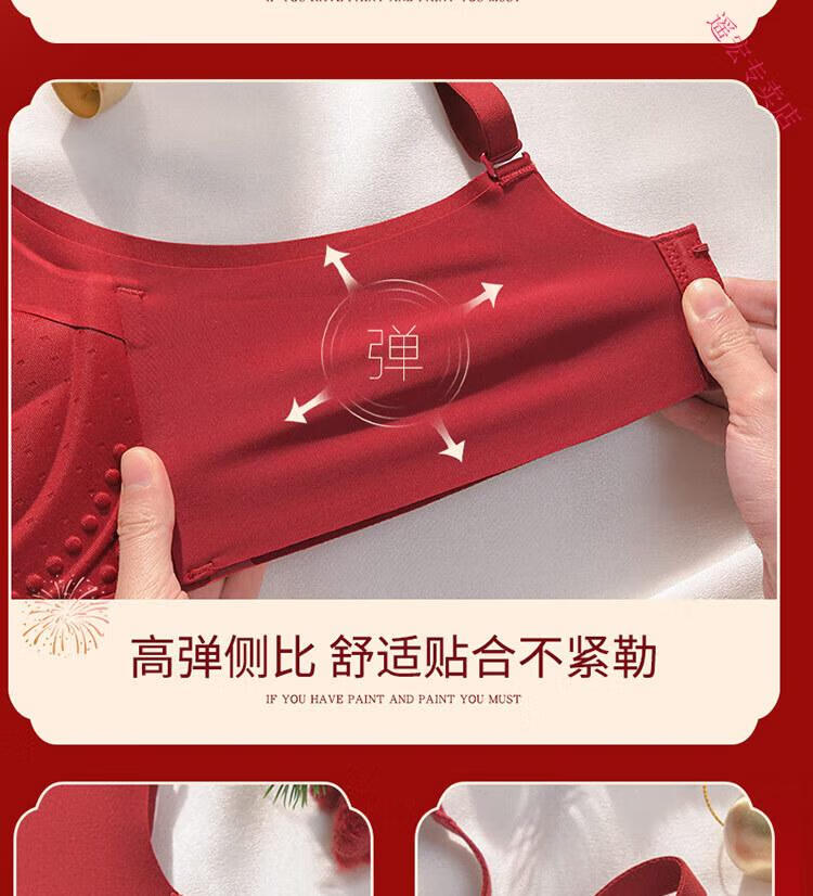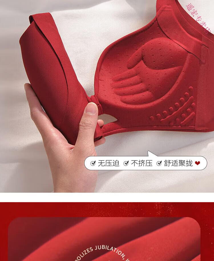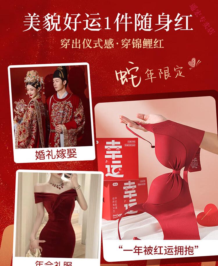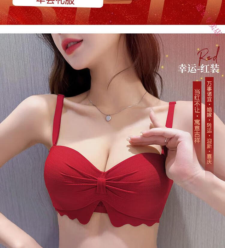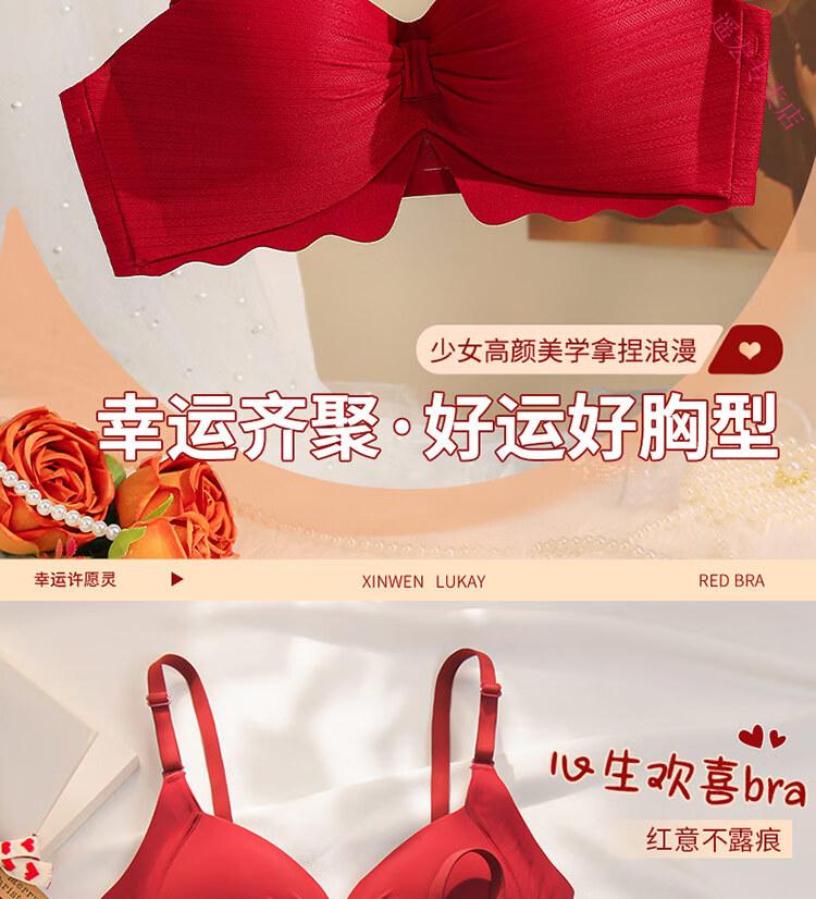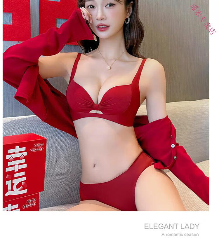LangSha Red Zodiac Year Underwear Set Women's 2025 Year of the Horse Gift Box Wedding Bride Sexy Small Breast Push Up Bra Red Underwear 001+Gift Box 70A 32B 75-95Jin Jin equals 0.5 kg