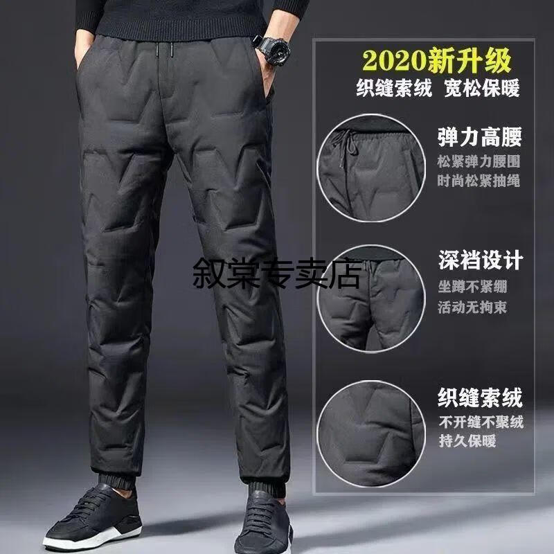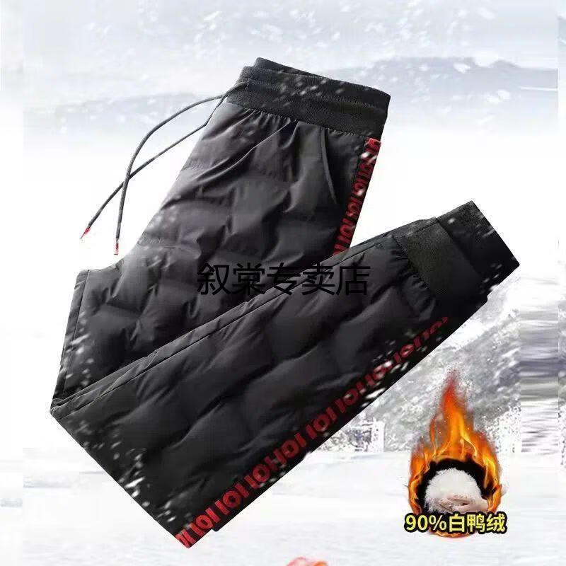 Hengyuanxiang large size white duck down down pants for men and women in winter, middle-aged and elderly windproof and rainproof outer wear warm casual leggings black high quality plus fleece M recommended 80-100Jin Jin equals 0.5 kg