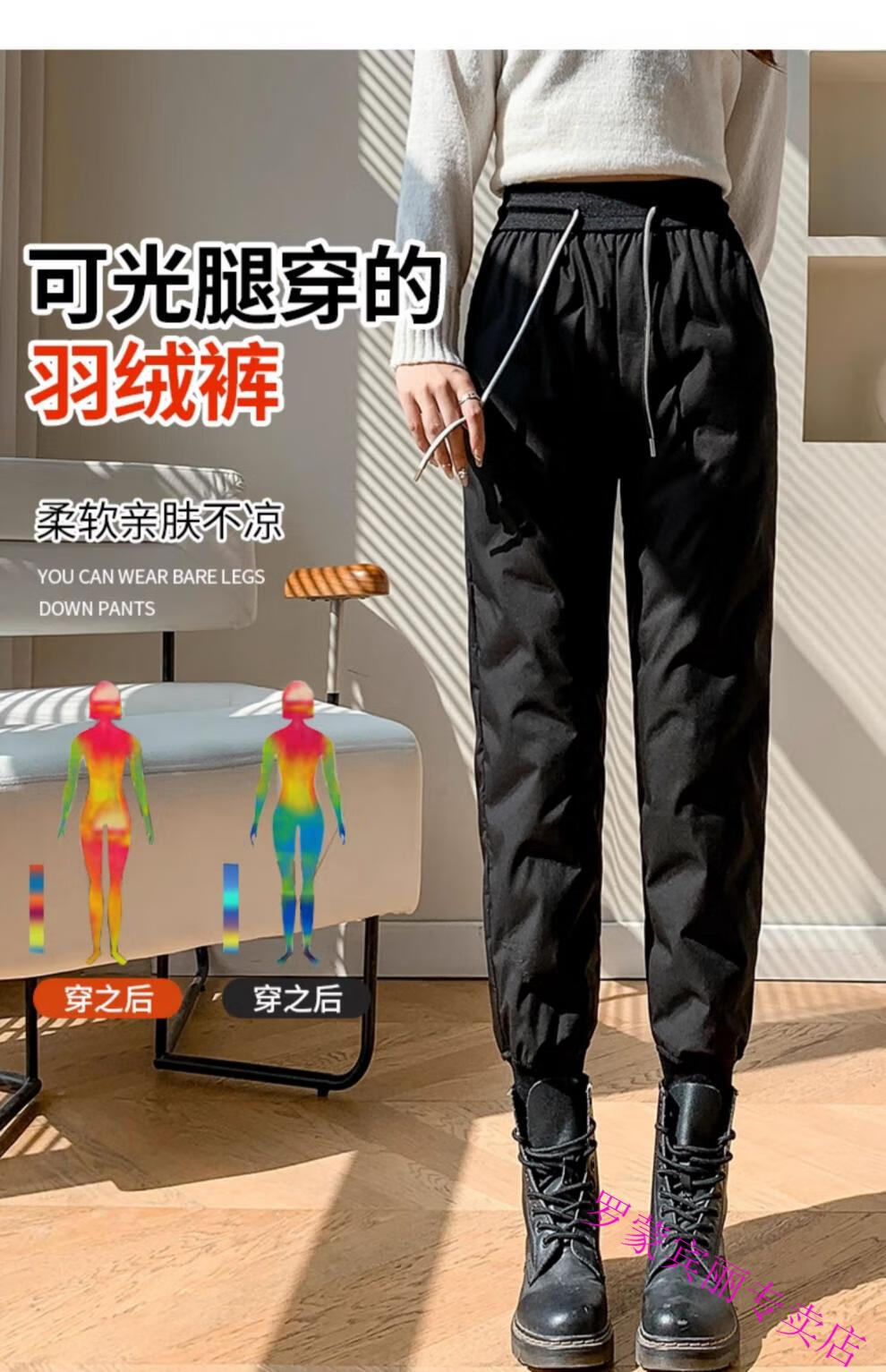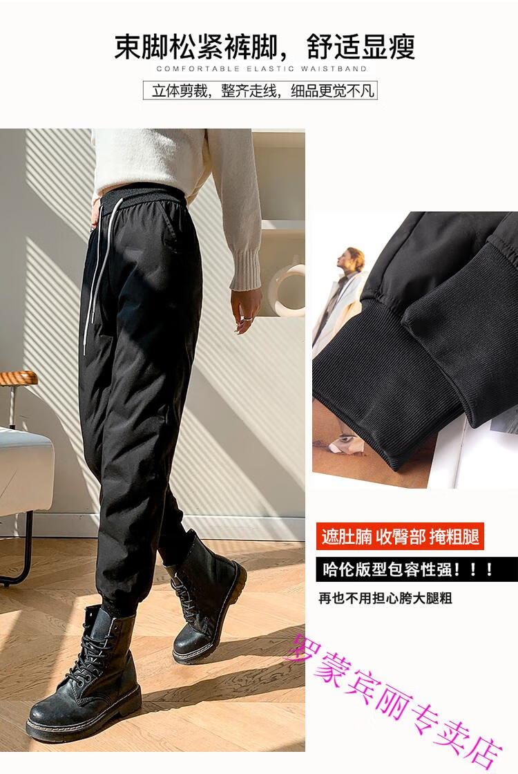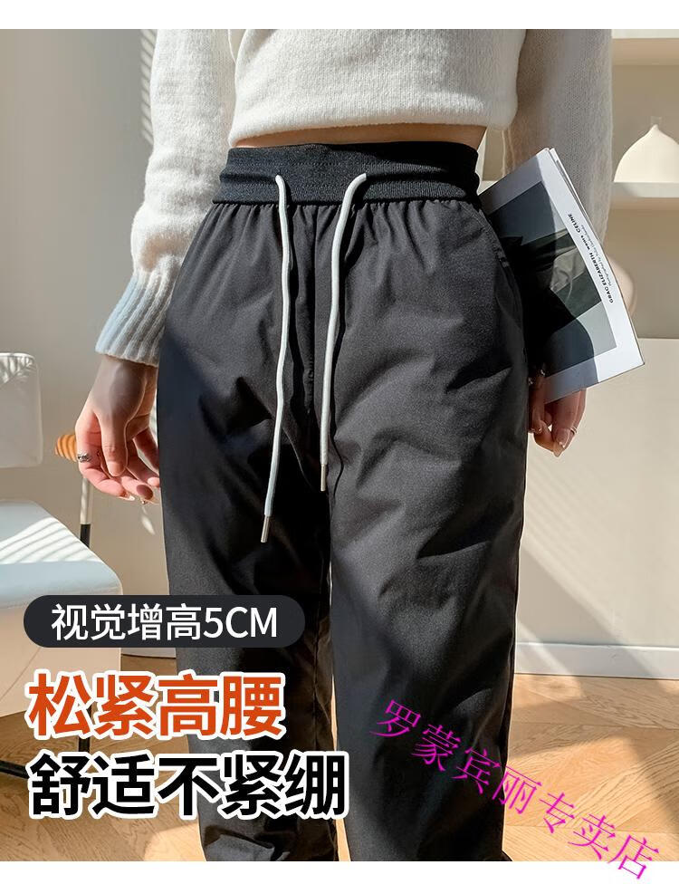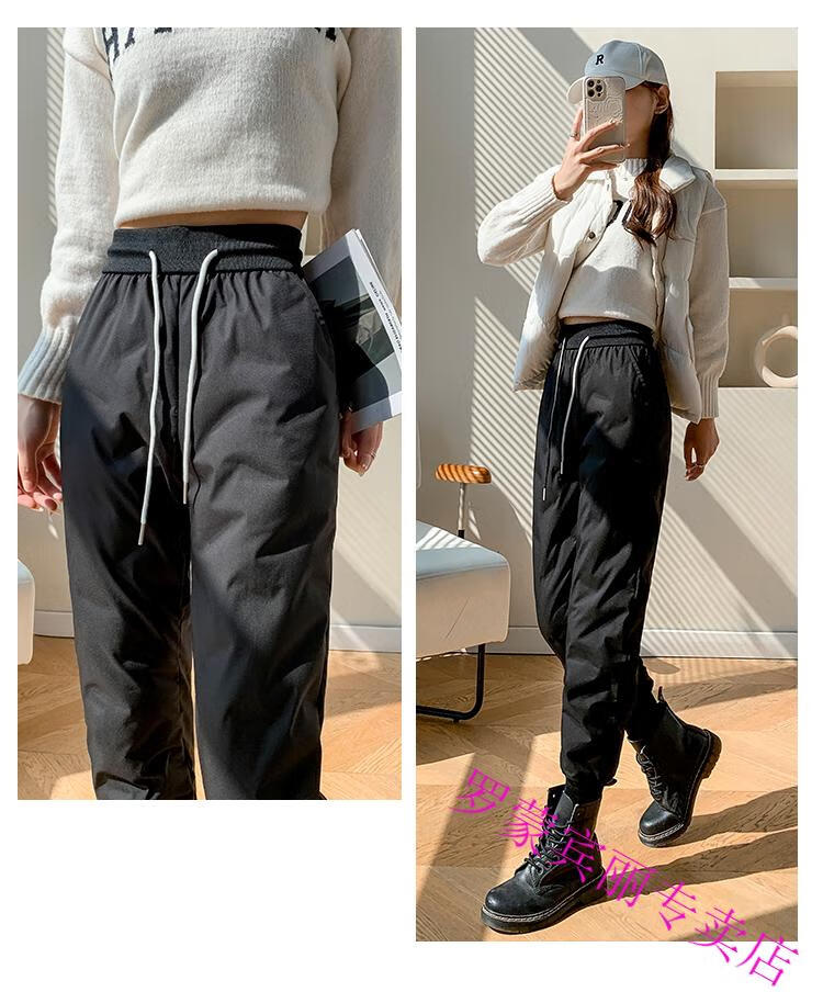 ROMON Harbin Super Thick Down Pants Women's New Winter Outerwear High-end Graphene Black Gold Warm Thickened Cotton Pants Black Gold Down/Pants M Recommendation 85-95