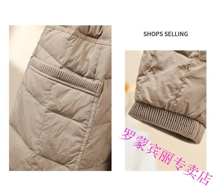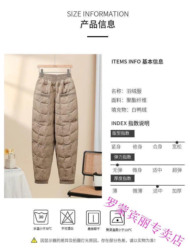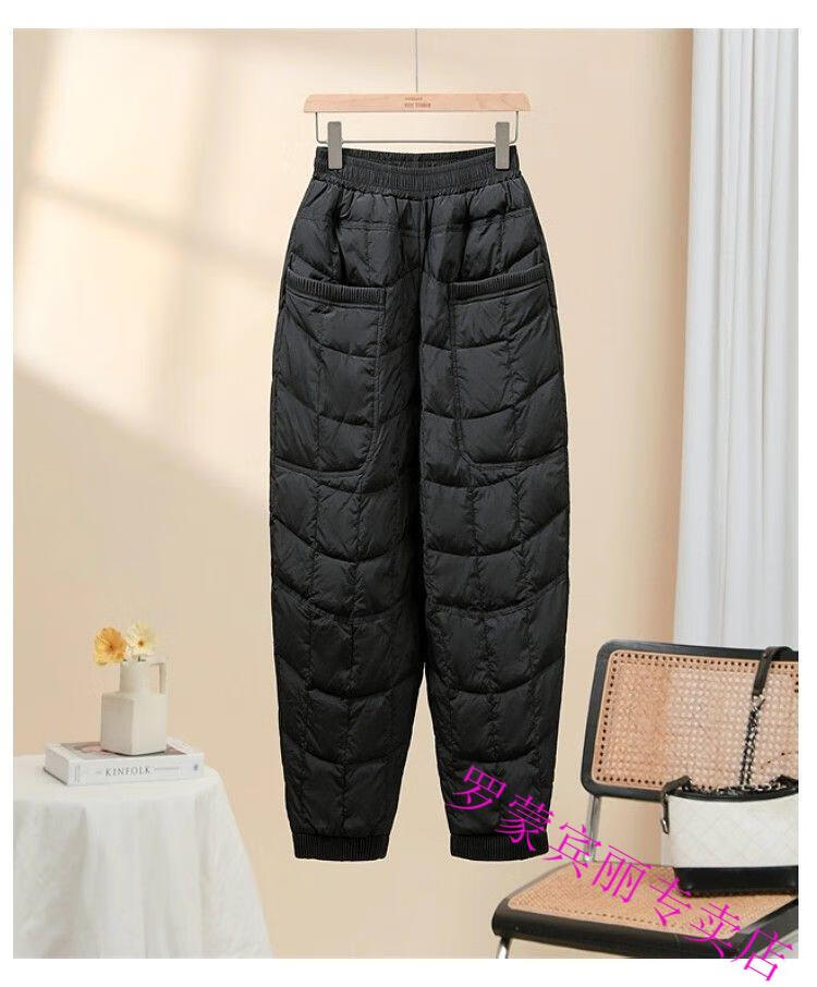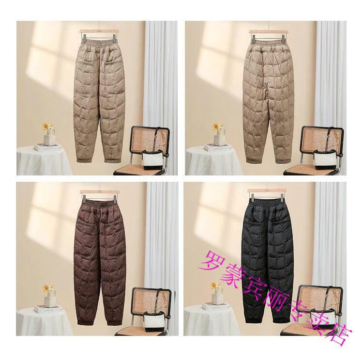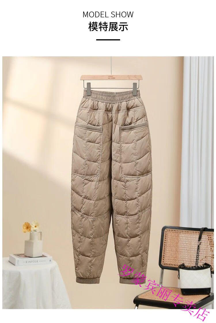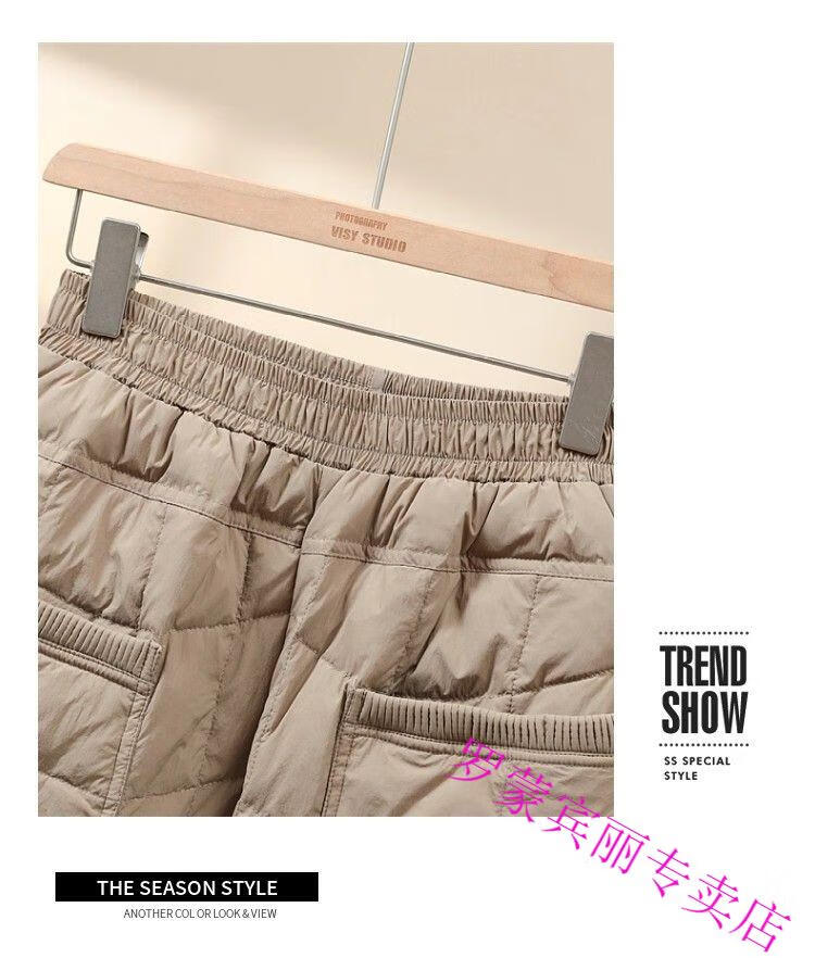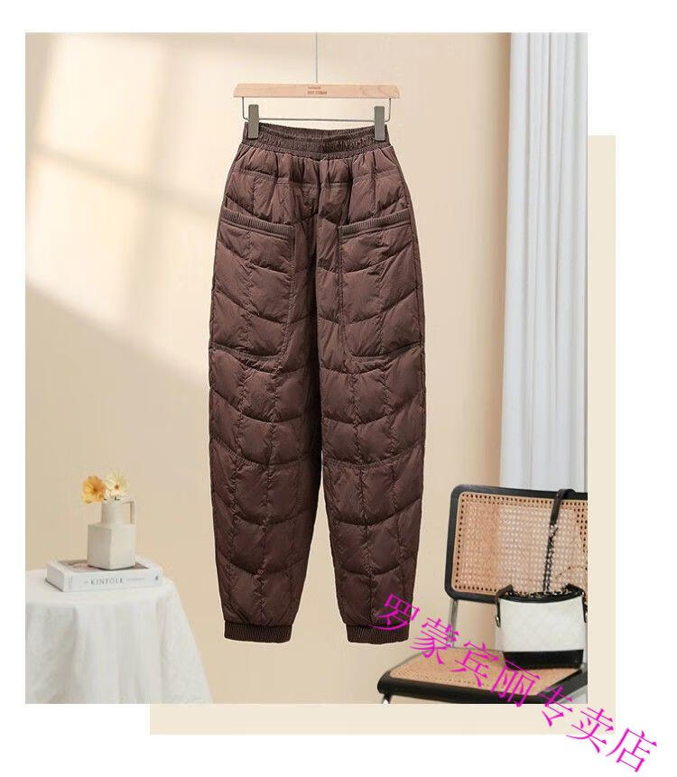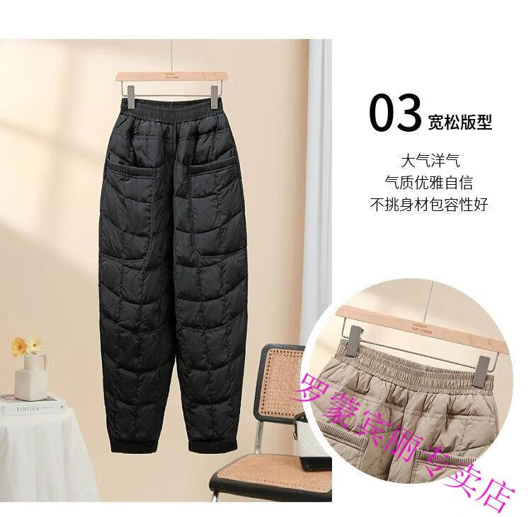 ROMON down pants women's outer wear new fashion high waist thickened white duck down loose warm versatile casual winter khaki M