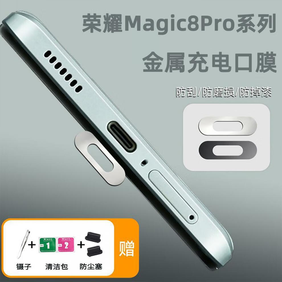 Mu Nian is suitable for Honor Magic8Pro charging port metal protective sticker HONOR charging port anti-scratch film typec anti-dust plug Honor 400 mobile phone charging port film magic7 gold metal protective sticker silver 4 pieces free 3 gifts Honor Magic8 pro
