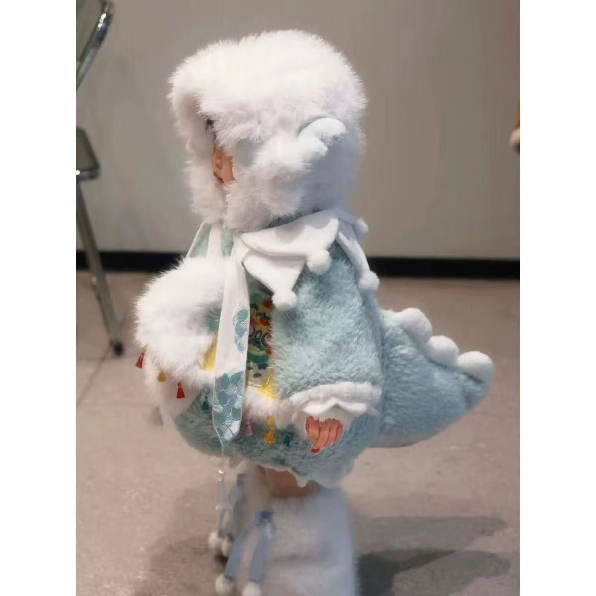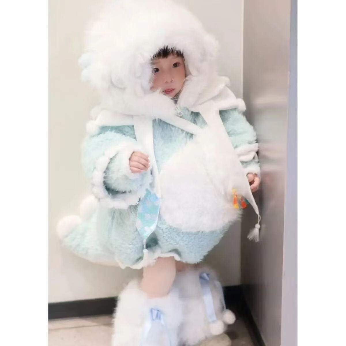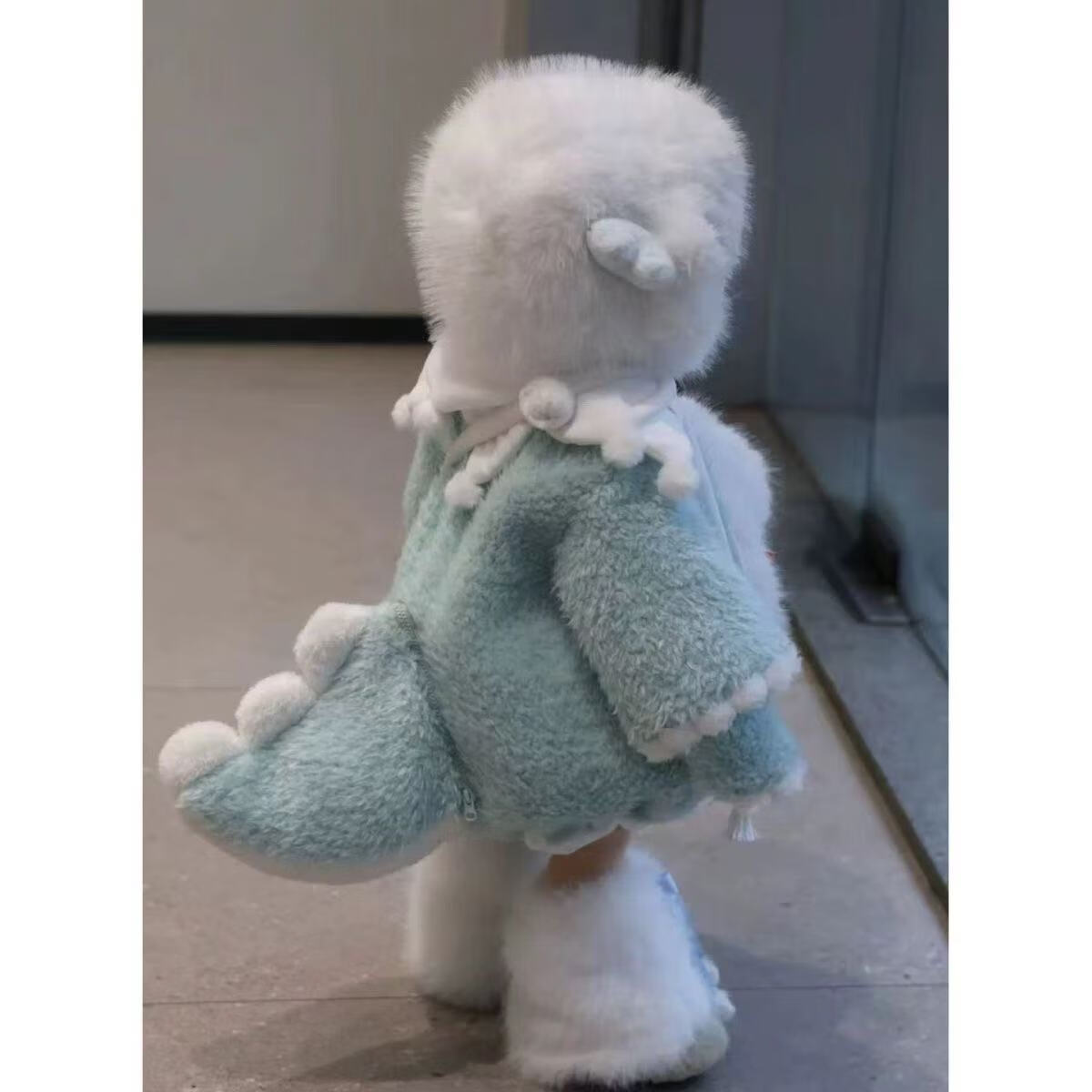 G.duck Little Yellow Duck Children's Clothing Girls' Plush Dinosaur Jacket 2025 Winter Fur Thick Style Set (Coat + Shorts + Little Dinosaur + Socks) 80