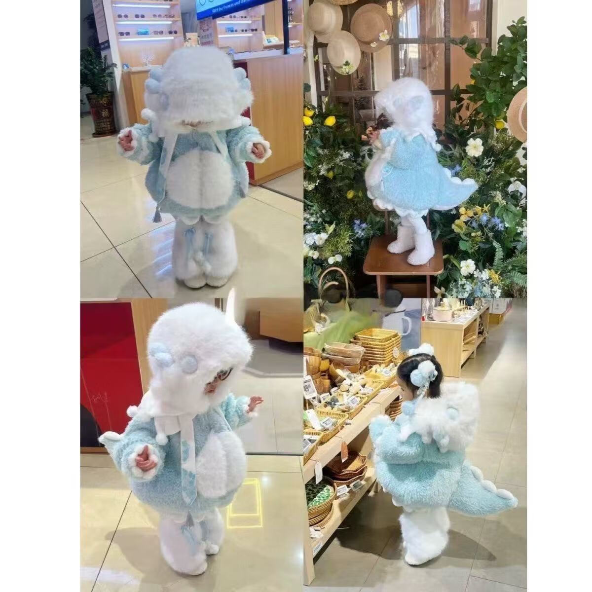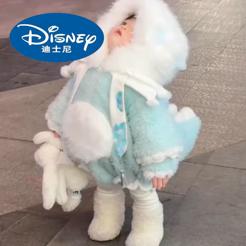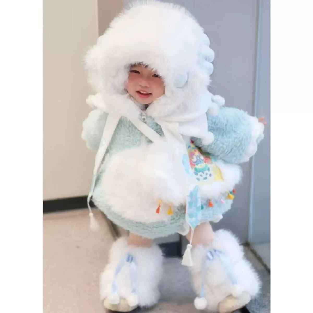 G.duck Little Yellow Duck Children's Clothing Girls' Plush Dinosaur Jacket 2025 Winter Fur Thick Style Set (Coat + Shorts + Little Dinosaur + Socks) 80