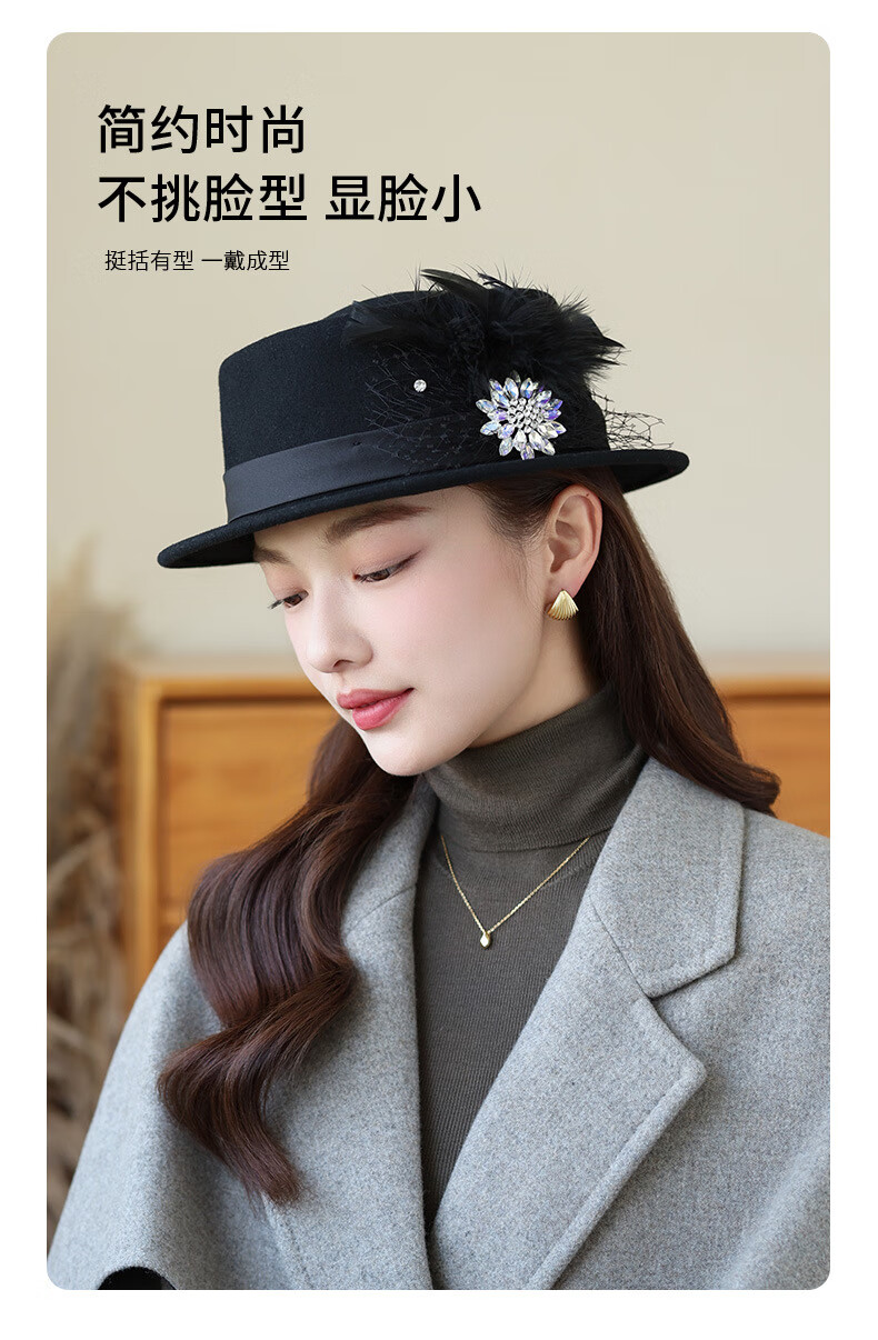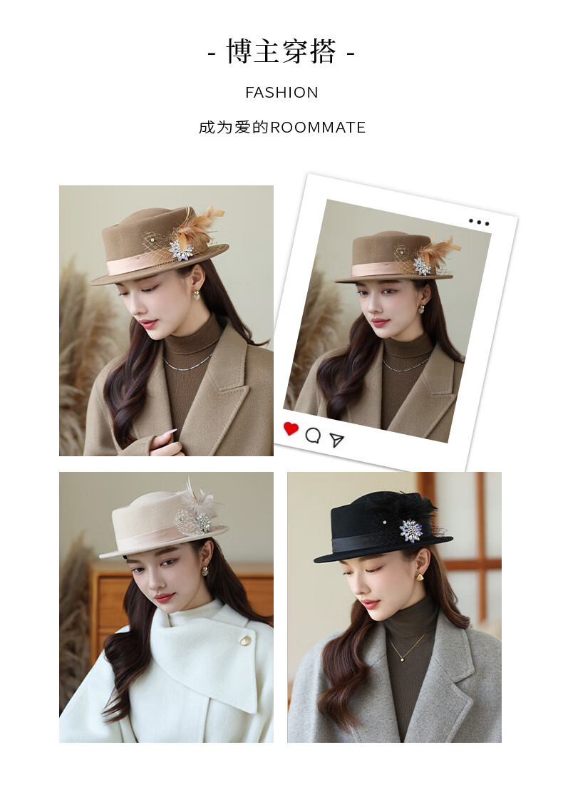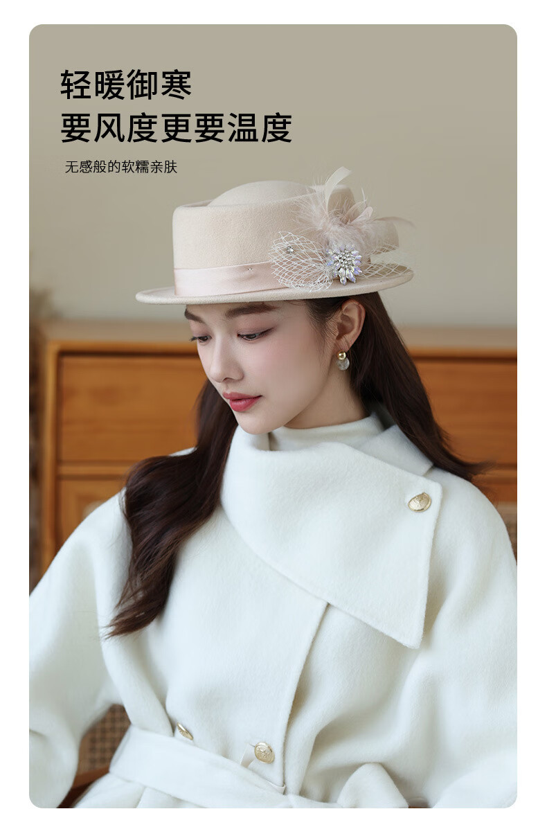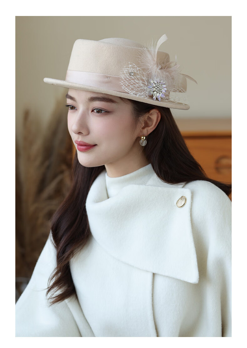 GEFWEIMKL merino wool hat women's autumn and winter new fashion versatile Hepburn style wool fisherman hat flat top ladies hat off-white M (56-58cm)