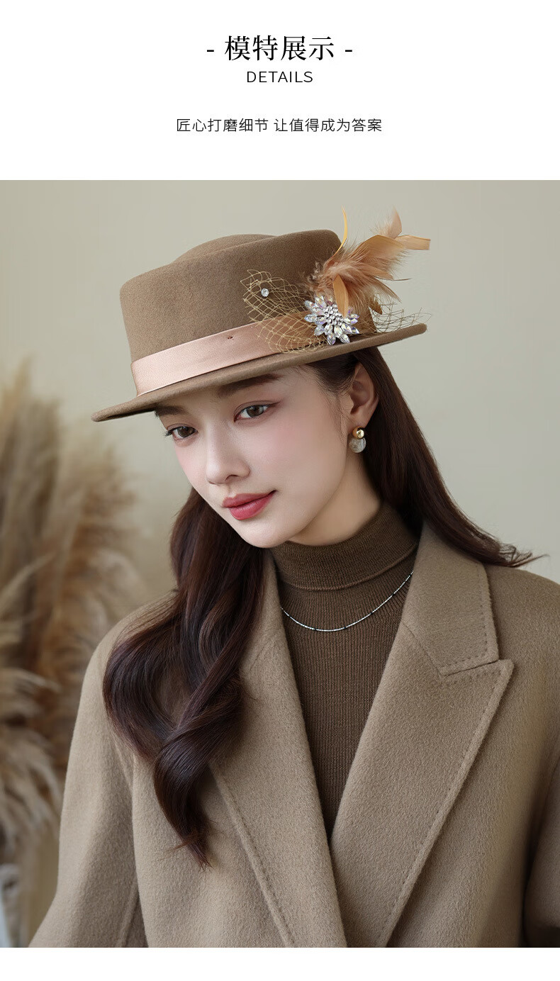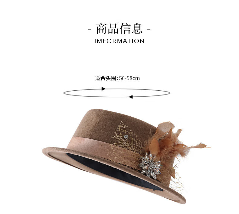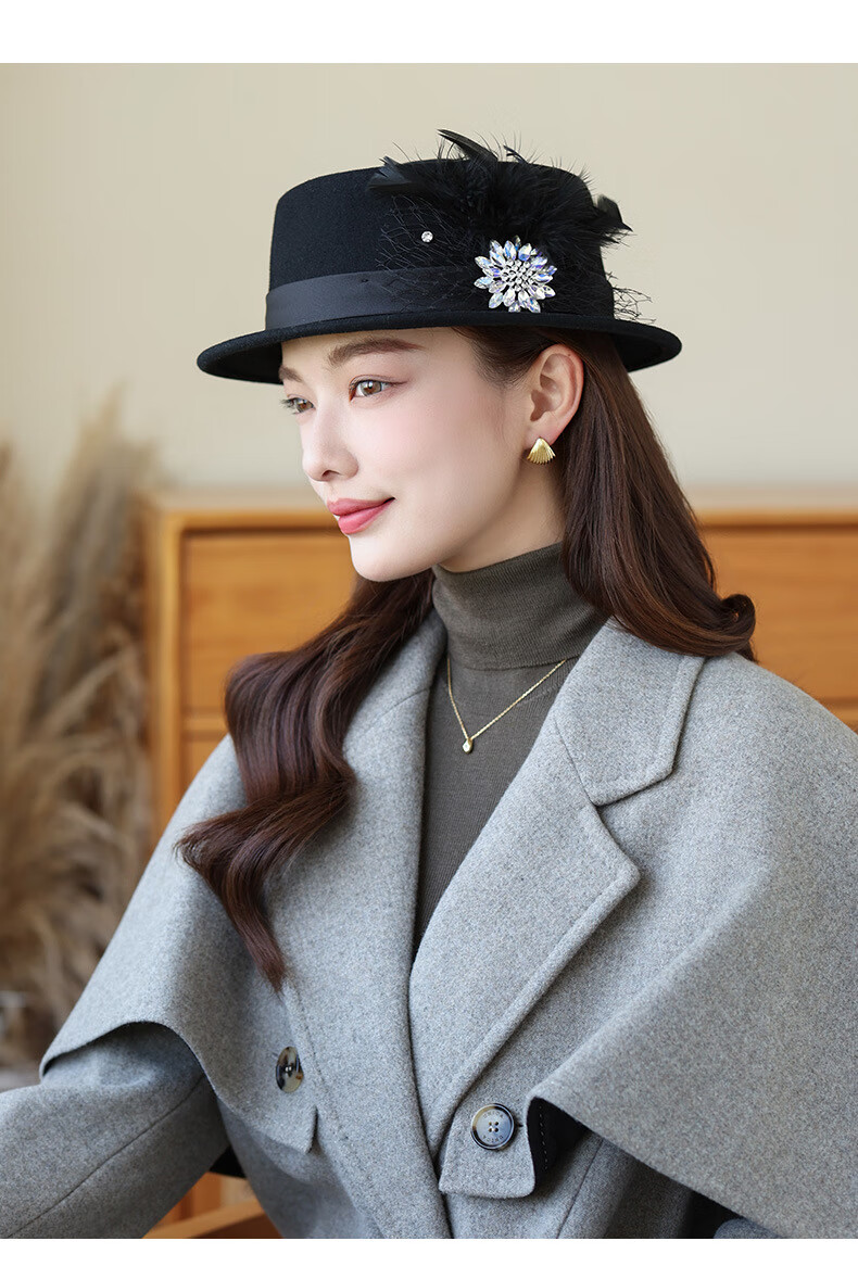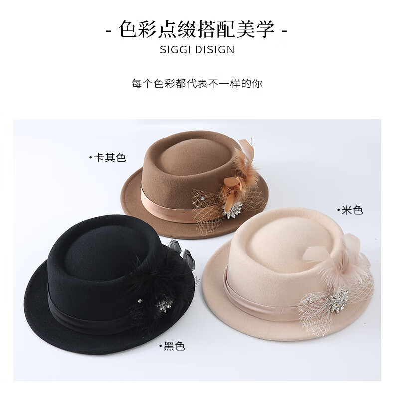 GEFWEIMKL merino wool hat women's autumn and winter new fashion versatile Hepburn style wool fisherman hat flat top ladies hat off-white M (56-58cm)
