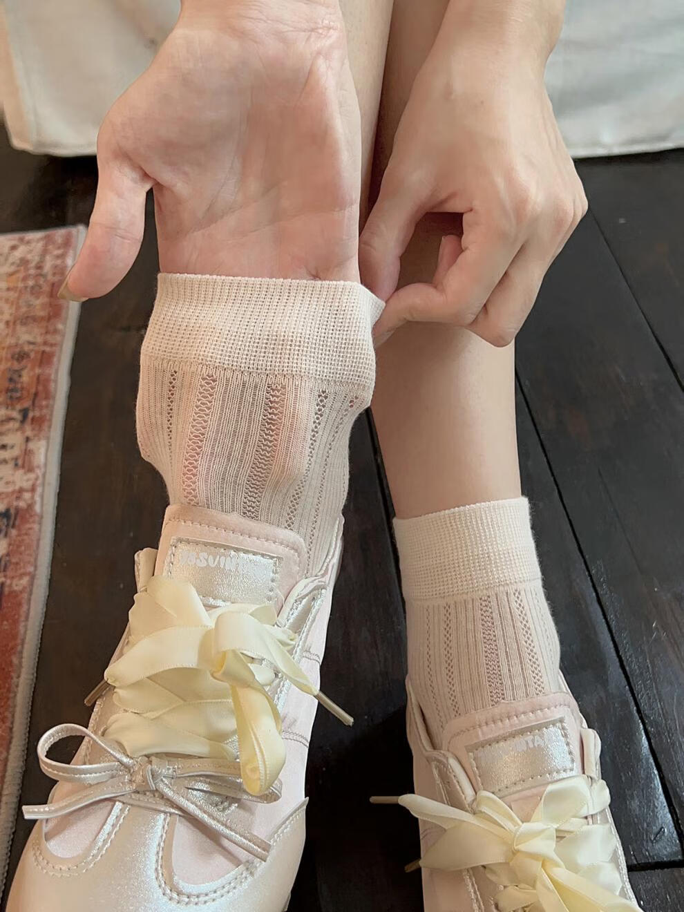 VCICTIOLIA Icelandic Summer Gray Socks Women's Socks Summer Thin Mesh Ballet Style Medium Stockings Milk White + Gray + Black One Size