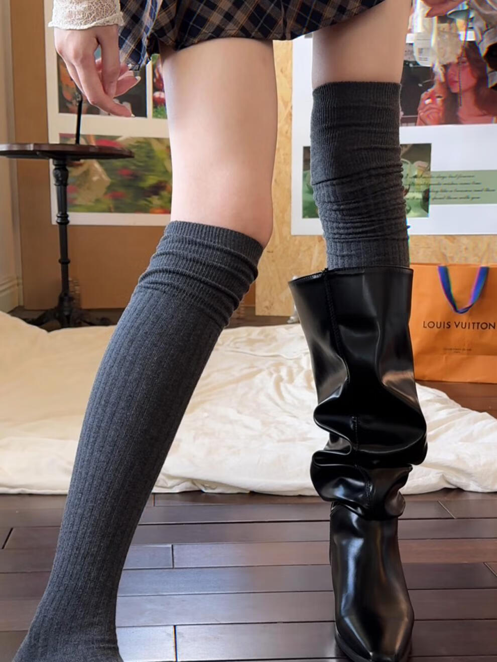 VCICTIOLIA Socks Women's Over-the-Knee Autumn and Winter Pure Cotton Pile Socks with Boots Ballet Style Calf Socks Pressure High Socks Apricot Beige + Brown One Size