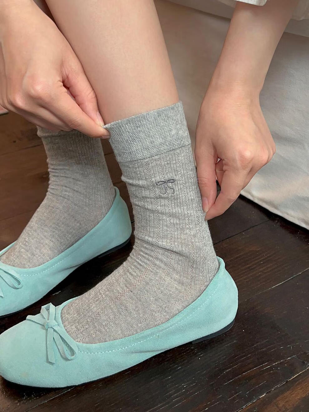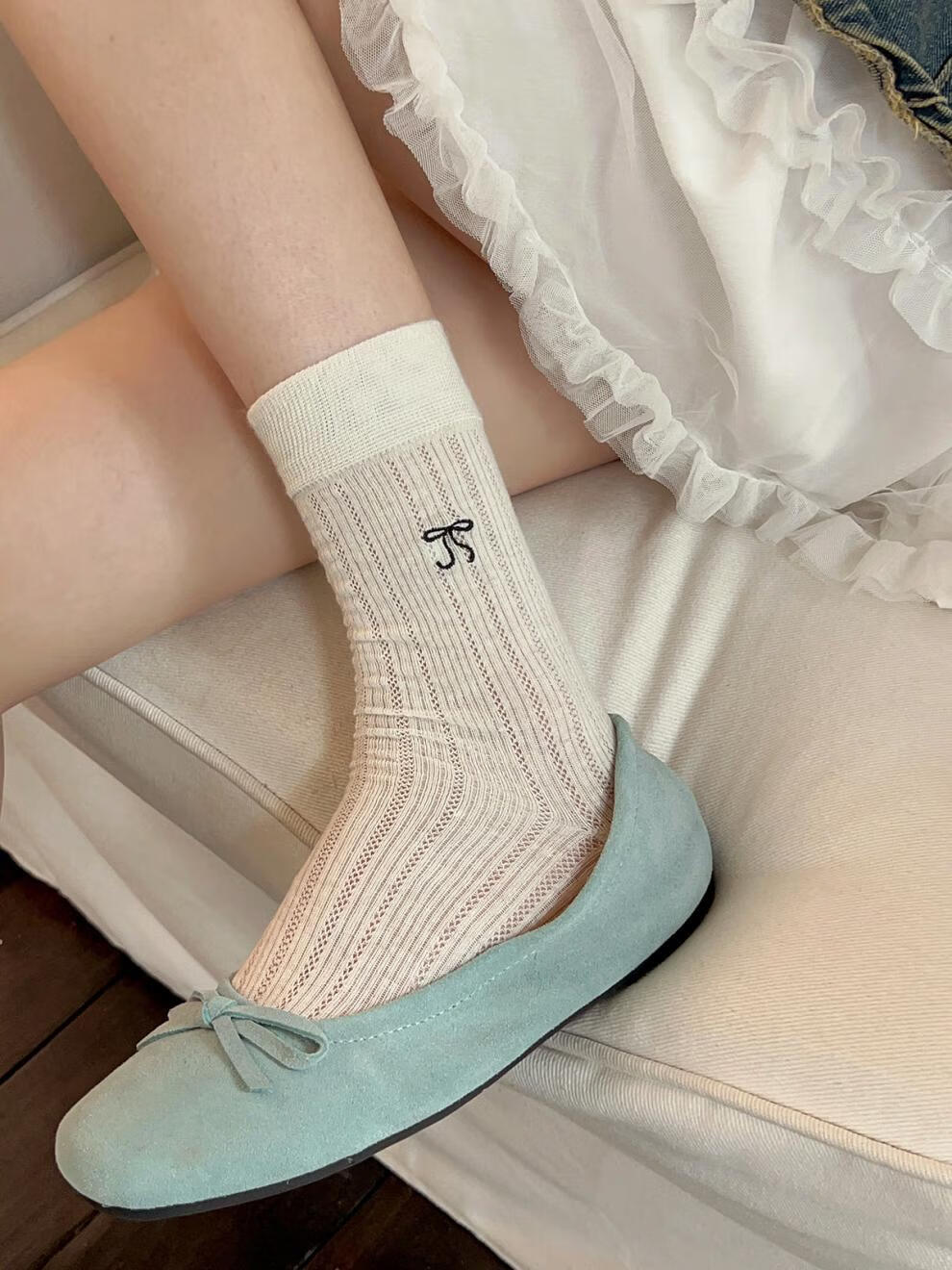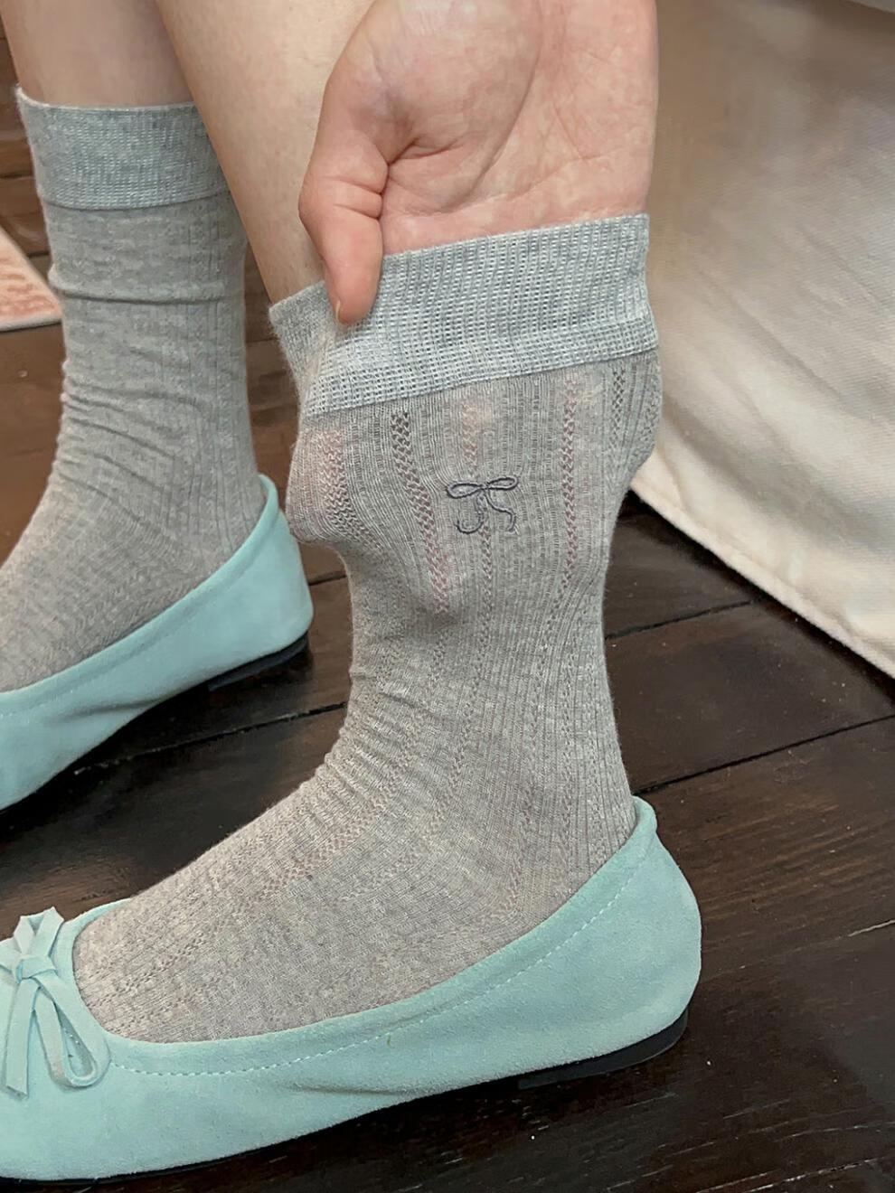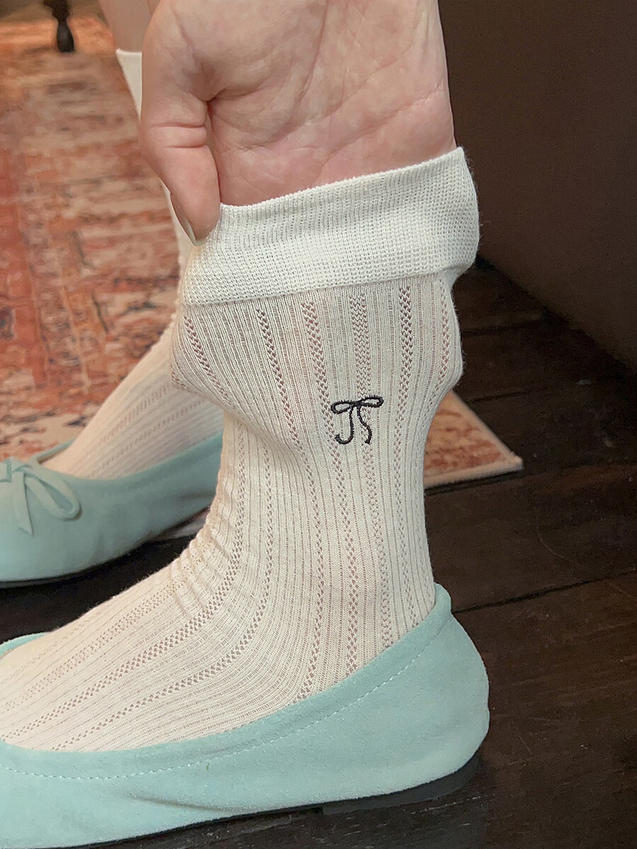 VCICTIOLIA atmosphere gray socks women's mid-calf socks summer thin hollow ballet style stockings gray + milk white one size