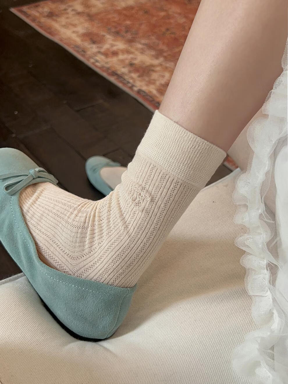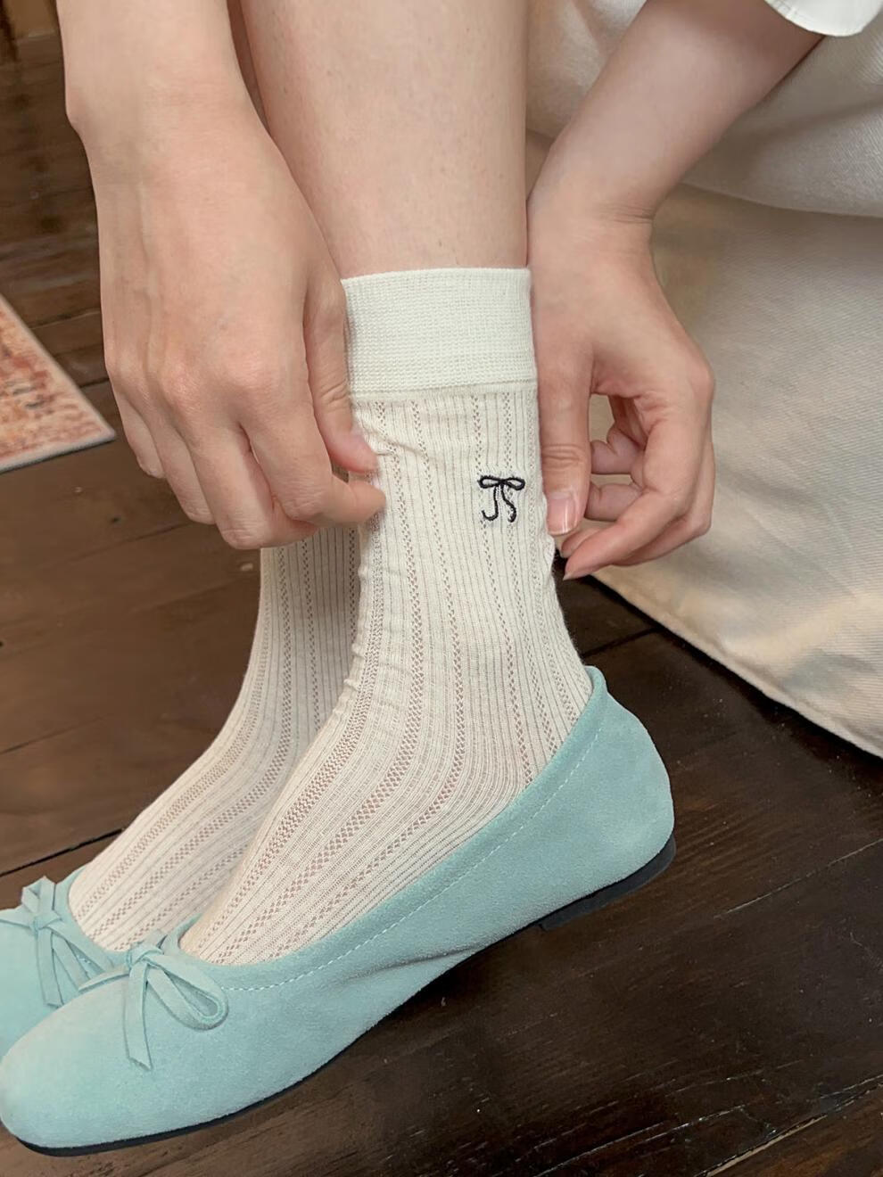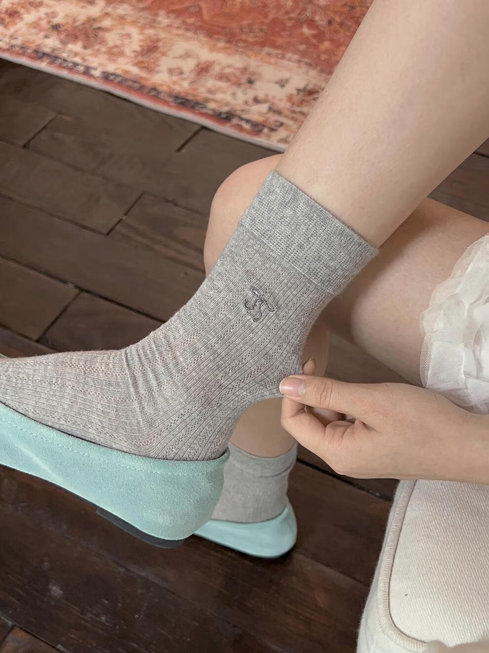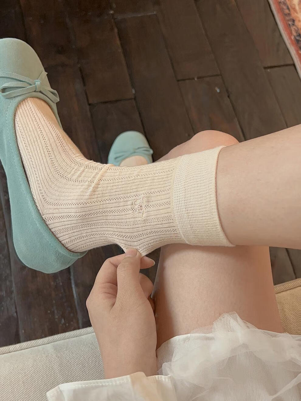 VCICTIOLIA atmosphere gray socks women's mid-calf socks summer thin hollow ballet style stockings gray + milk white one size