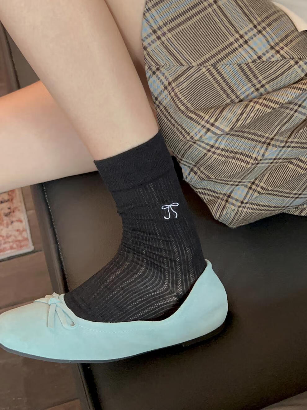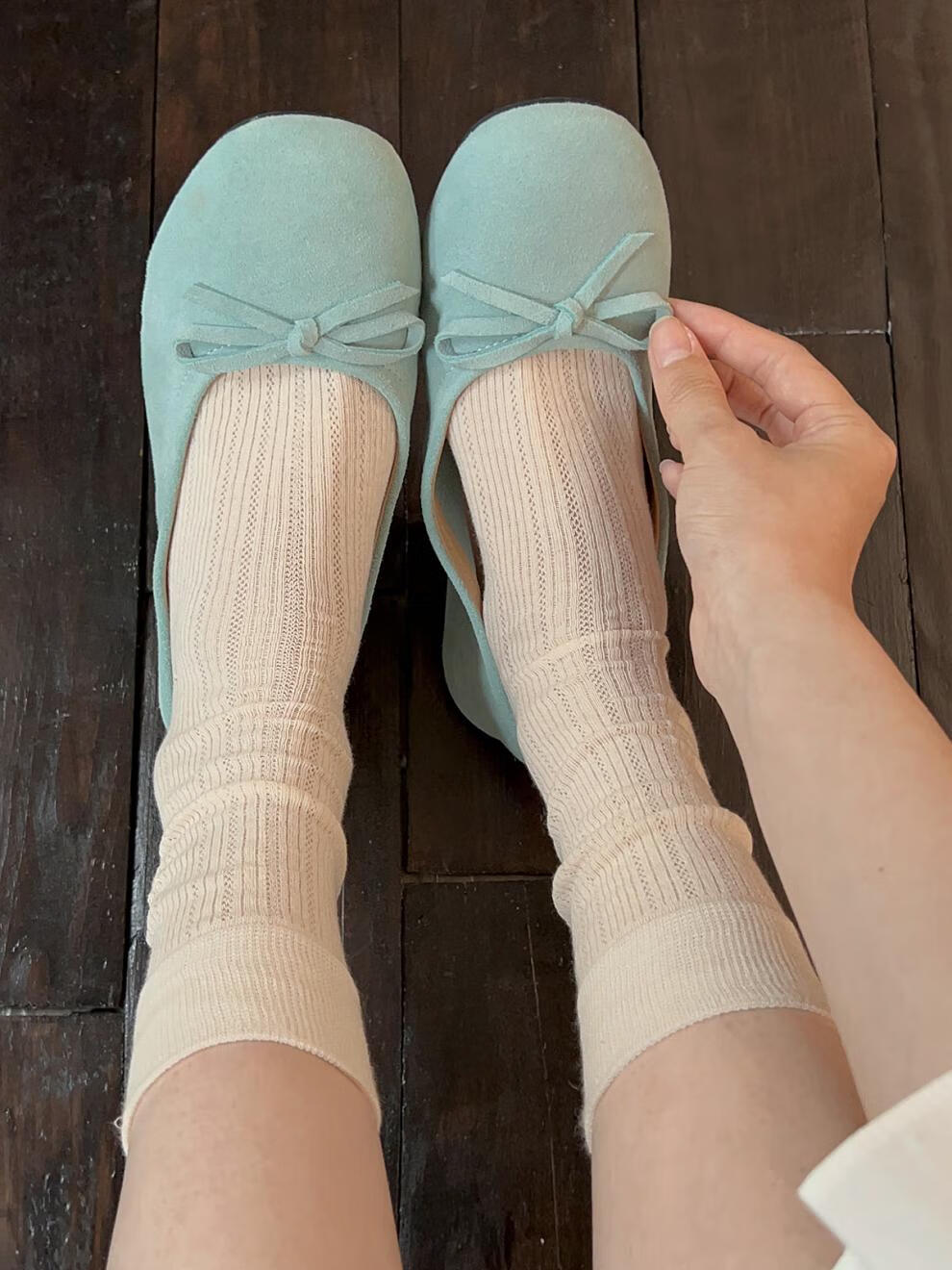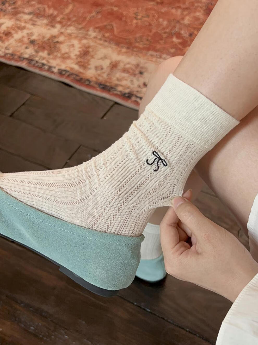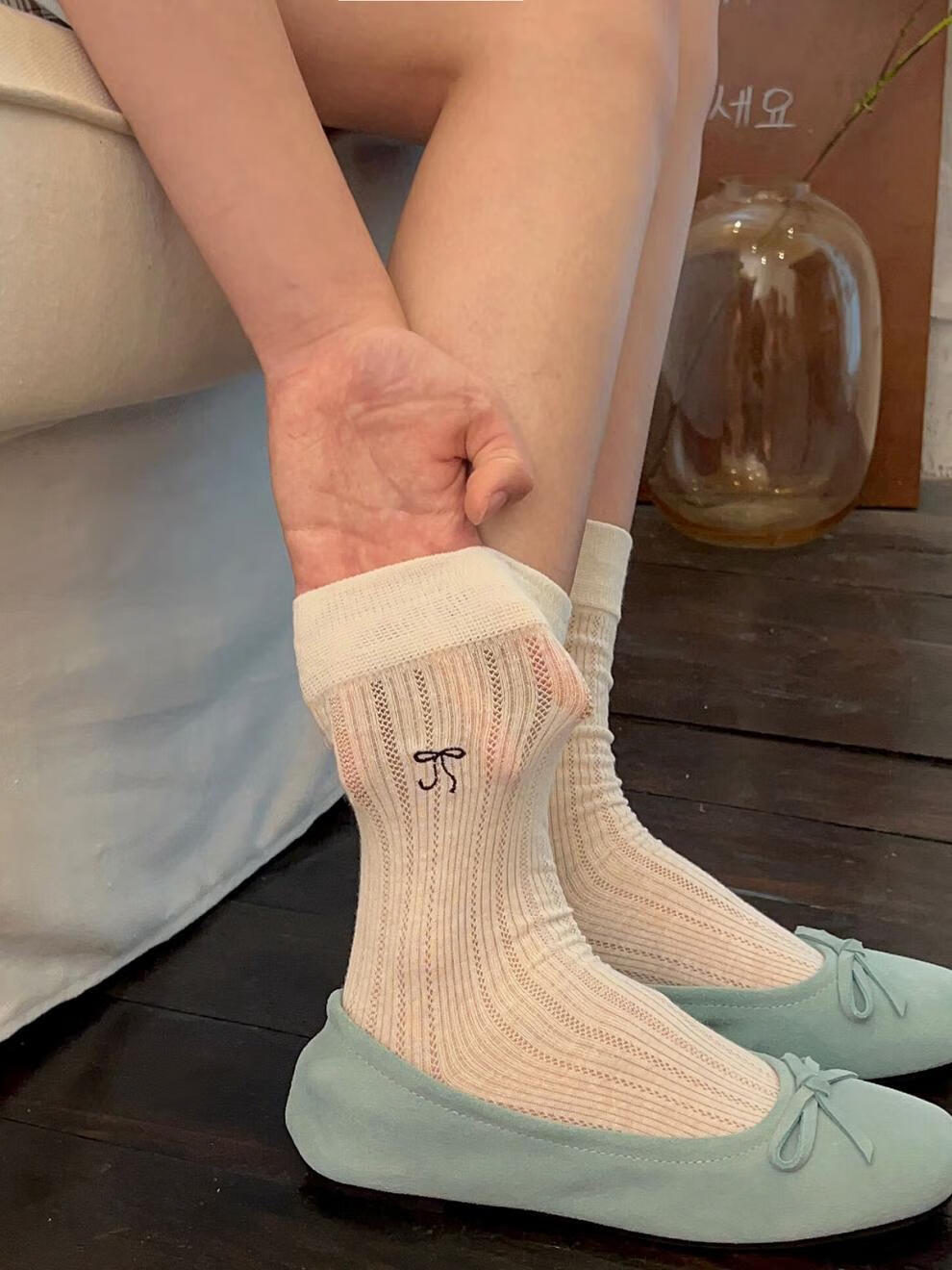 VCICTIOLIA atmosphere gray socks women's mid-calf socks summer thin hollow ballet style stockings gray + milk white one size