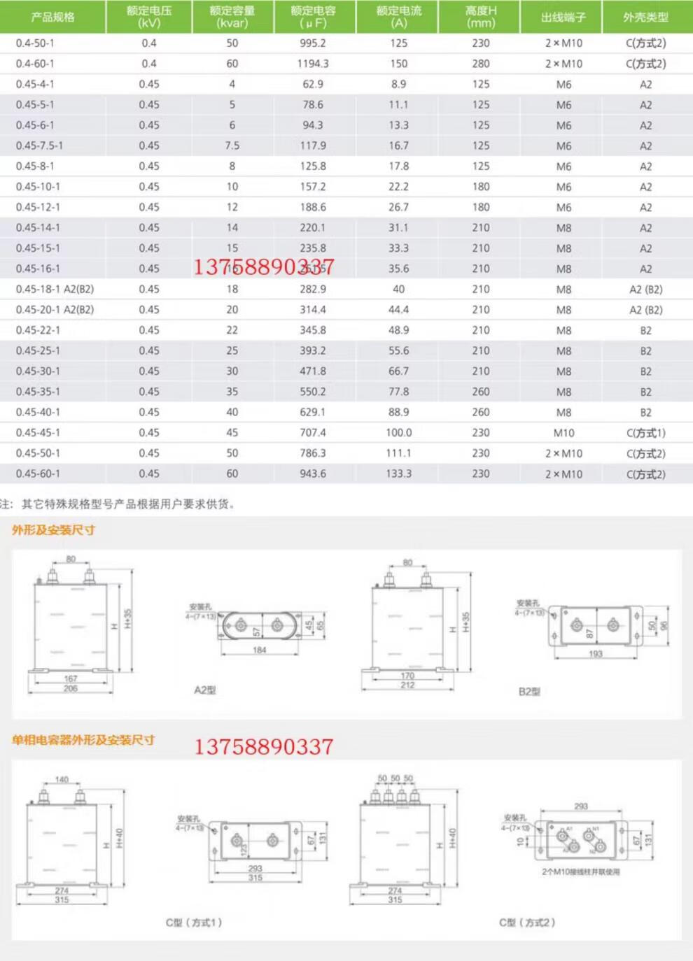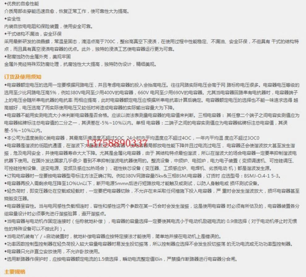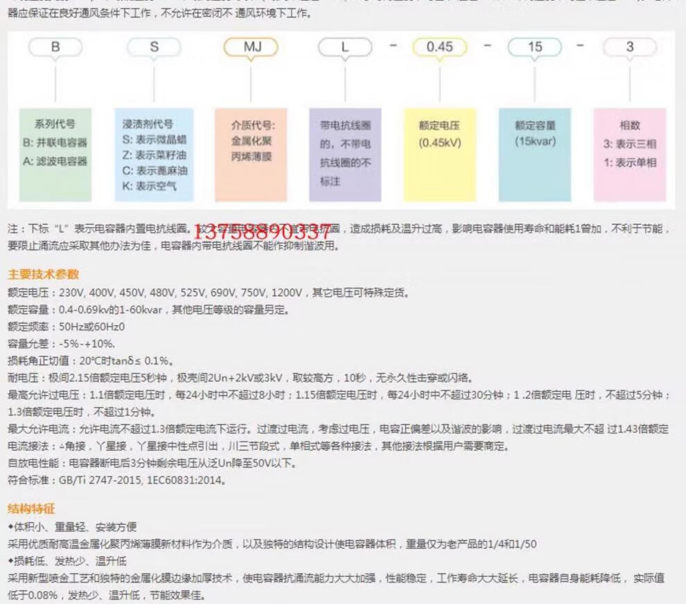 Refers to the moon self-healing low-voltage parallel power compensation capacitor BSMJ0.4/0.45-20/25/30/40-3/1 0.4-60-3