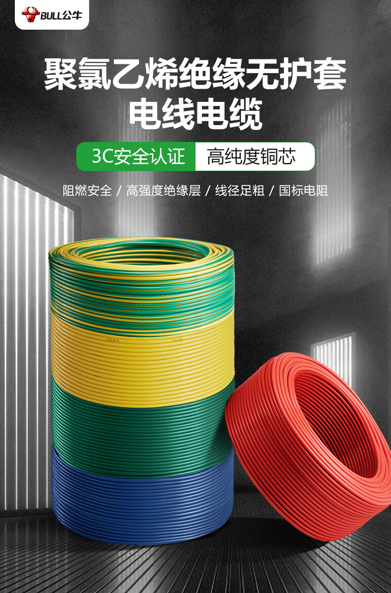 Bull BULL Bull BULL wire copper wire 1.5 2.5 4 6 square copper core insulation easy to peel wire 1.5mm neutral wire - yellow - BV multi-core wire, fast delivery