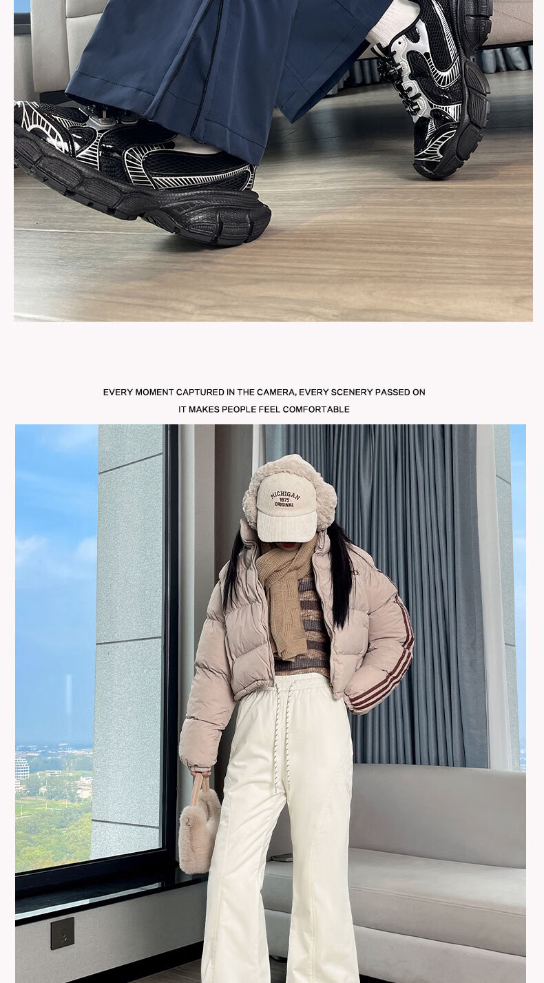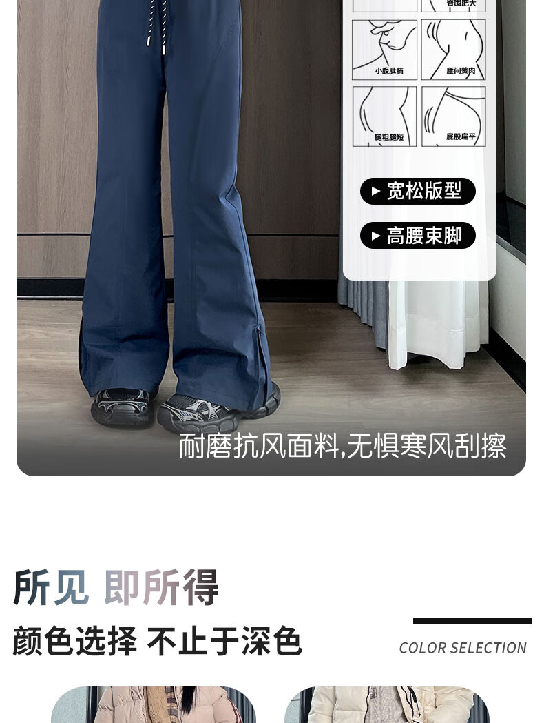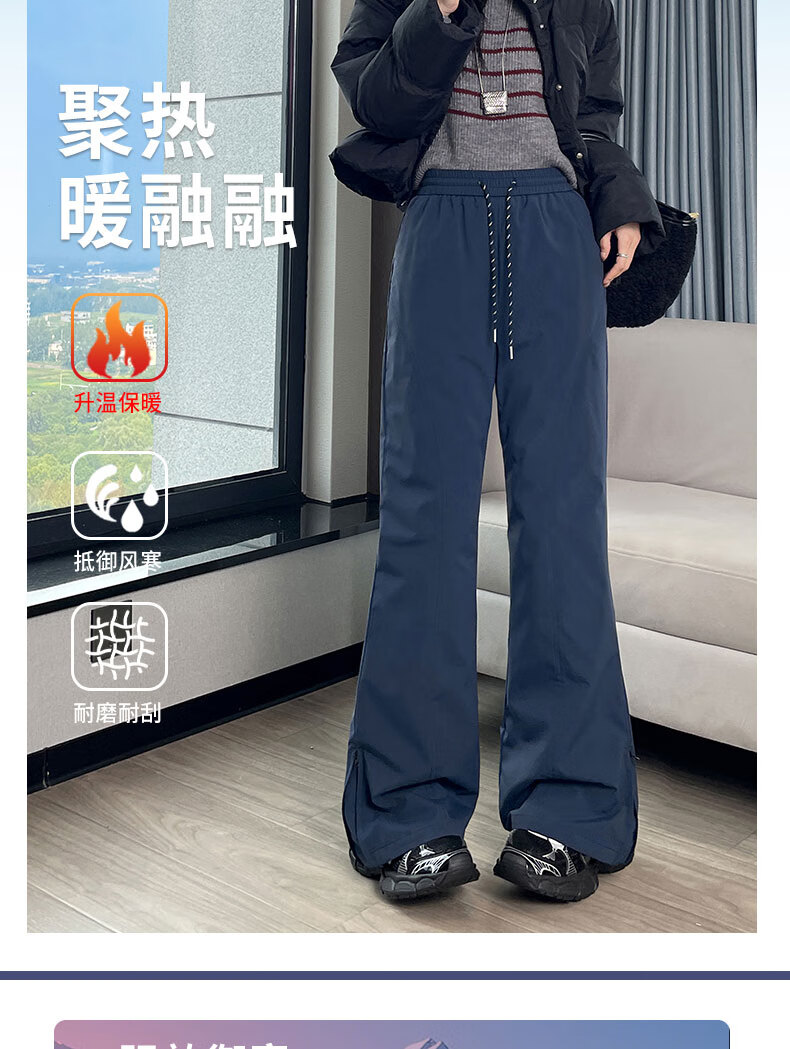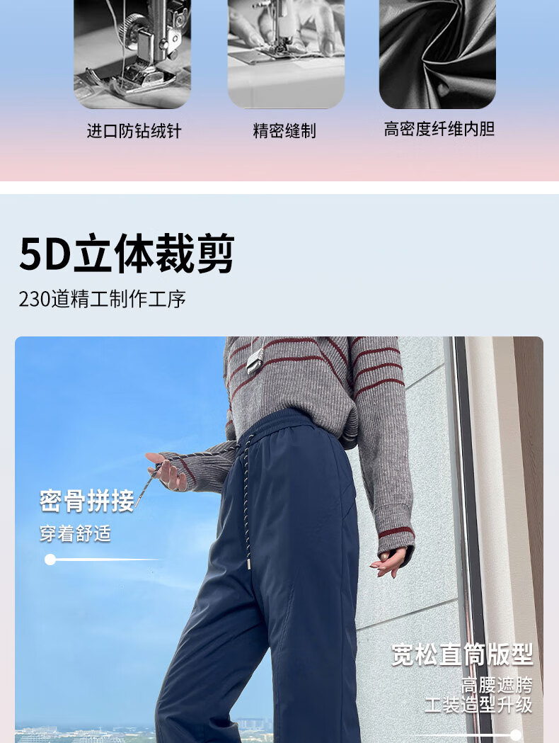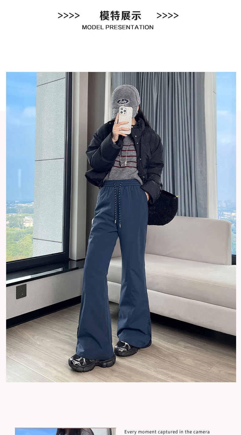 Luo Meng's micro-flared down pants for women's outer wear in winter new high-waist slim 90 white duck down thickened cold-proof warm cotton pants navy blue M