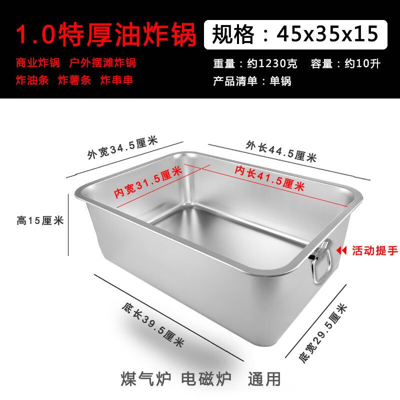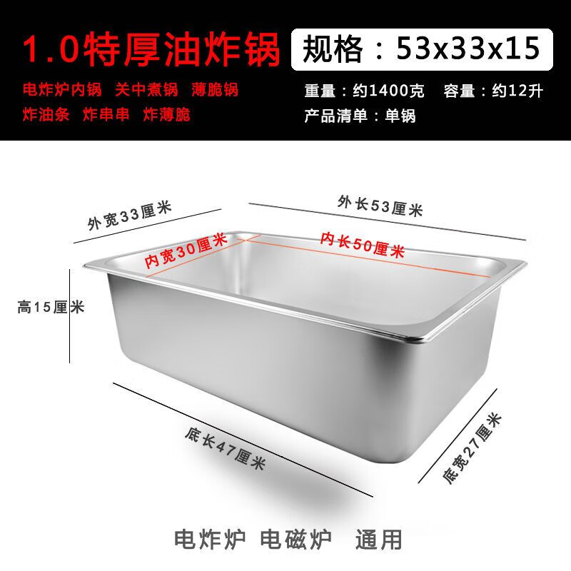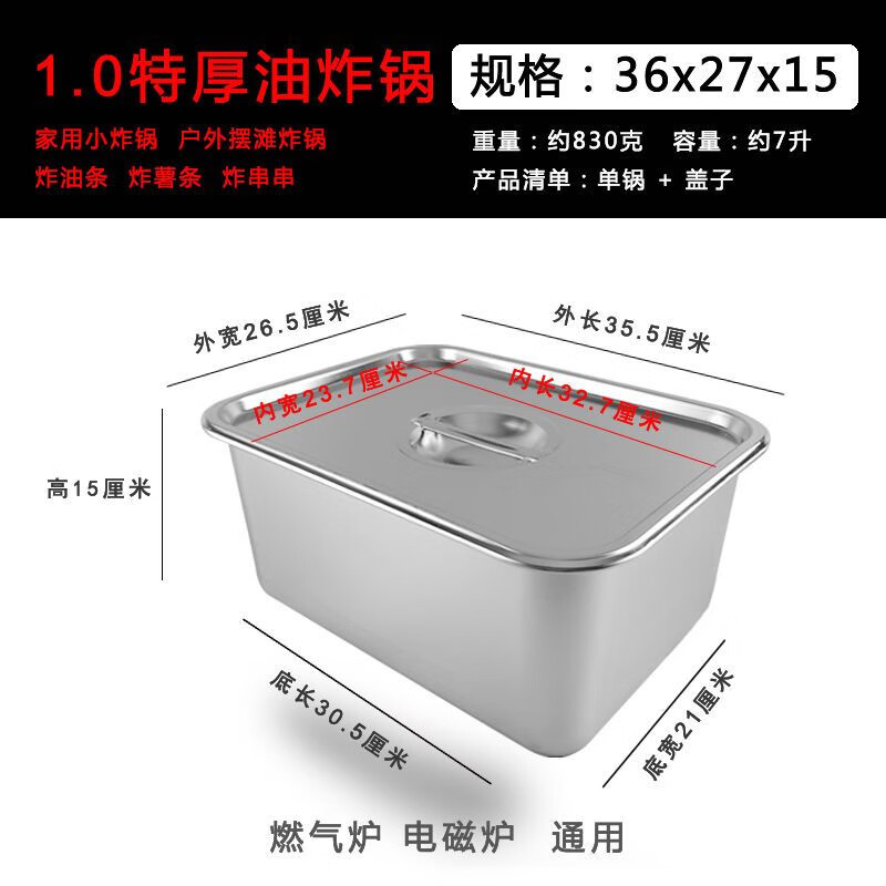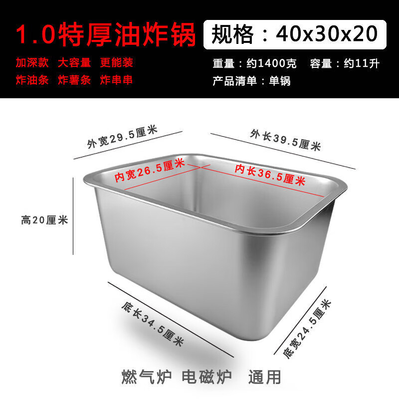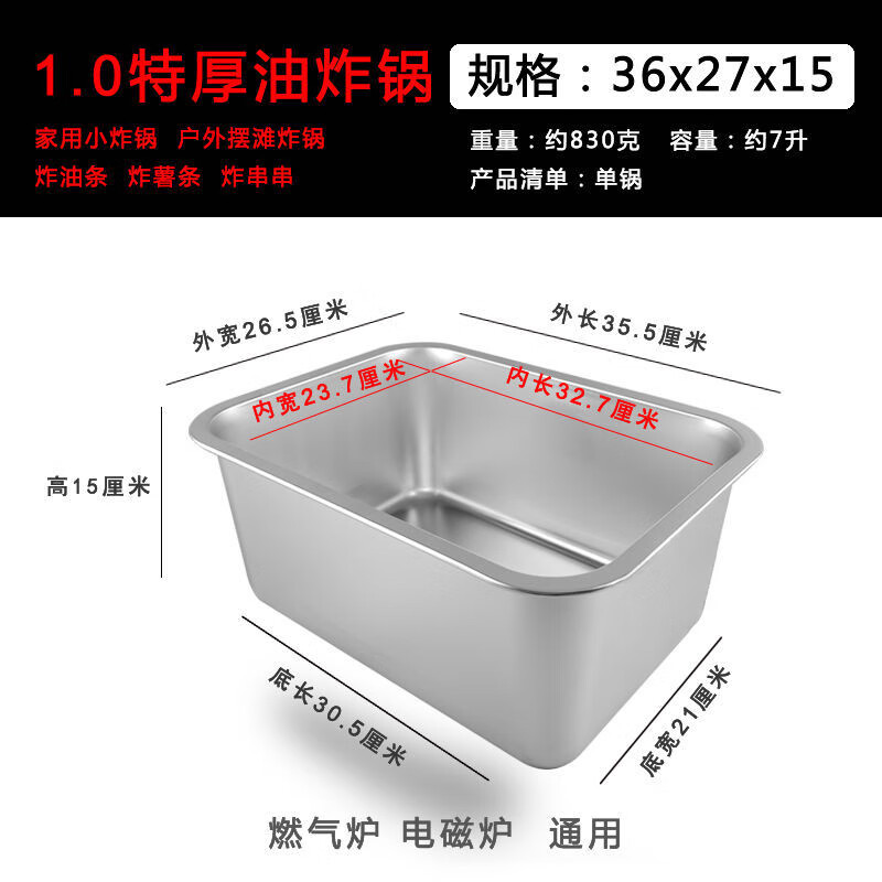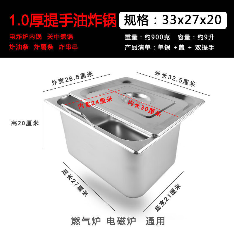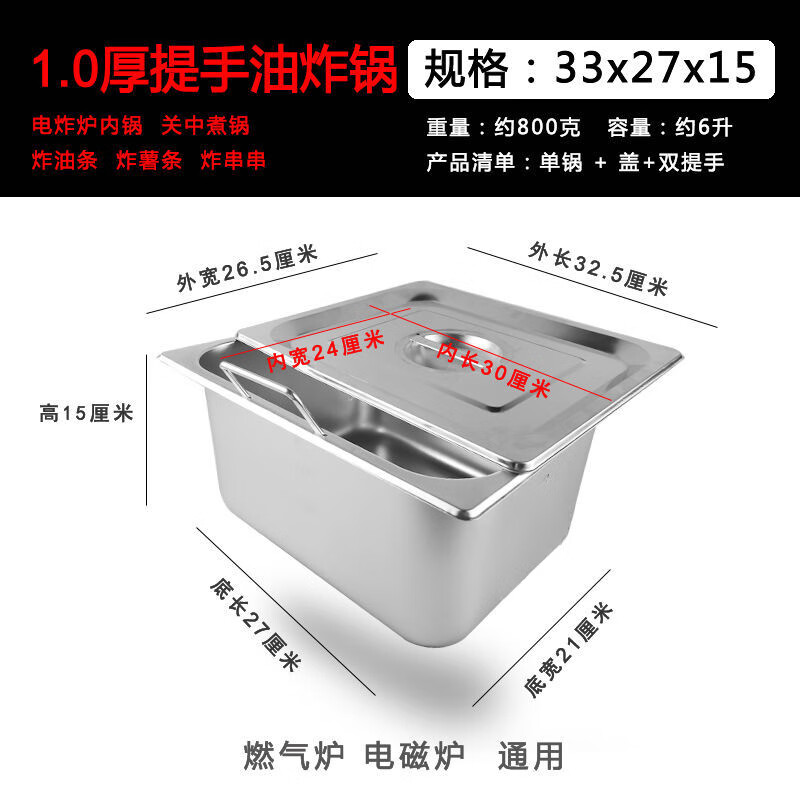 Kamanpai thickened stainless steel commercial fryer deepens the inner tank of the fryer gas stall fried skewers crispy fryer with handle 0.7 thick long 33 wide 27 high 10 without cover 0 inch