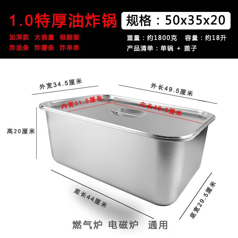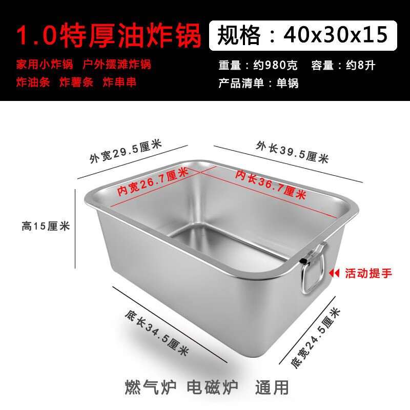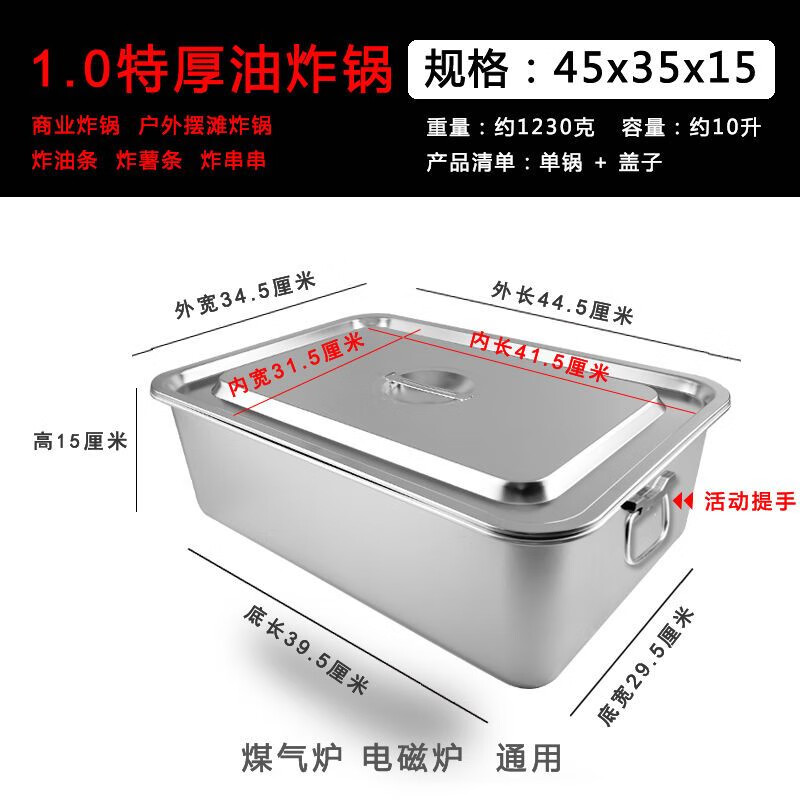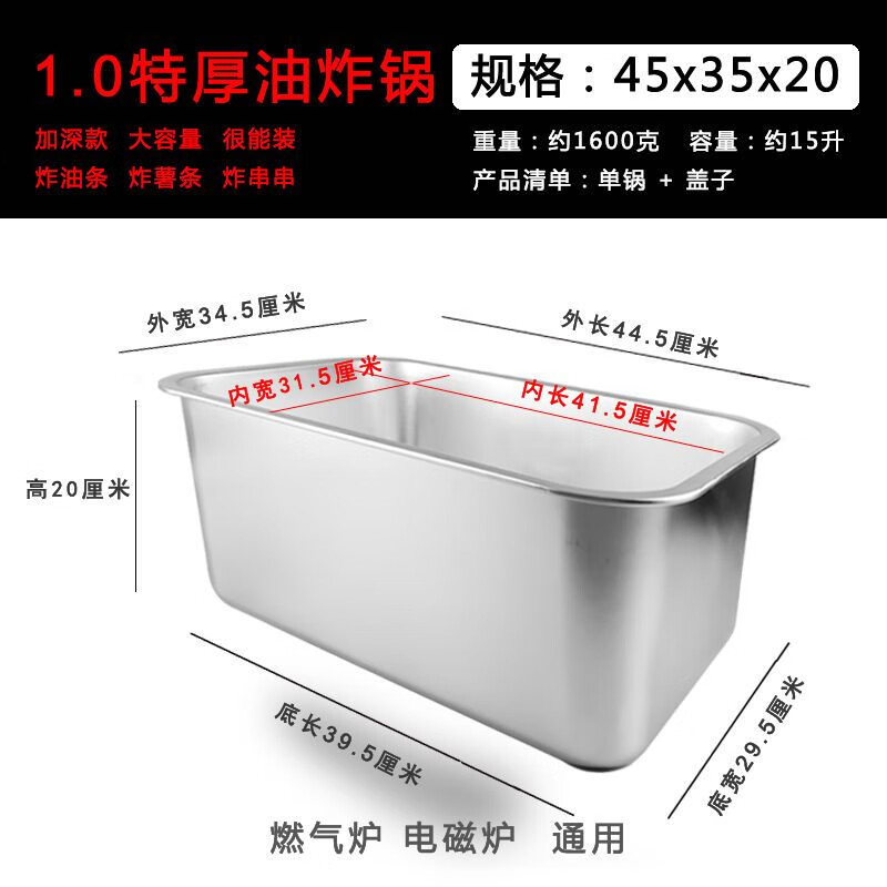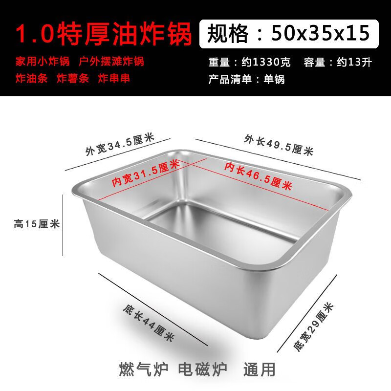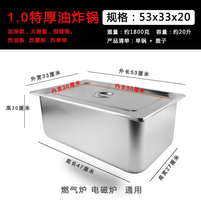Kamanpai thickened stainless steel commercial fryer deepens the inner tank of the fryer gas stall fried skewers crispy fryer with handle 0.7 thick long 33 wide 27 high 10 without cover 0 inch
