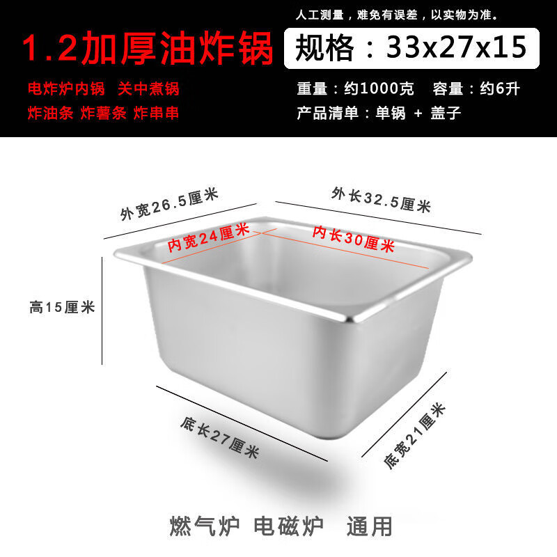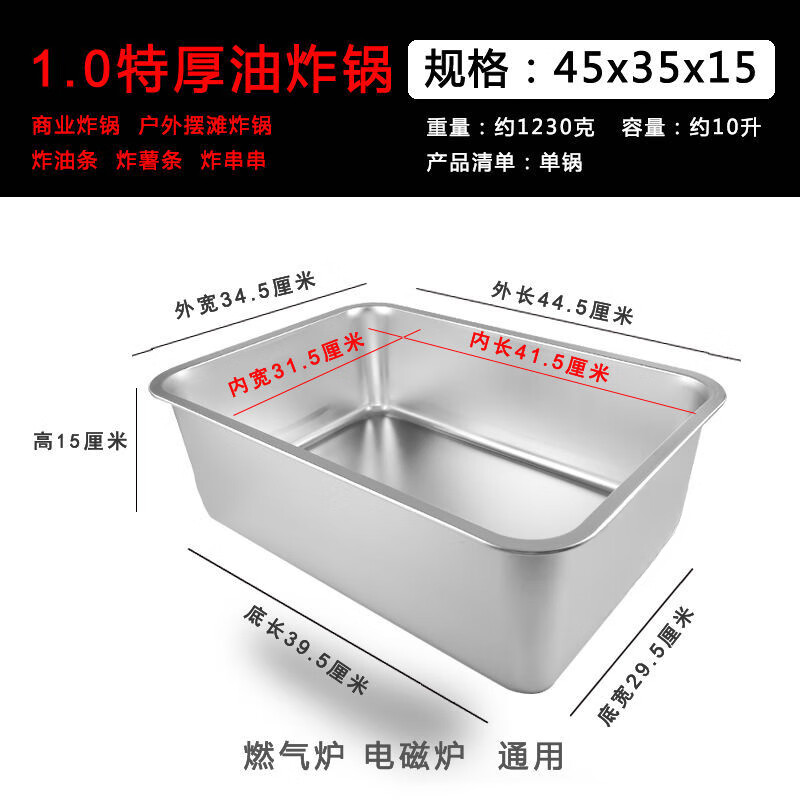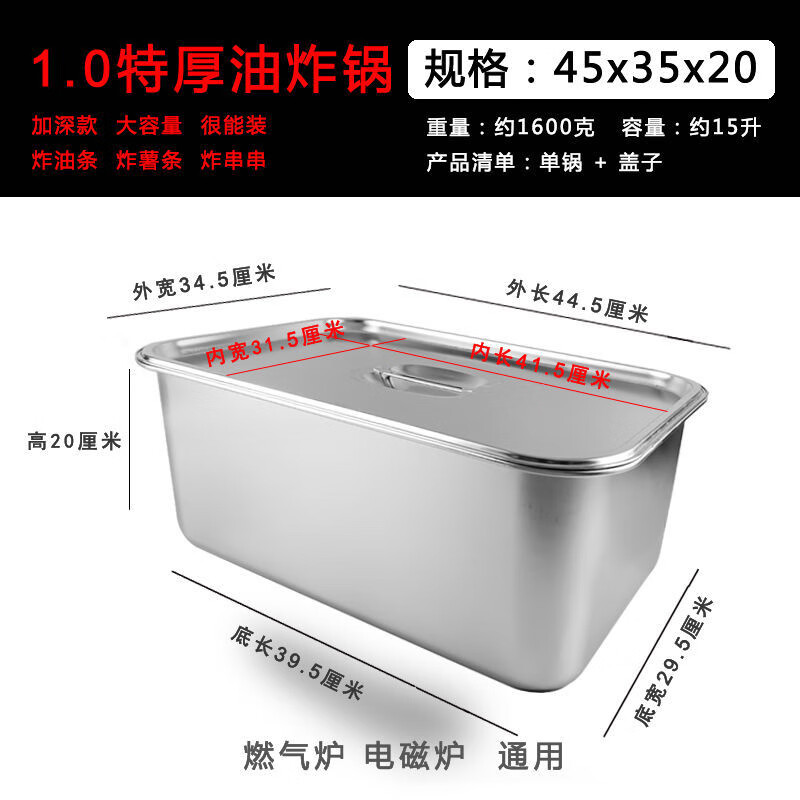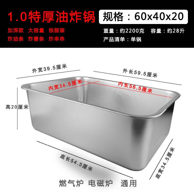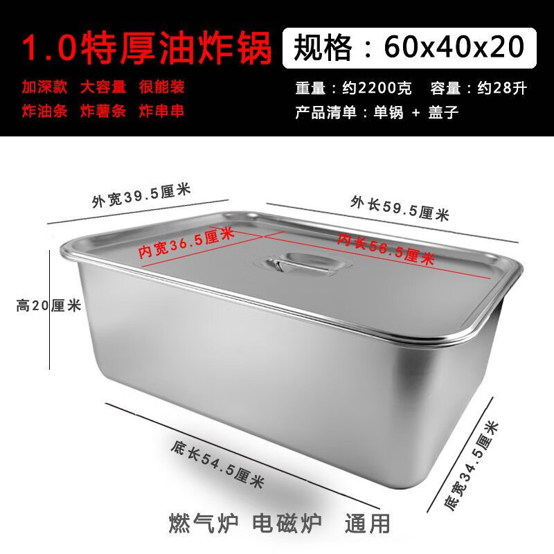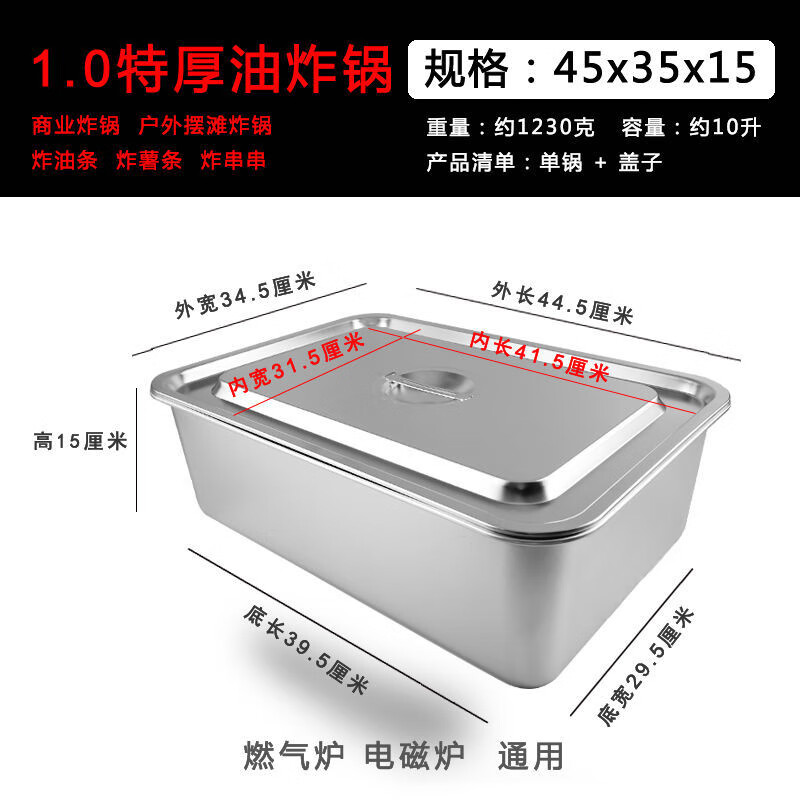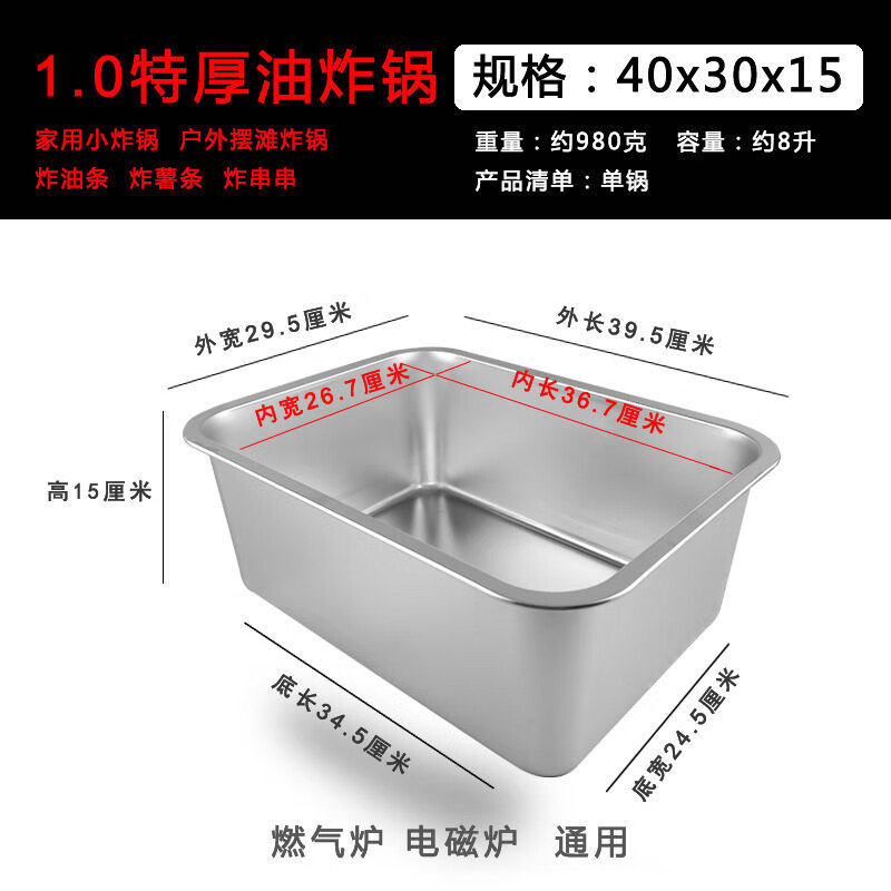 Kamanpai thickened stainless steel commercial fryer deepens the inner tank of the fryer gas stall fried skewers crispy fryer with handle 0.7 thick long 33 wide 27 high 10 without cover 0 inch