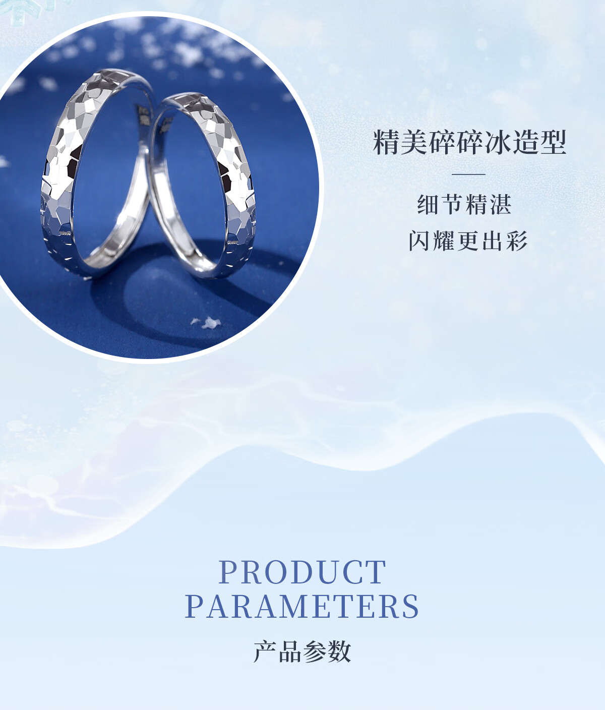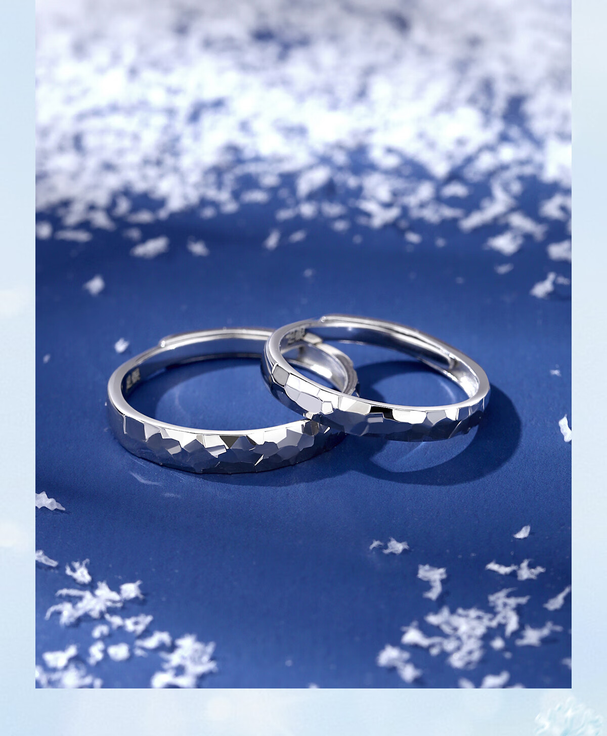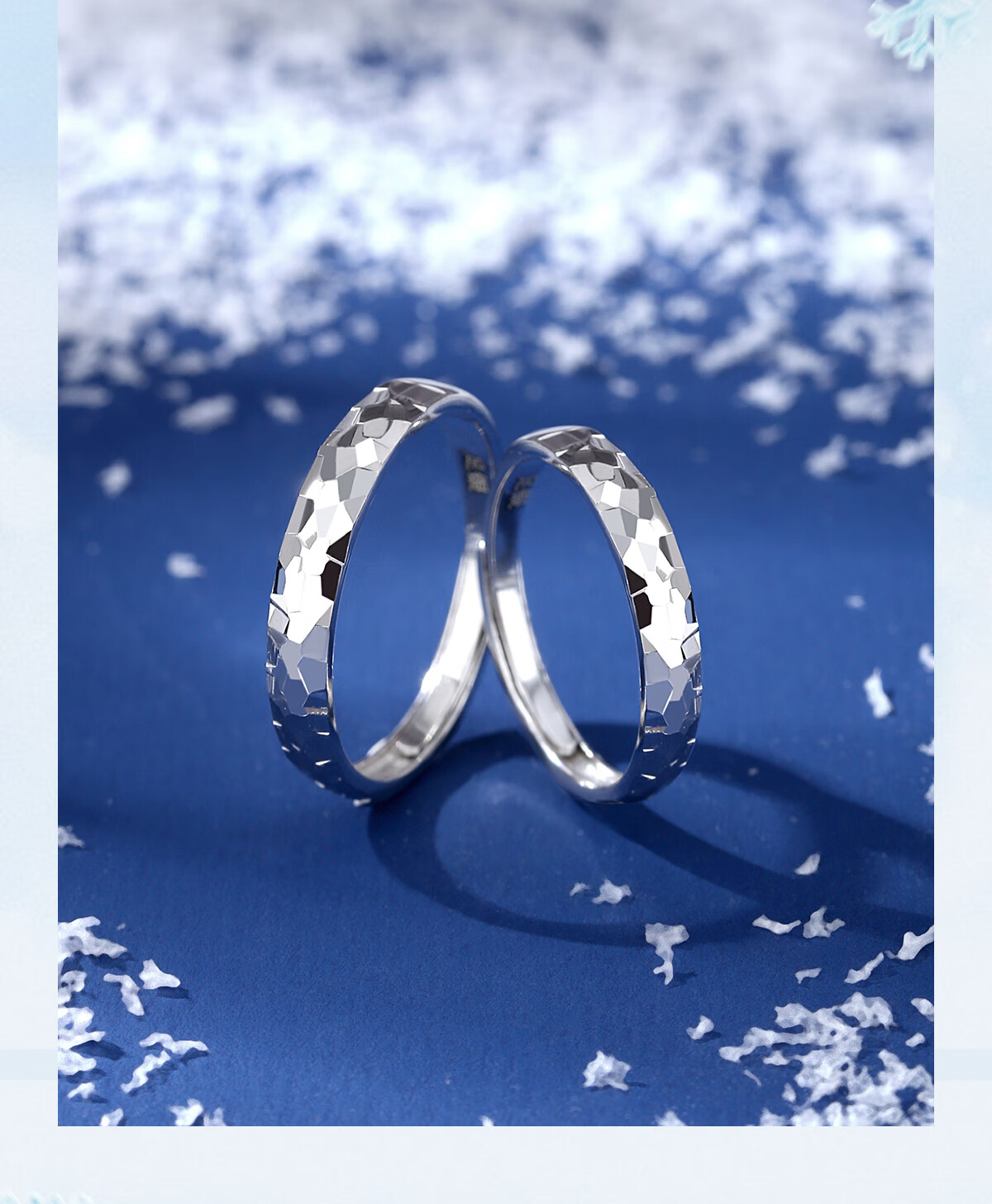 CHINA GOLD pure silver broken ice couple rings men and women rings a pair of light luxury niche birthday Christmas gifts for girlfriend broken ice couple rings selection gift box