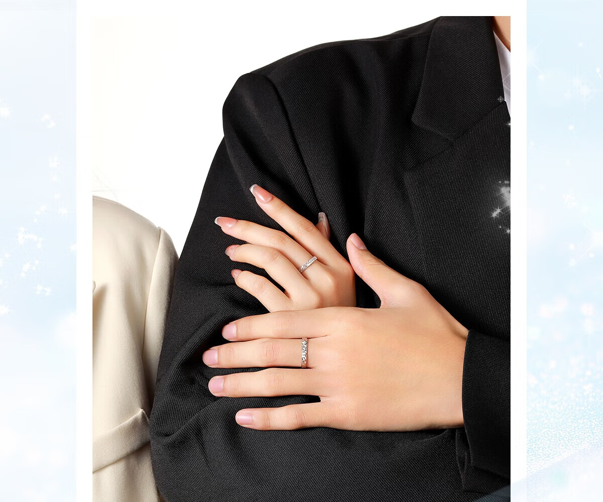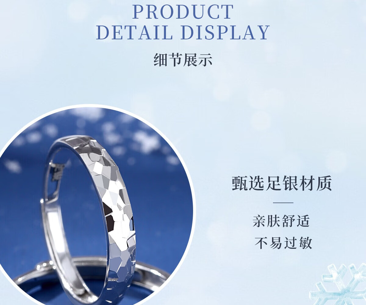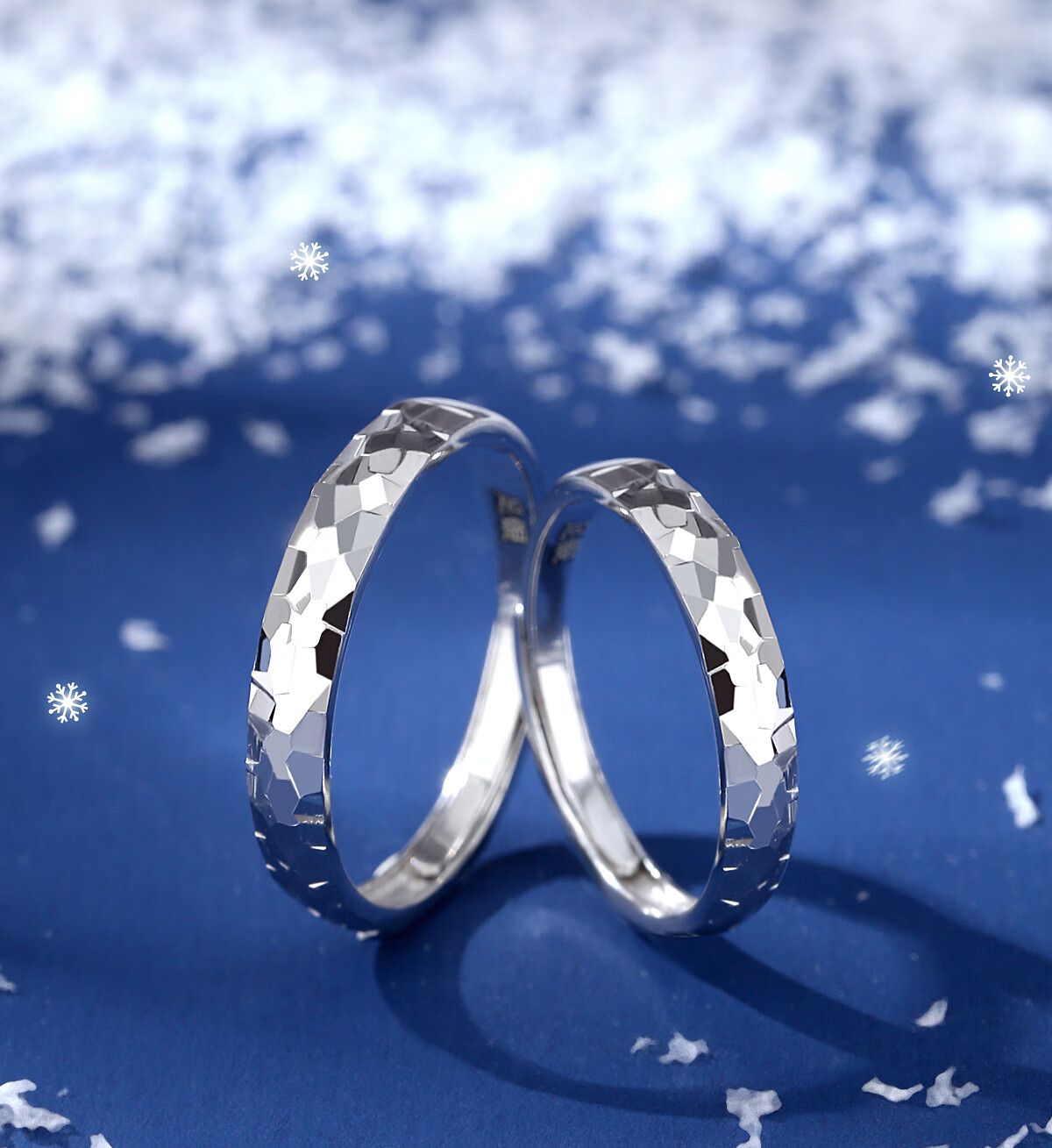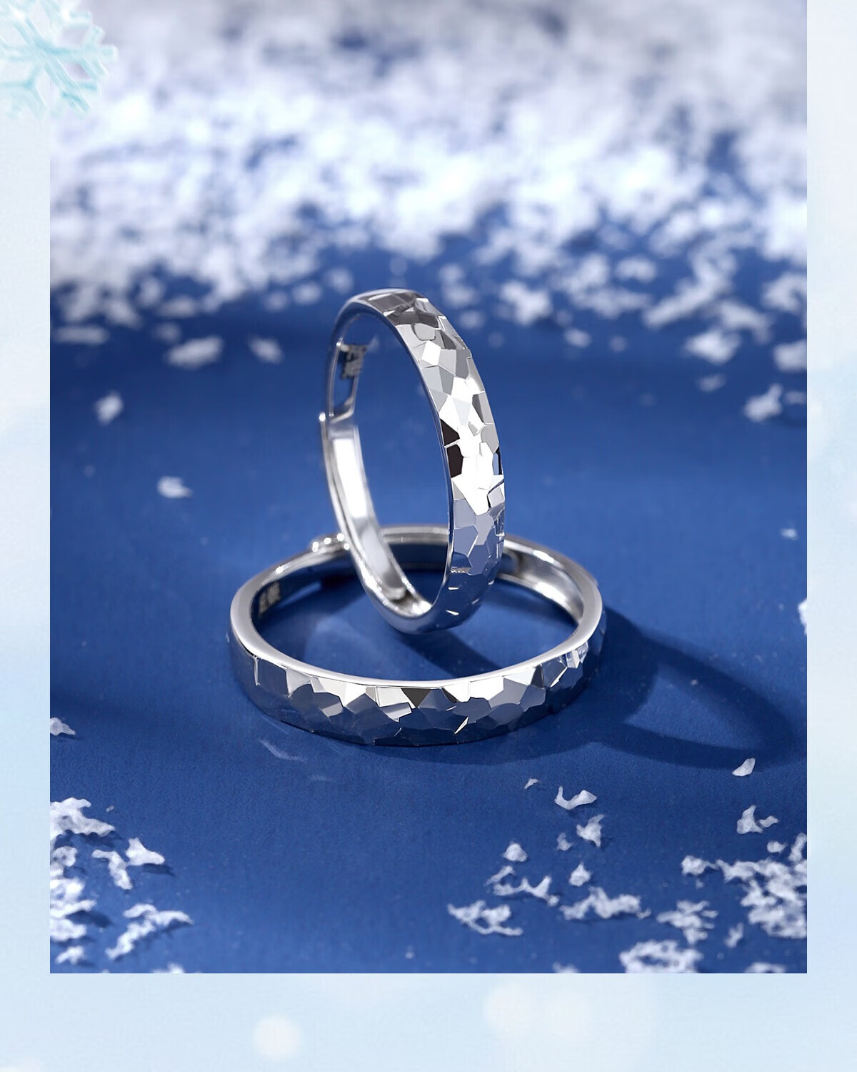 CHINA GOLD pure silver broken ice couple rings men and women rings a pair of light luxury niche birthday Christmas gifts for girlfriend broken ice couple rings selection gift box