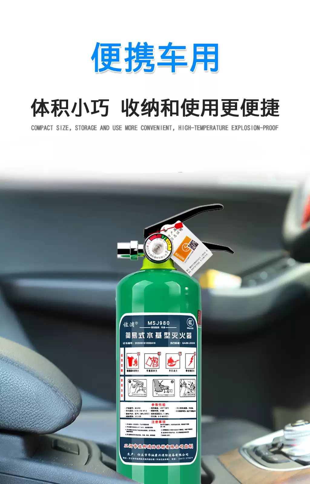 Vehicle-mounted fire extinguisher water-based environmentally friendly foam type portable 980ml low temperature antifreeze stainless steel fire extinguisher 980ml fire extinguishing level 13B