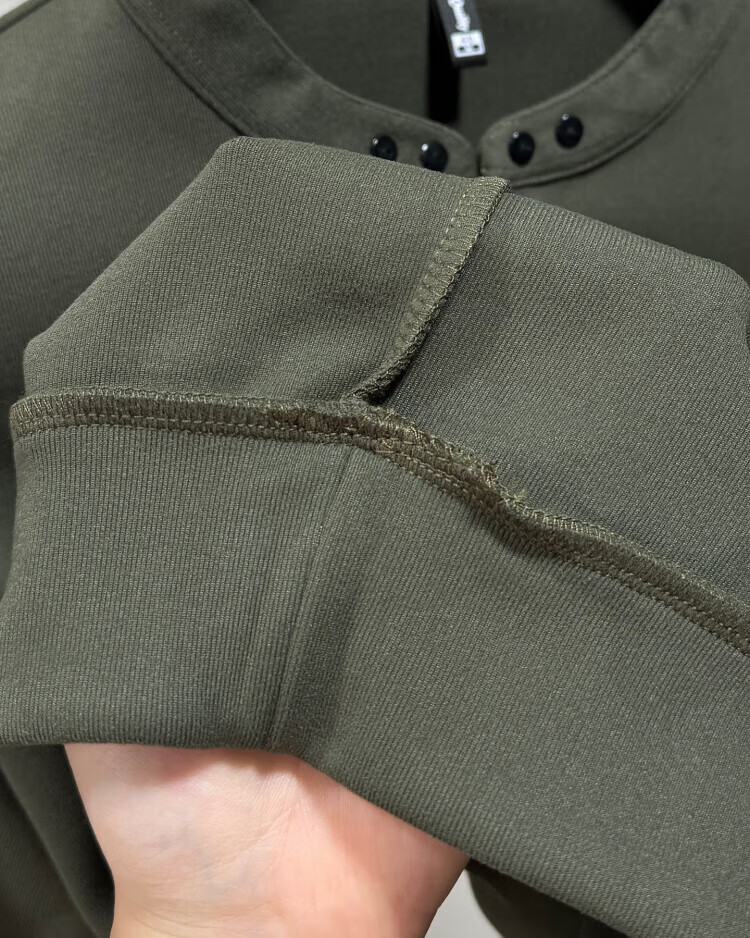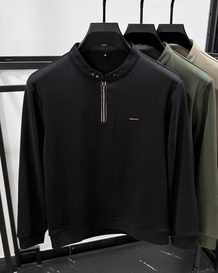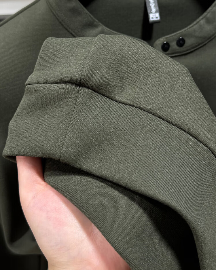 TOME BORNEK American Tommy genuine Henry collar sweatshirt men's sports half-zip T-shirt long-sleeved bottoming shirt stand-up collar top Army Green M