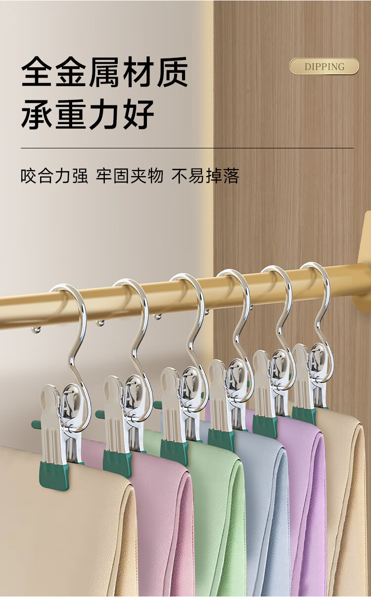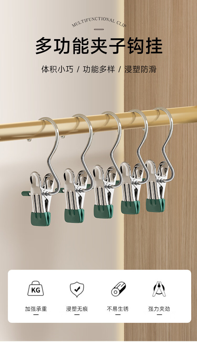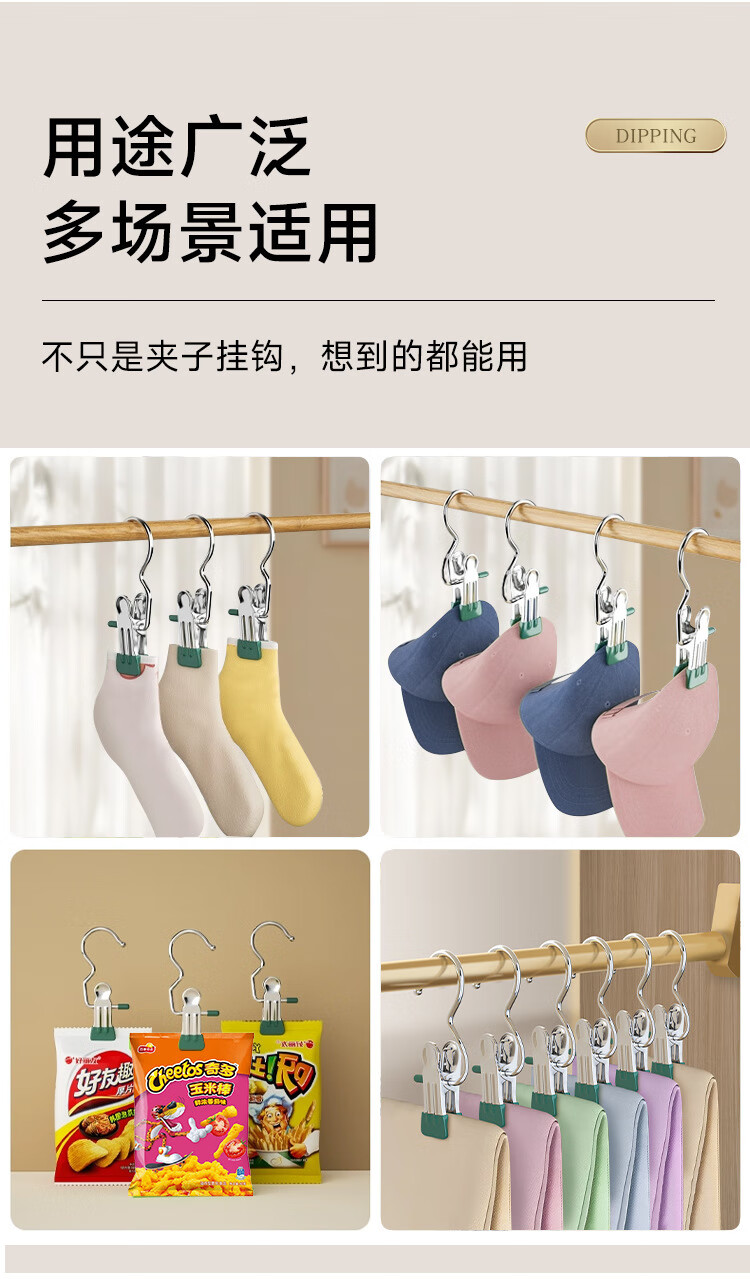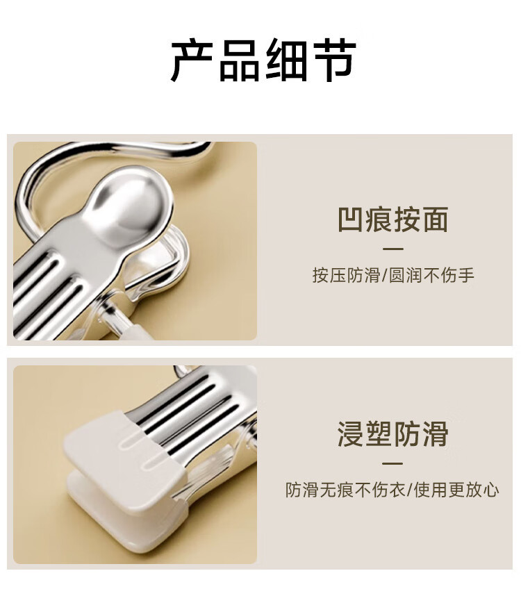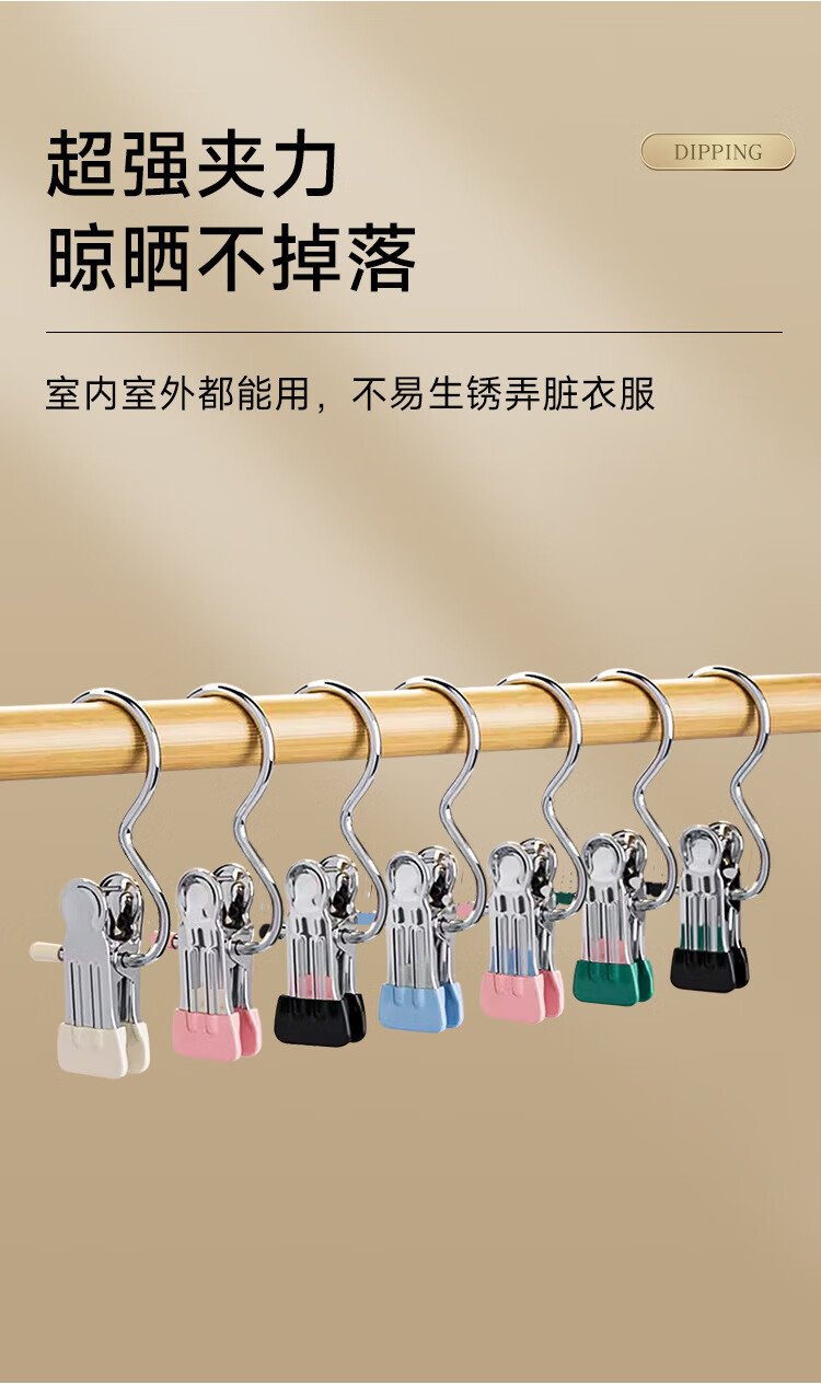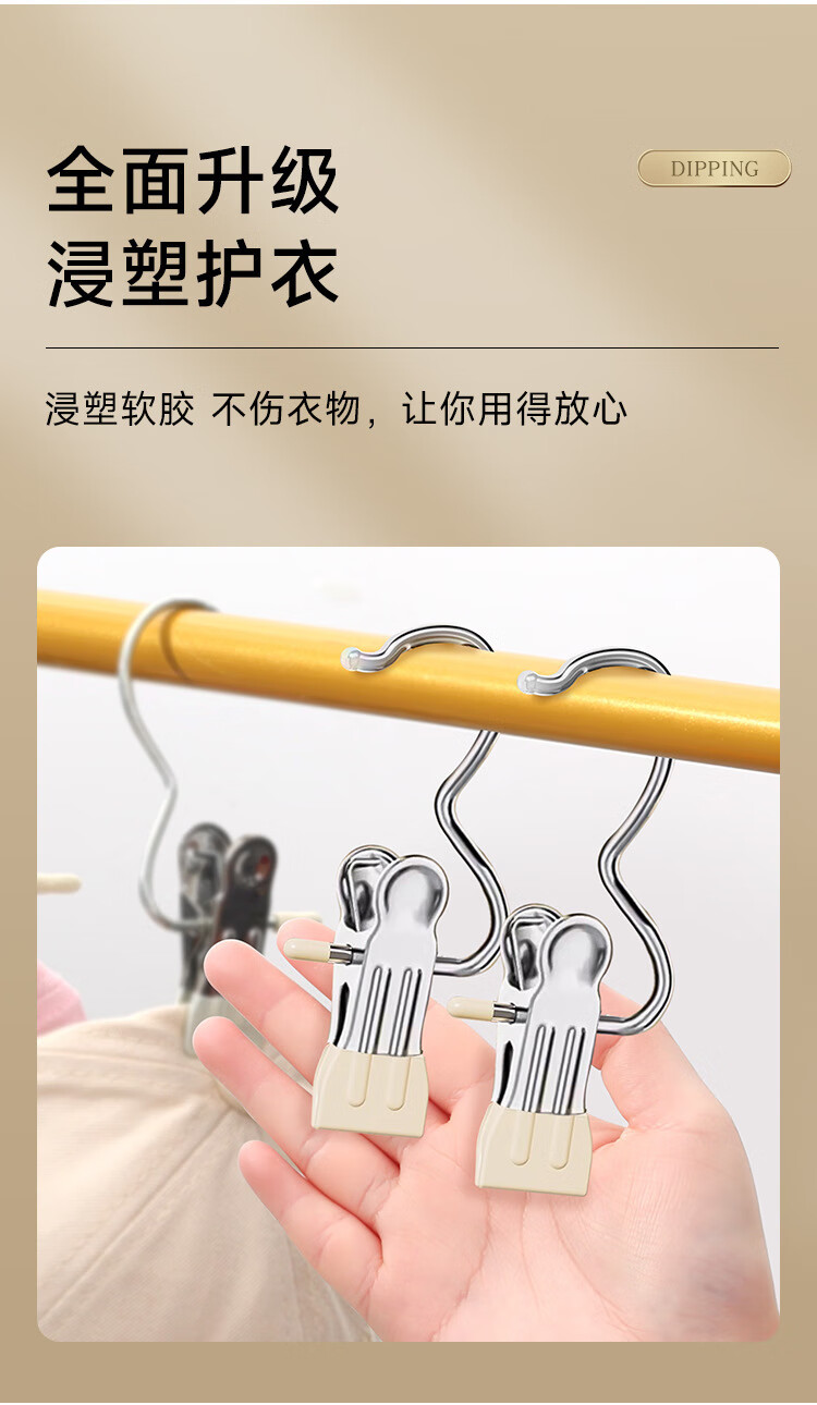 Pants clip, multifunctional hook clip, three-word clip, stainless steel sock clip, coat clip, home student dormitory, cream white, 10 pcs