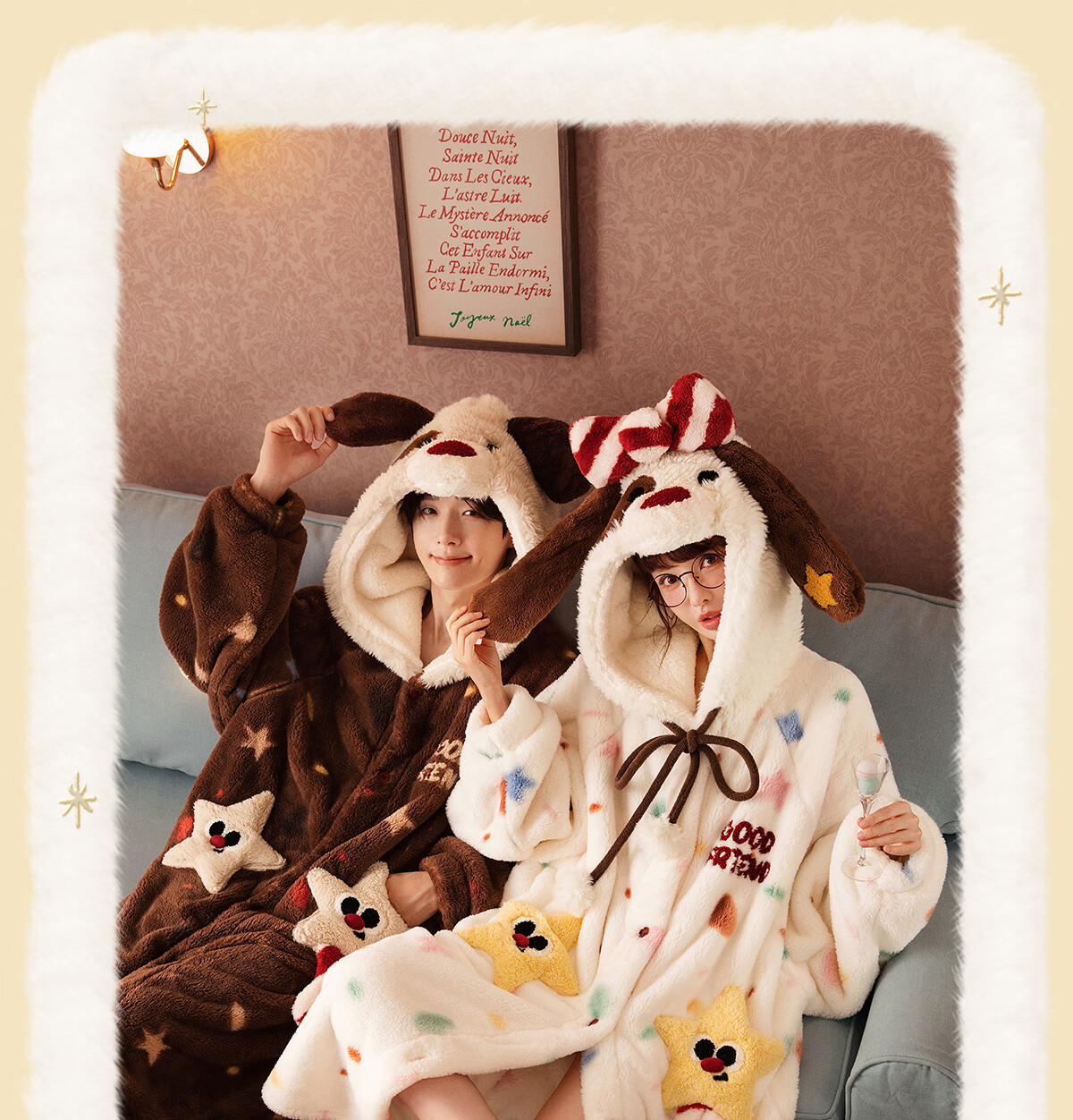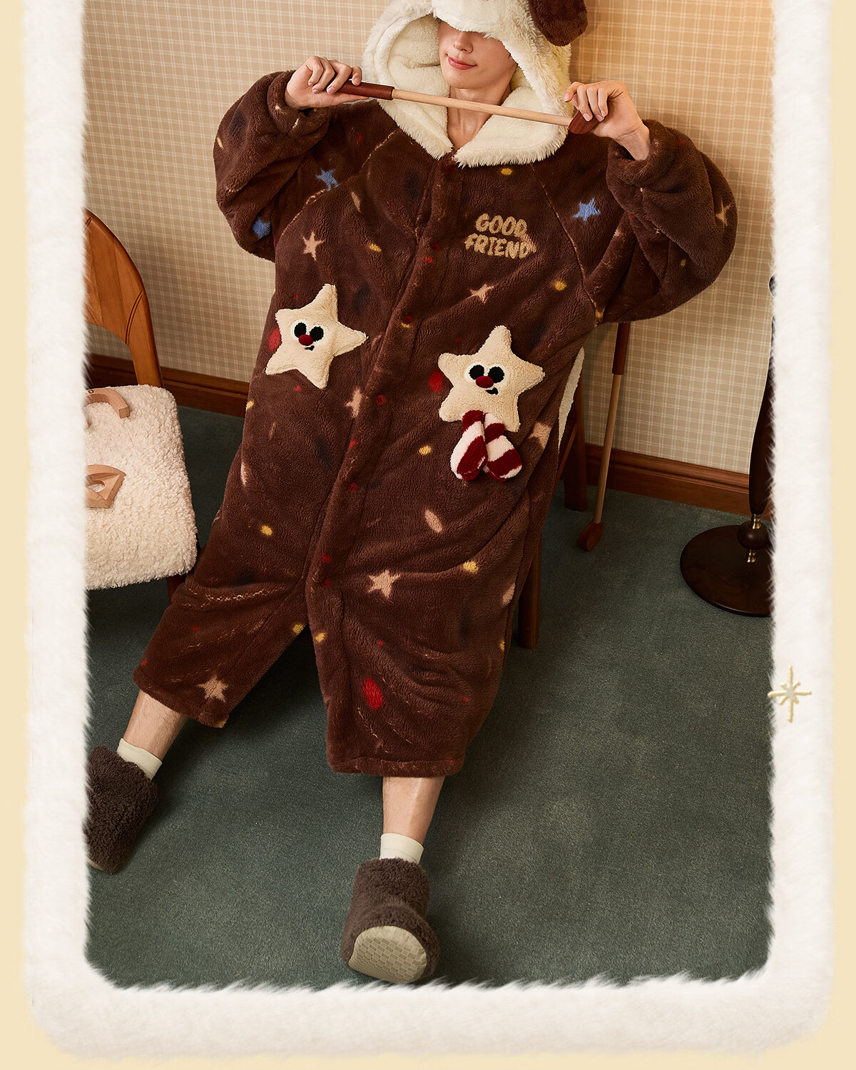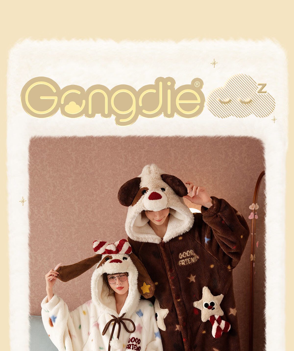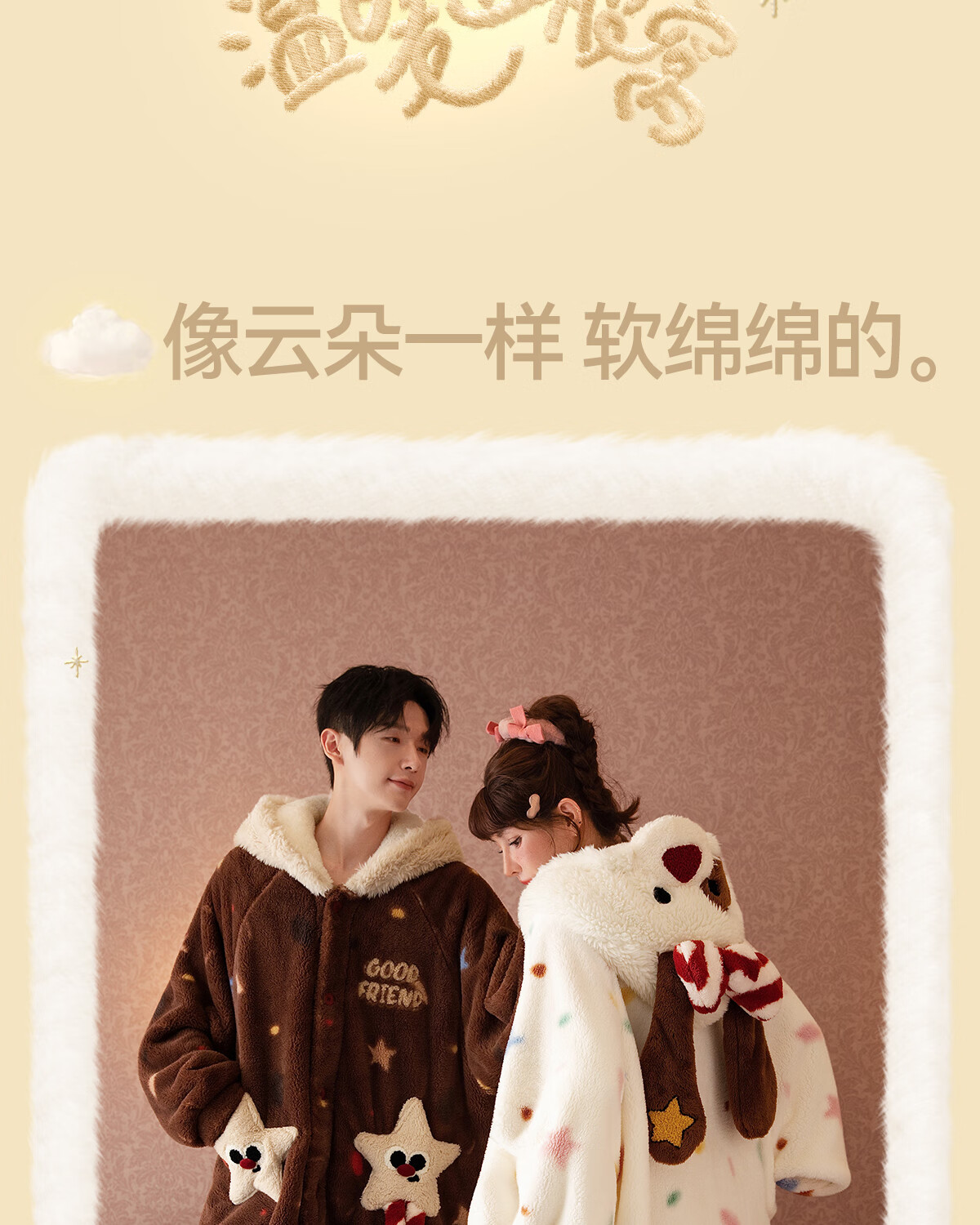 Gongdie Heat Storage Autumn and Winter Couple Pajamas Women's Thickened Coral Velvet Cartoon Puppy Home Clothes Pajamas for Men Cartoon Warm Velvet Pajamas for Men L (Recommended 140-170 Jin Jin equals 0.5 kg)