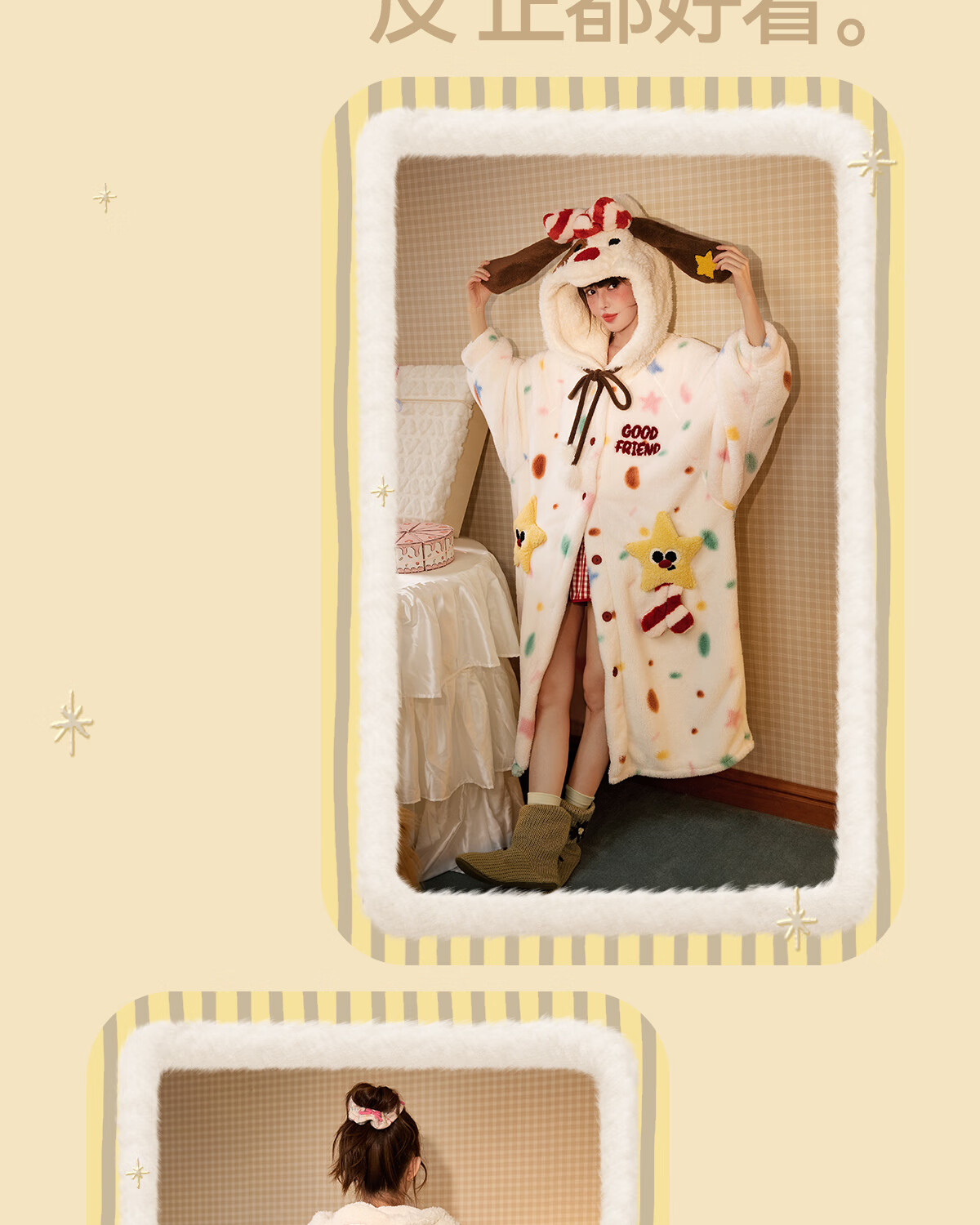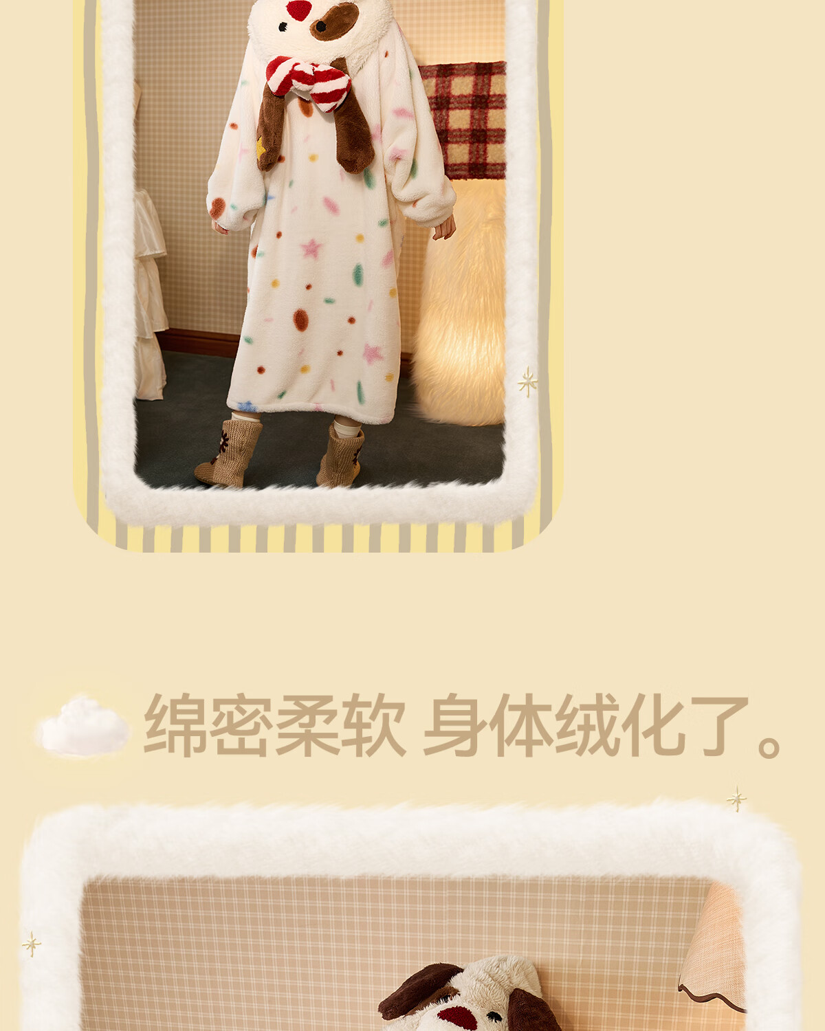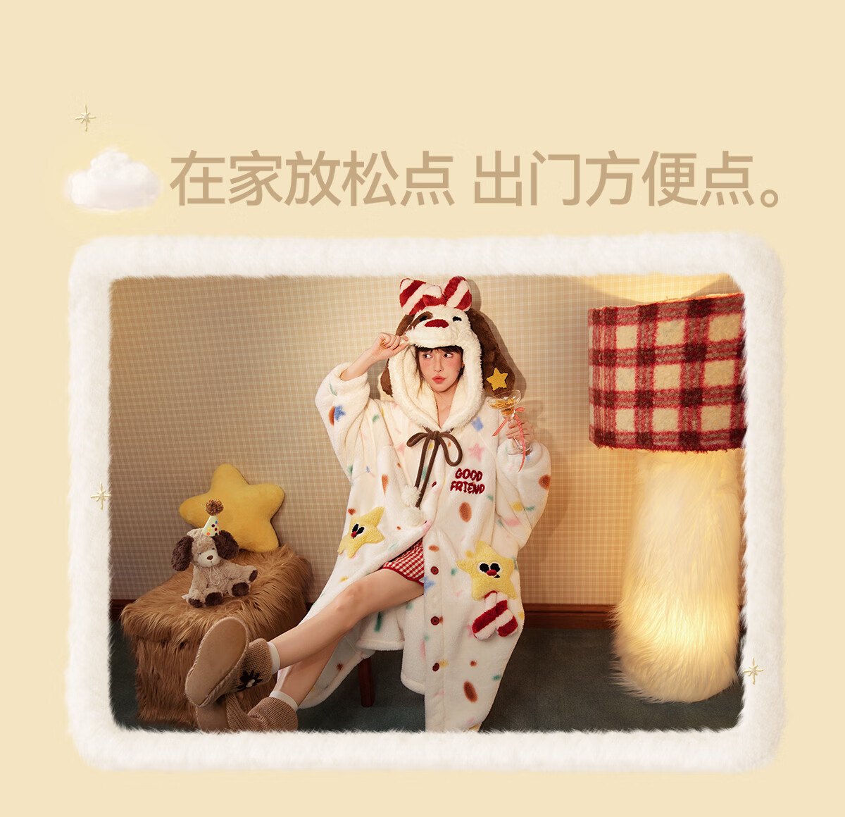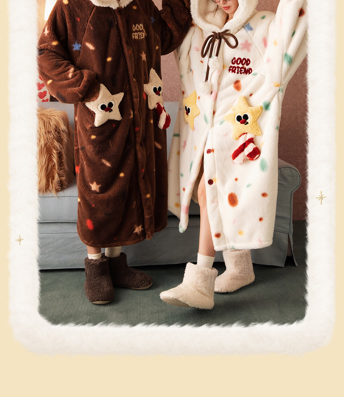 Gongdie Heat Storage Autumn and Winter Couple Pajamas Women's Thickened Coral Velvet Cartoon Puppy Home Clothes Pajamas for Men Cartoon Warm Velvet Pajamas for Men L (Recommended 140-170 Jin Jin equals 0.5 kg)