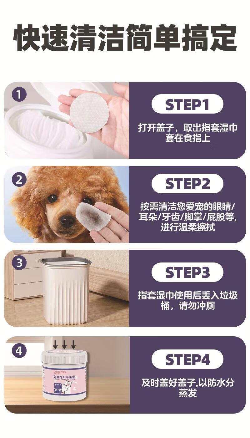 Large-capacity pet wipes, universal eye tool for cats and dogs, specially designed to clean eyes, feces and tear stains, with sufficient moisture - Ear Cleansing Finger Set - 50 tablets