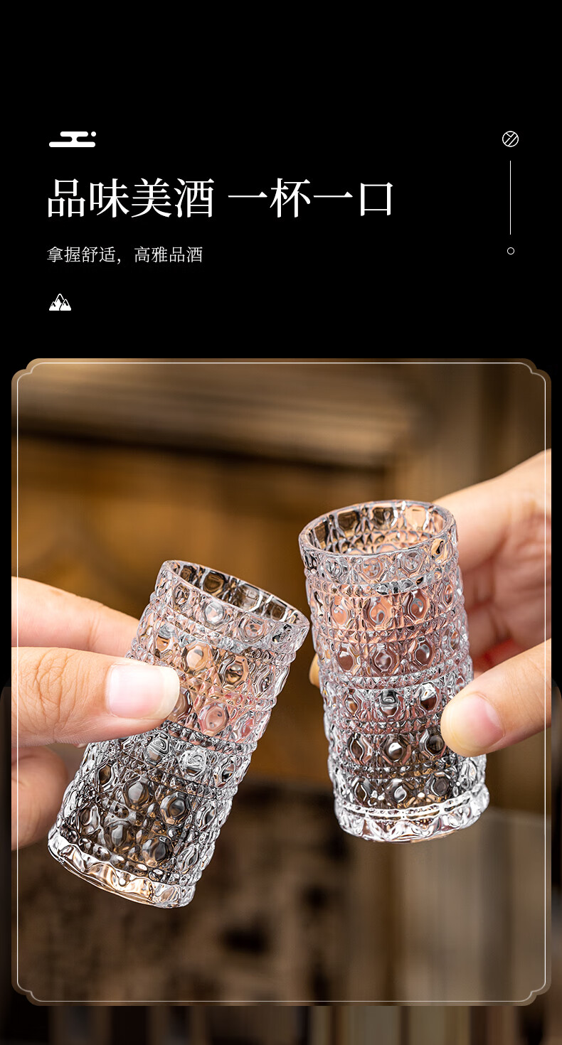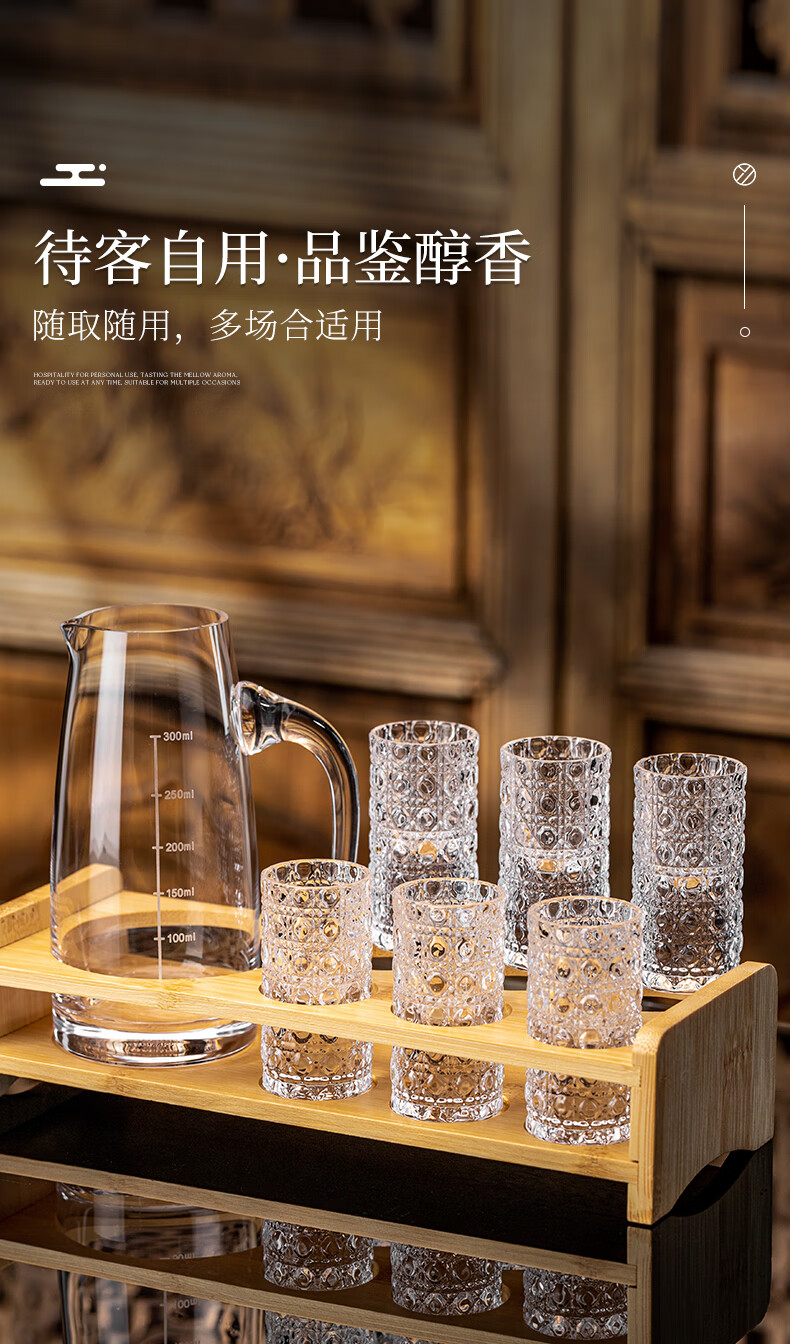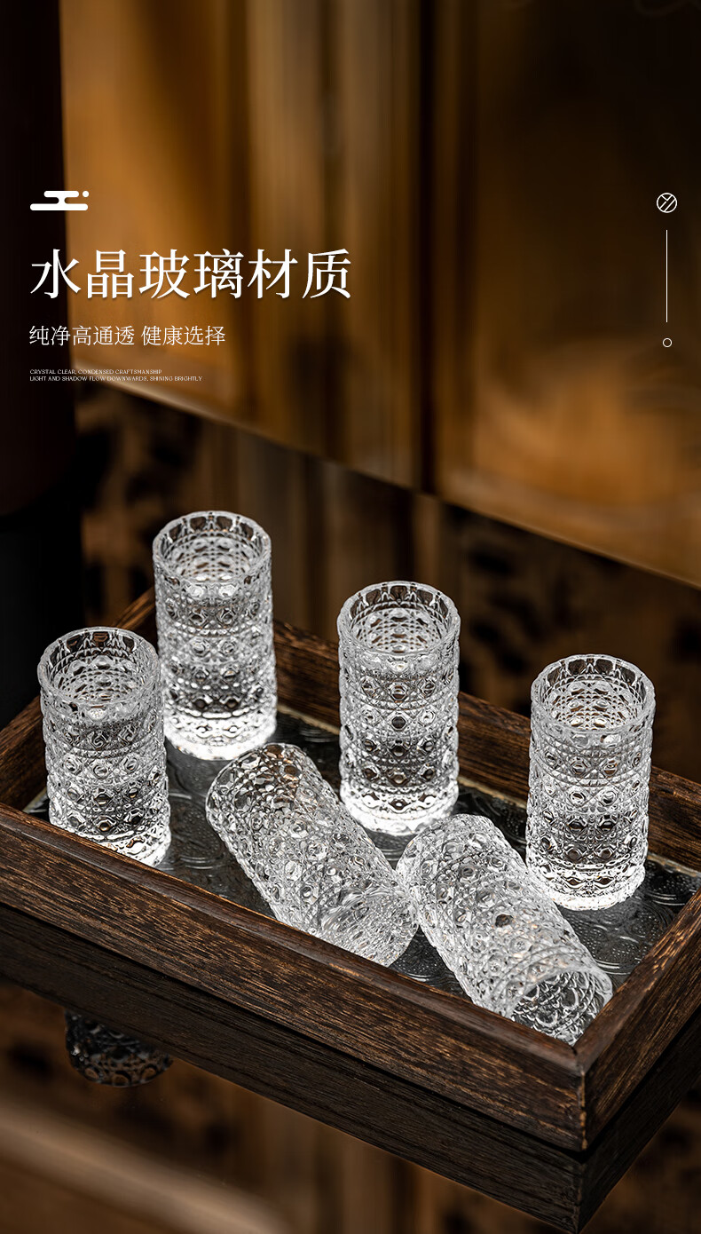 Zhenxiqi white wine glass set 6 small wine glasses, one cup, household bullet cup, shot cup, foreign wine glass, drinking cup, wine set, gem pattern small wine glass 20ml, 6 pieces, no tray